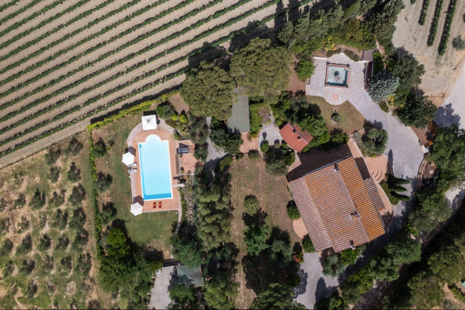 In a plot of land of about 4 hectares that completely surrounds it and in which there are about 300 olive trees that provide the famous Tuscan oil, of these the nearest 5,000 square meters are fenced off and kept as a garden with numerous succulent plants, flowering bushes and bushes of medicinal plants.