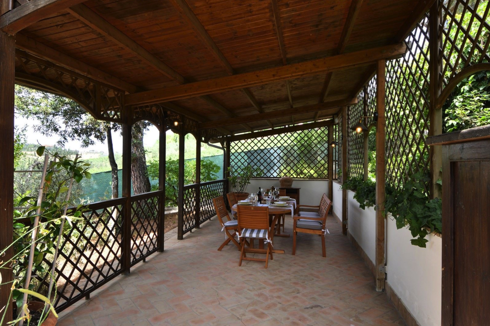 Along a more private wall of the house is a covered patio.