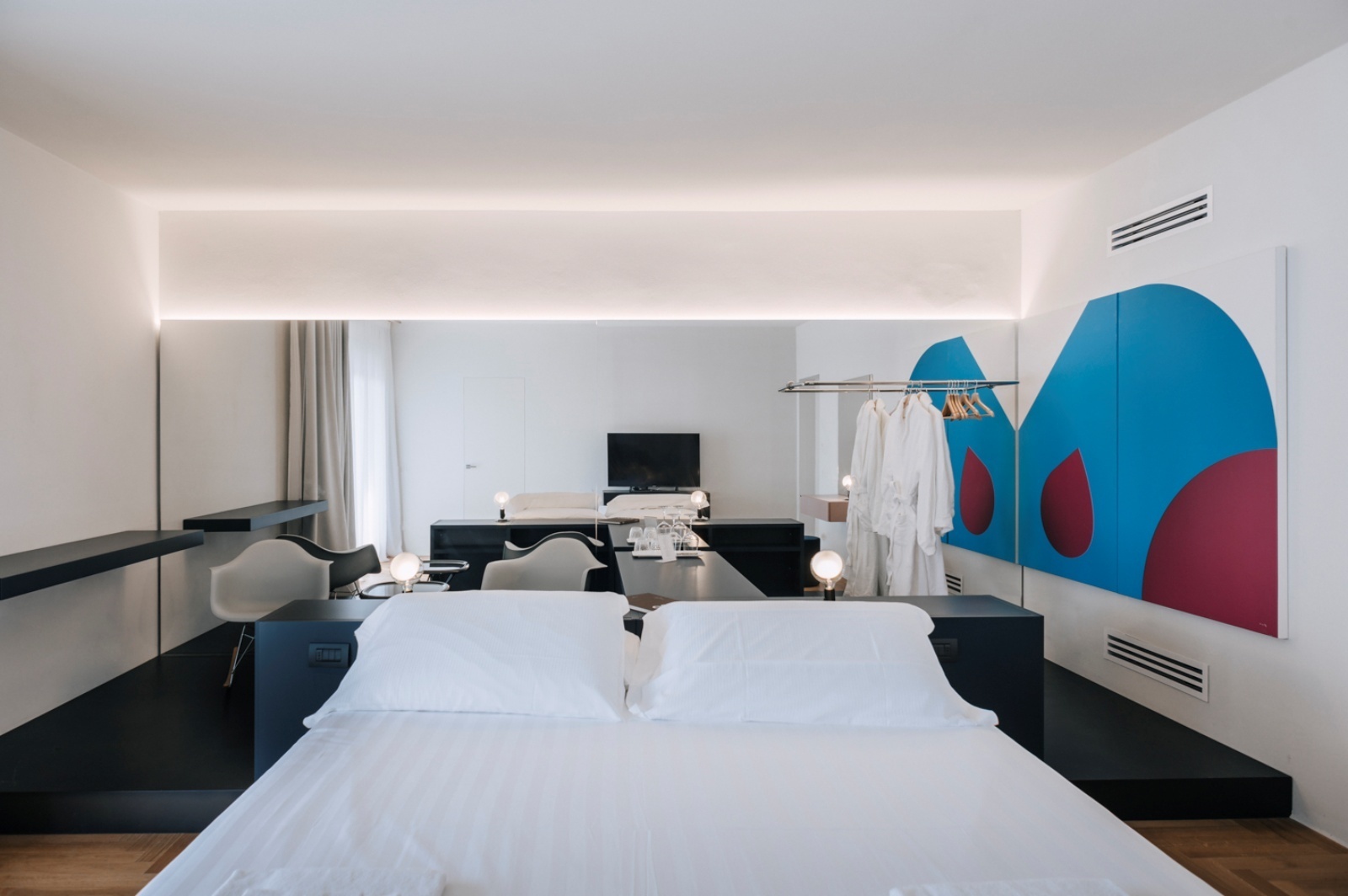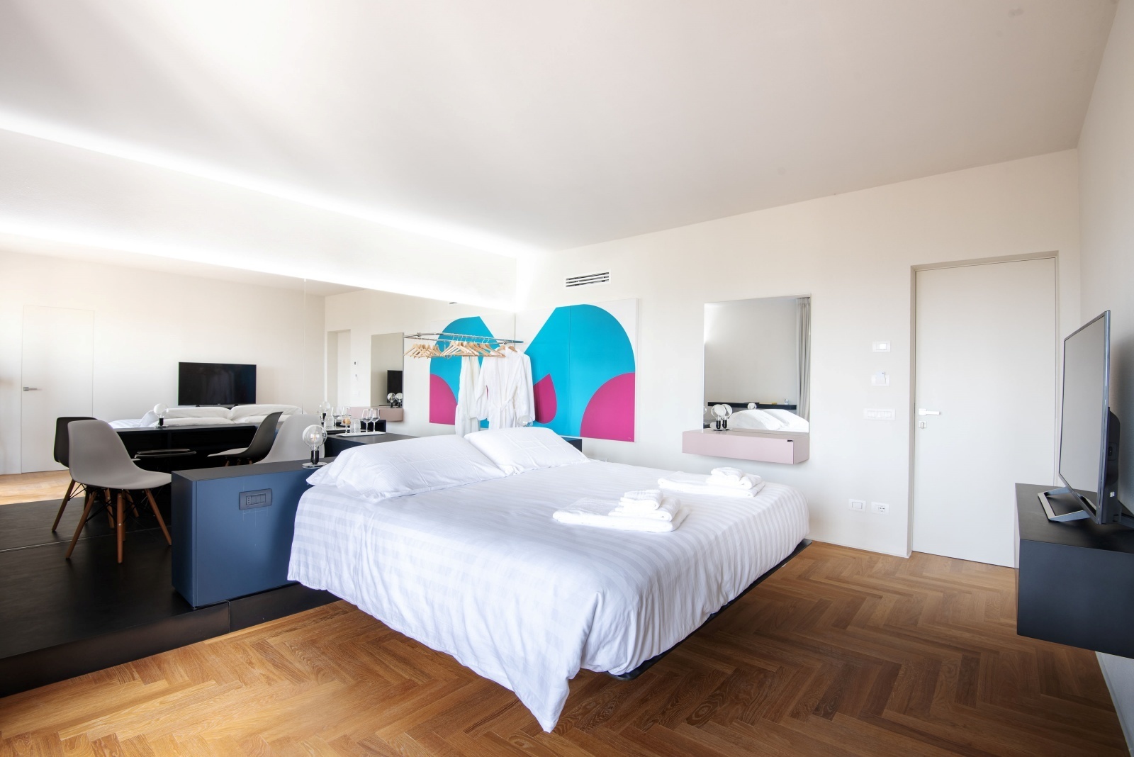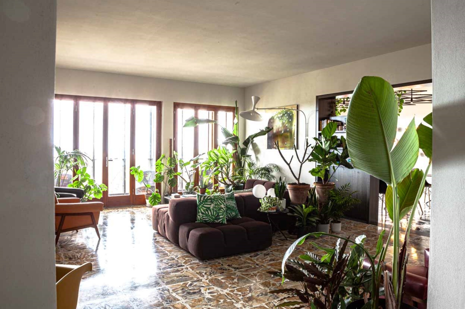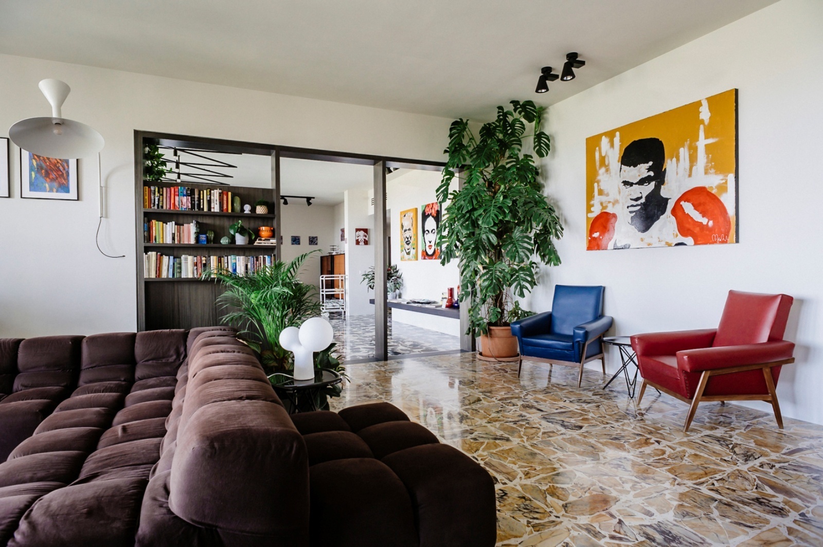In the living area the floors are of wonderful original terrazzo from the 60s. In the sleeping area there are warm wood floors while in the bathrooms, modern particularly elegant finishes have been chosen.