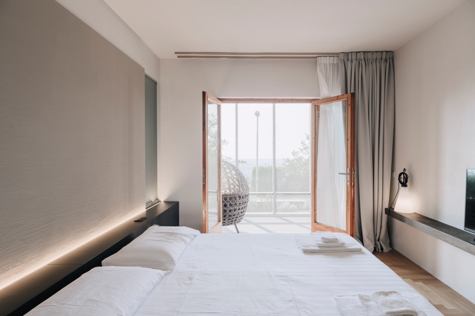 Climbing the external design staircase one reaches the large living area characterized by large windows with breathtaking views, the living room and the kitchen diner in addition to the service bathroom and the reception area intended for reception. There are 10 very spacious and comfortable suites with ample space for wardrobe and private service. The laundry area, technical area and large common areas have been made to ensure privacy and confidentiality for guests. Each room has sea views and access to outdoor loggia or terraced spaces.