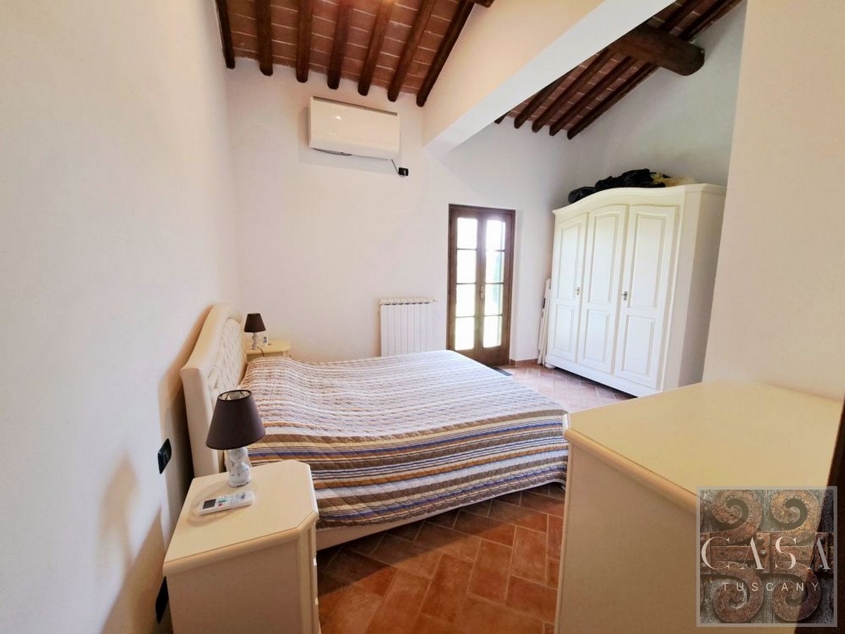 A short distance from Castelfalfi Golf Course, one of the best golf courses in Tuscany, a beautiful detached 2 bedroom villa part of an old building complex renovated in 2006, with shared pool.
