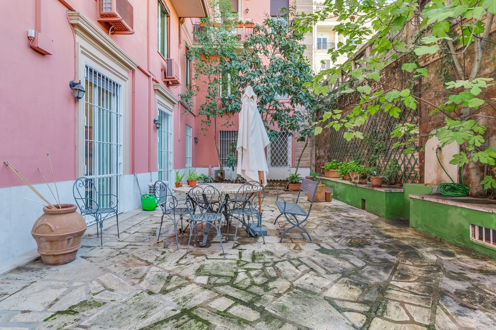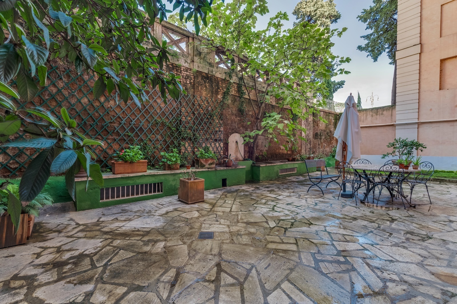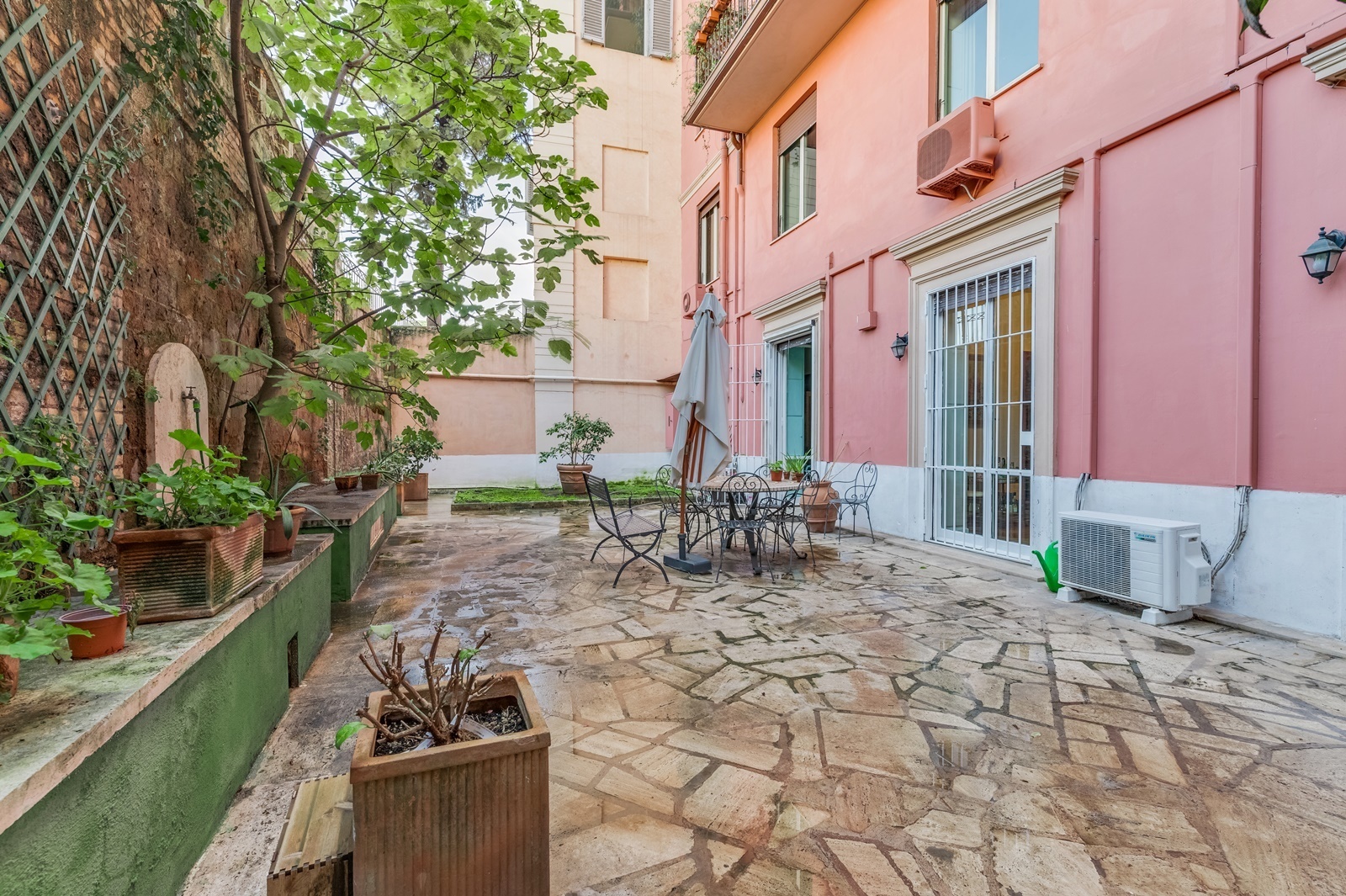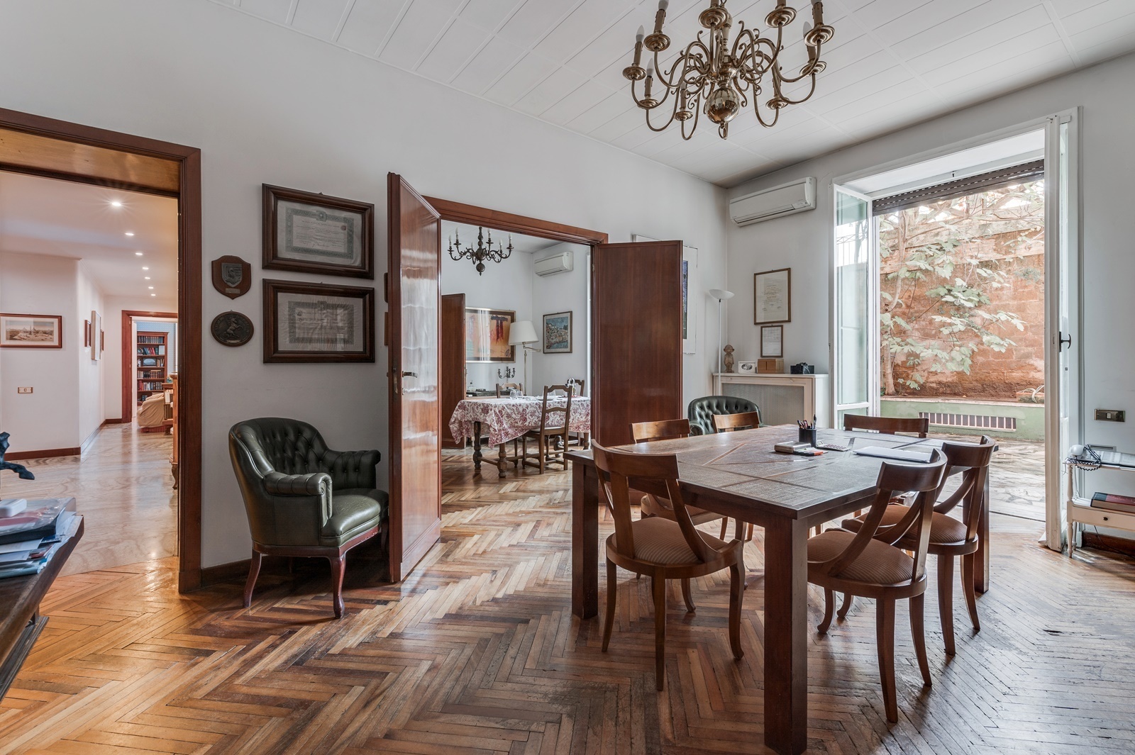 A prestigious 280 sqm. ground floor apartment with terrace, concierge service and lift in the historic centre of Rome.