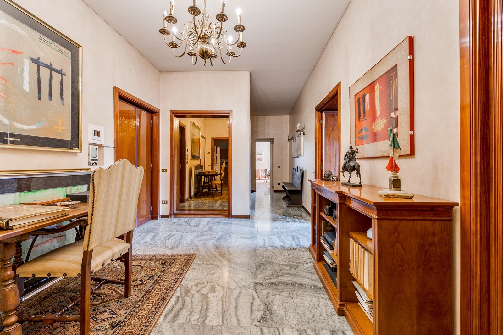We offer for sale this prestigious 270 sqm. apartment in the historic centre of Rome. Located on the first floor of an elegant period building with panoramic views of Piazza del Popolo.