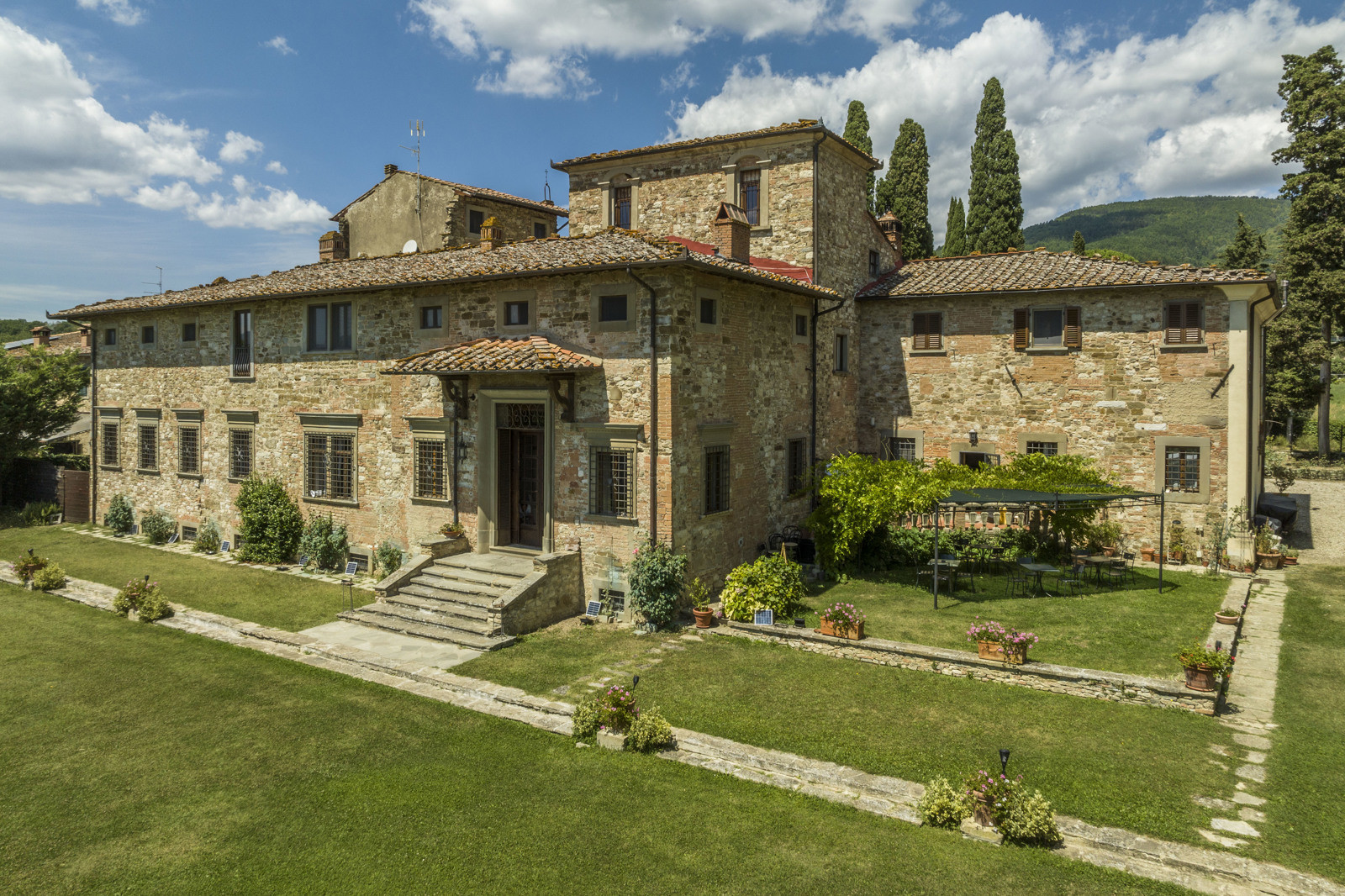 Elegant Medici villa of 1550 sqm, used for high-level accommodation, with swimming pool and 4 hectares of land, in the green of the typical Tuscan hills, near Scarperia in the Mugello area to the north of Florence.