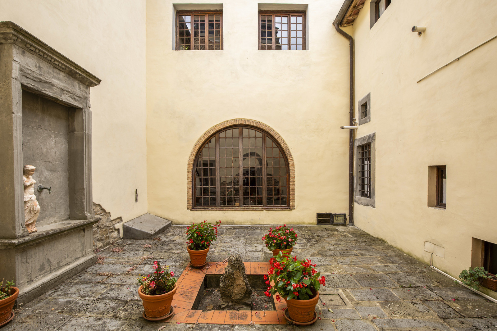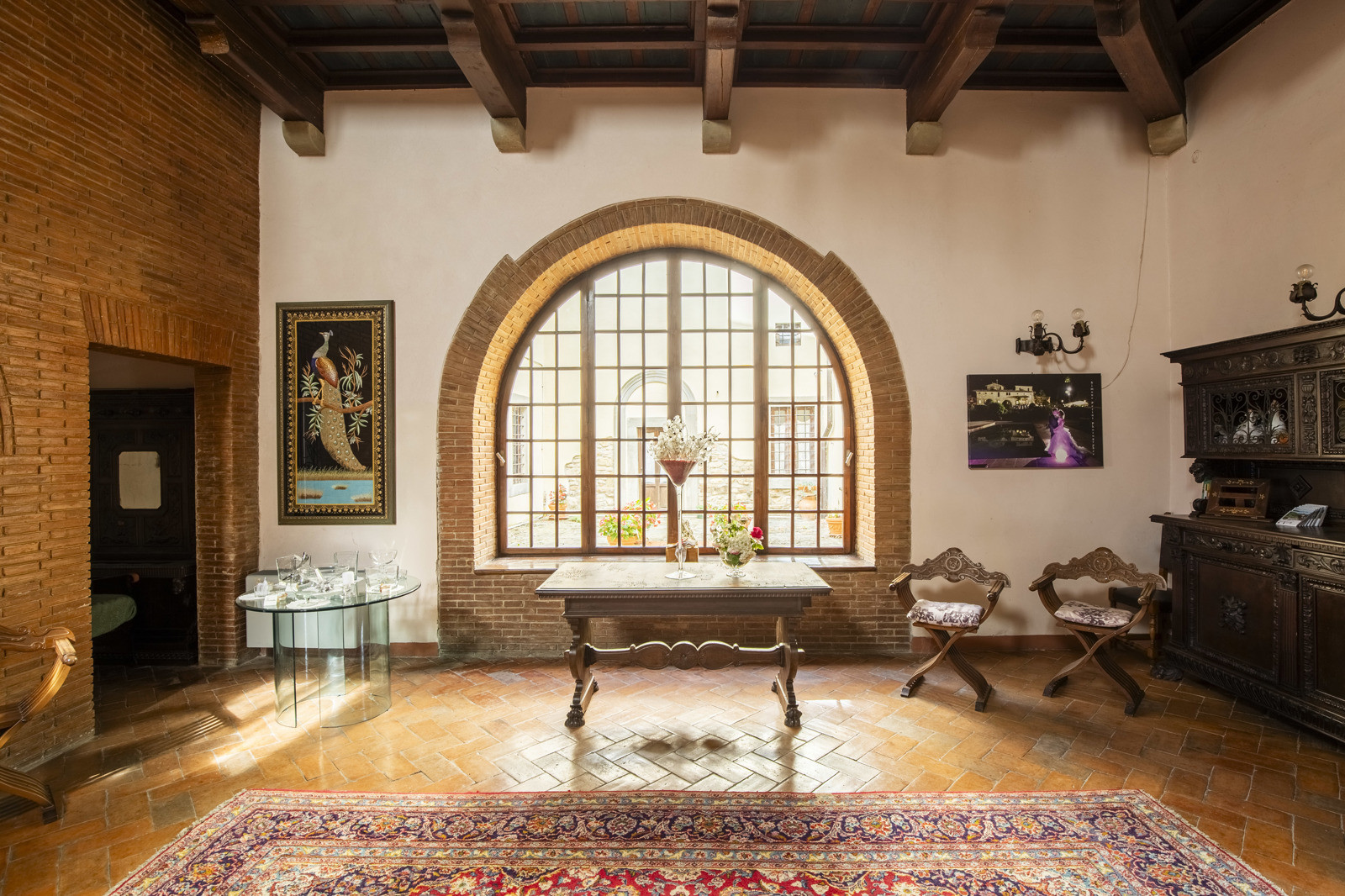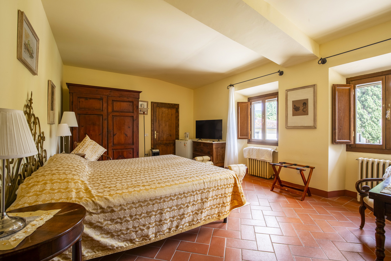 The first salone has an impressive 14th-century pietra serena fireplace bearing the coat of arms of the well-known Florentine family.