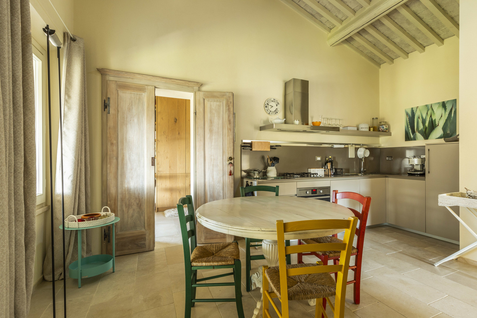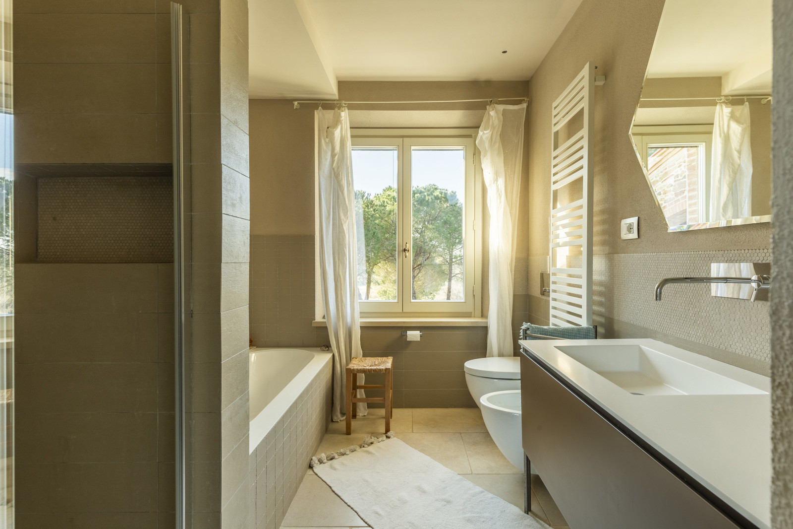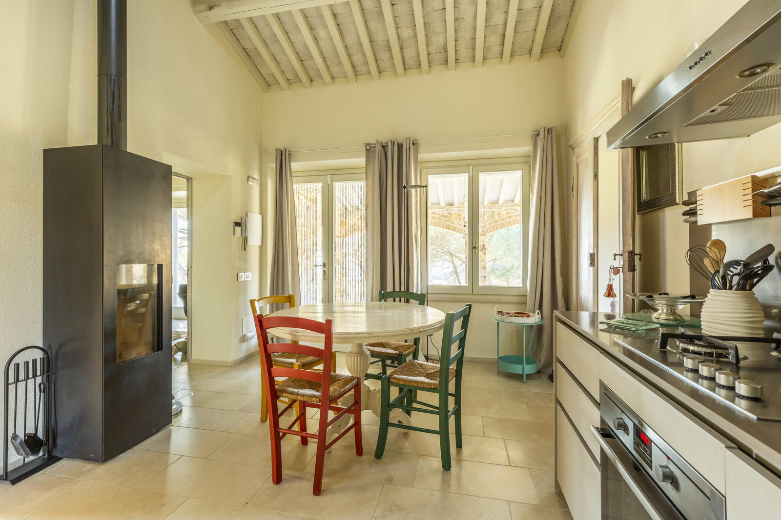 The wonderful farmhouse has been recently and perfectly renovated by the current owners respecting the traditional Tuscan style but creating spaces equipped with modern, state-of-the-art finishes and fine materials. There is underfloor heating, a thermo-fireplace, preparations for air conditioning, wooden window frames with double glazing, wooden beams.