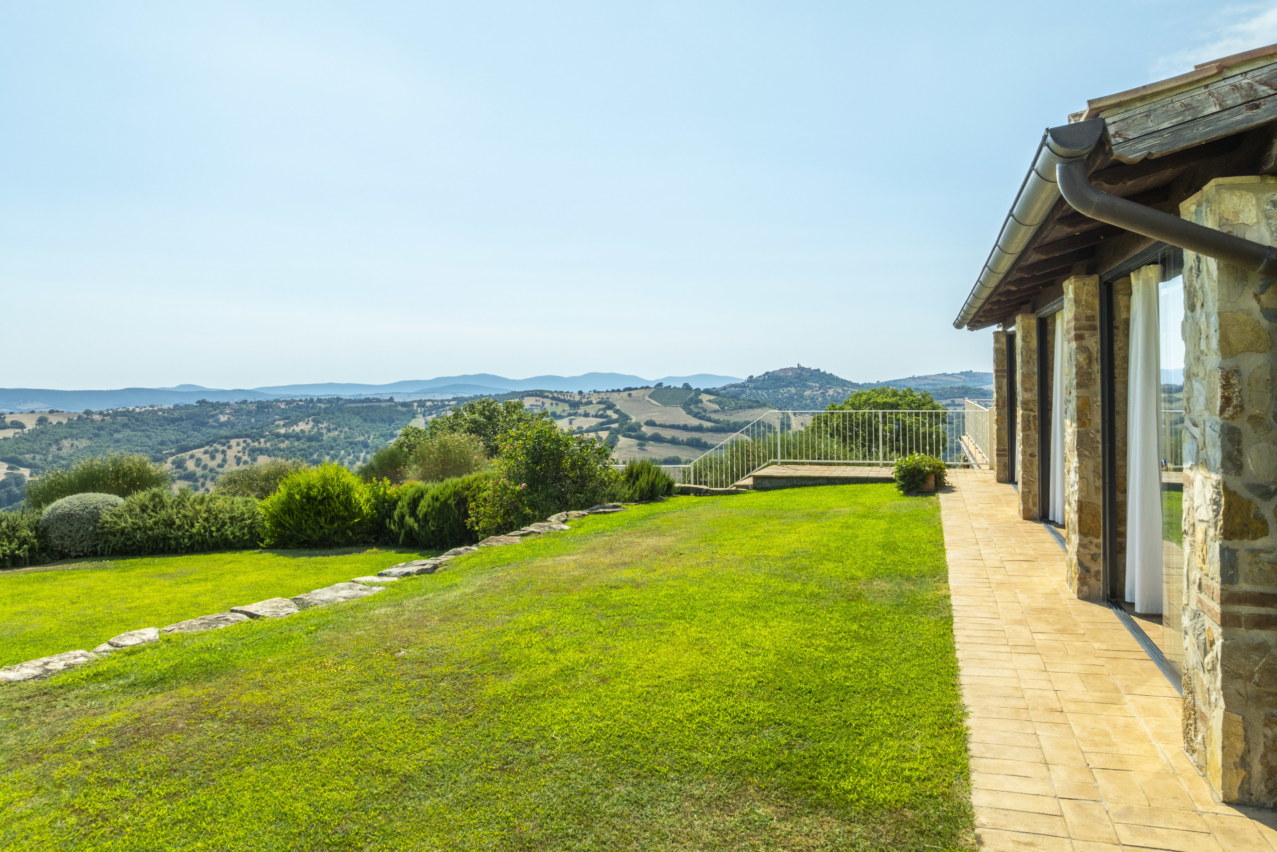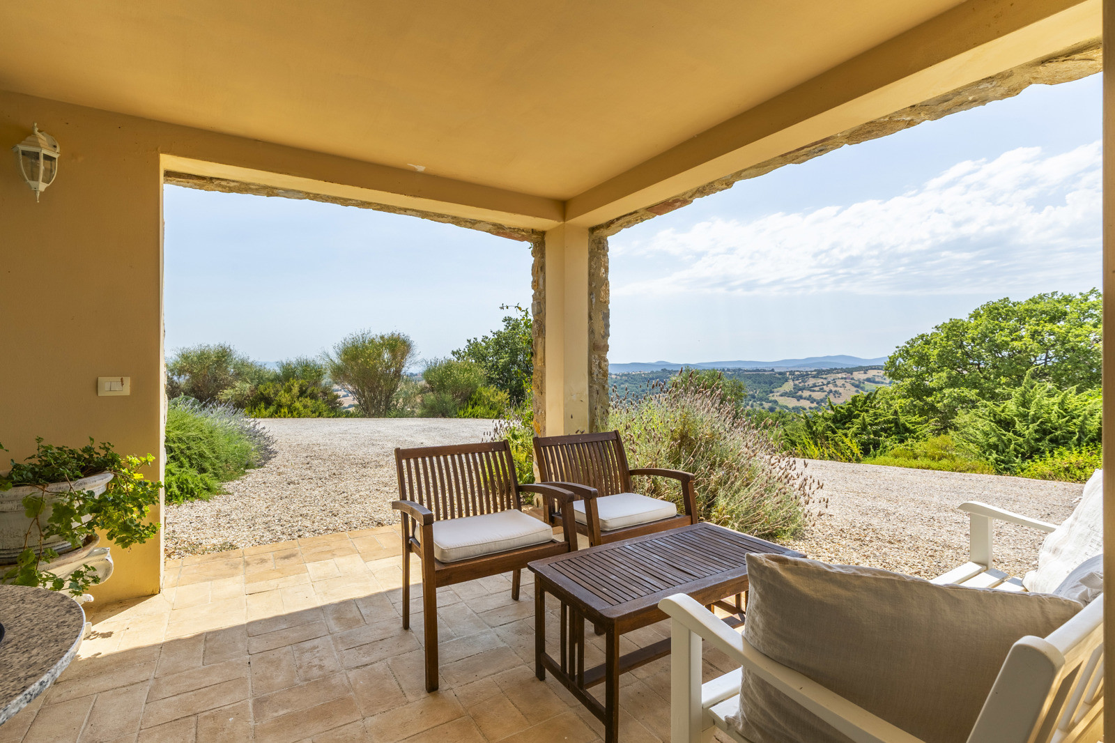 The Mediterranean garden surrounding the villa is rich in aromatic herbs, flowers, and lawns. The area in front of the villa is ideal for the installation of an infinity pool with a spectacular view. The furnished verandas and outdoor relaxation areas allow you to enjoy the outdoors in every season, taking in spectacular views of the sea and the fiery sunsets that embrace the Argentario and the islands.