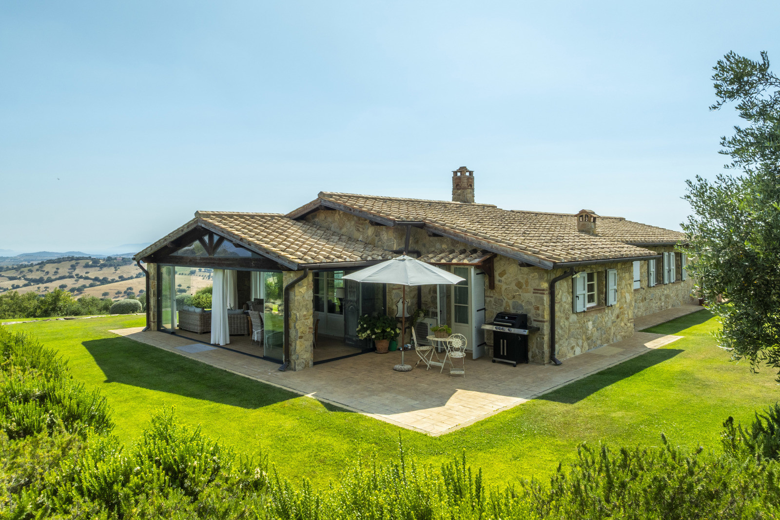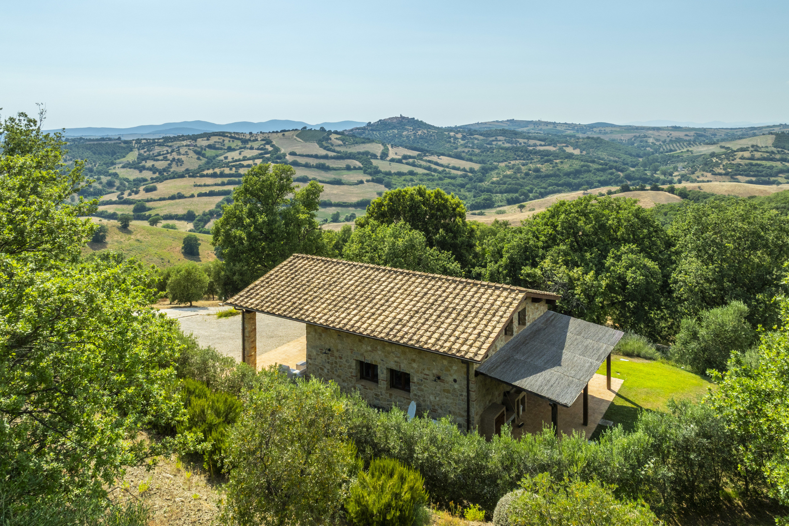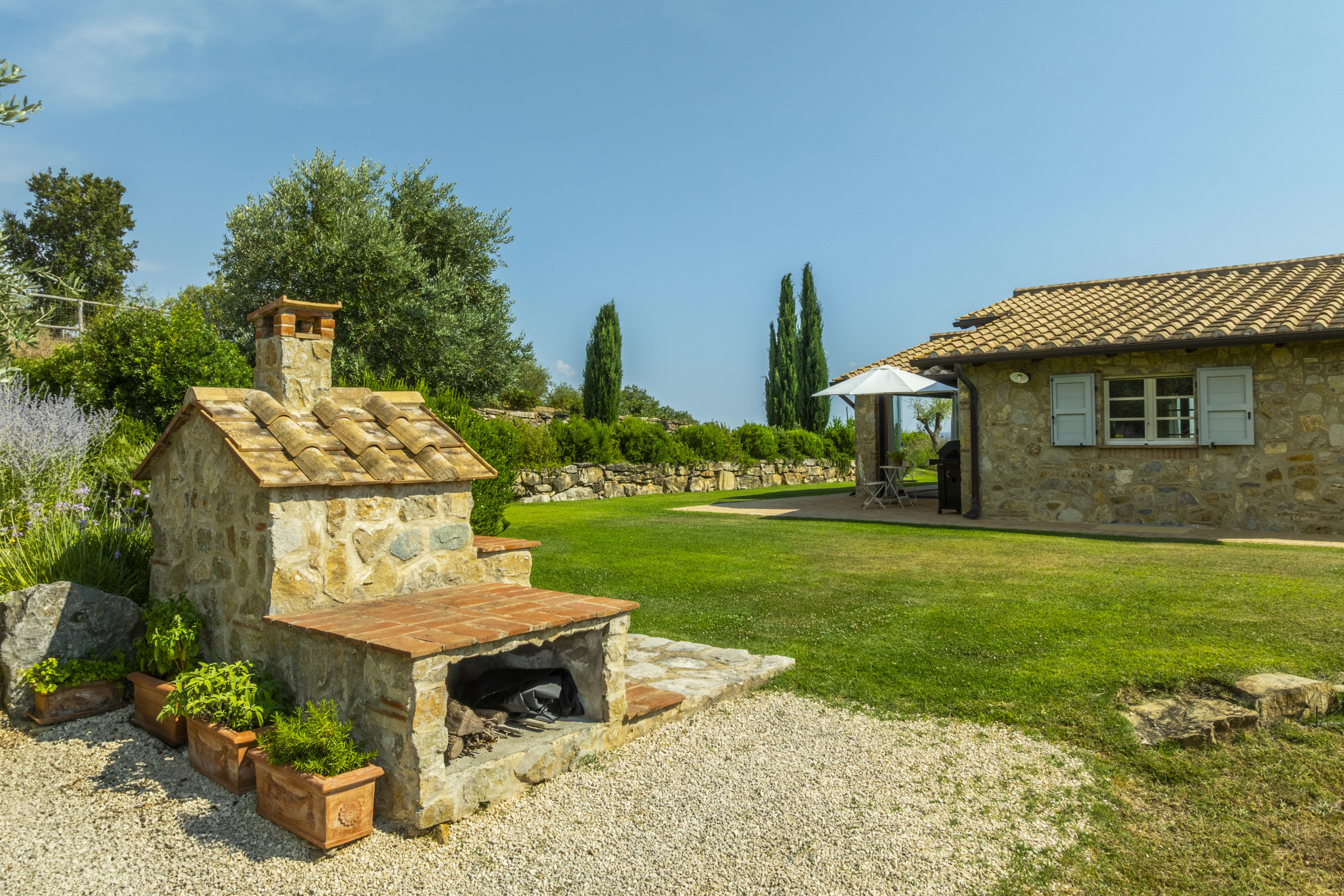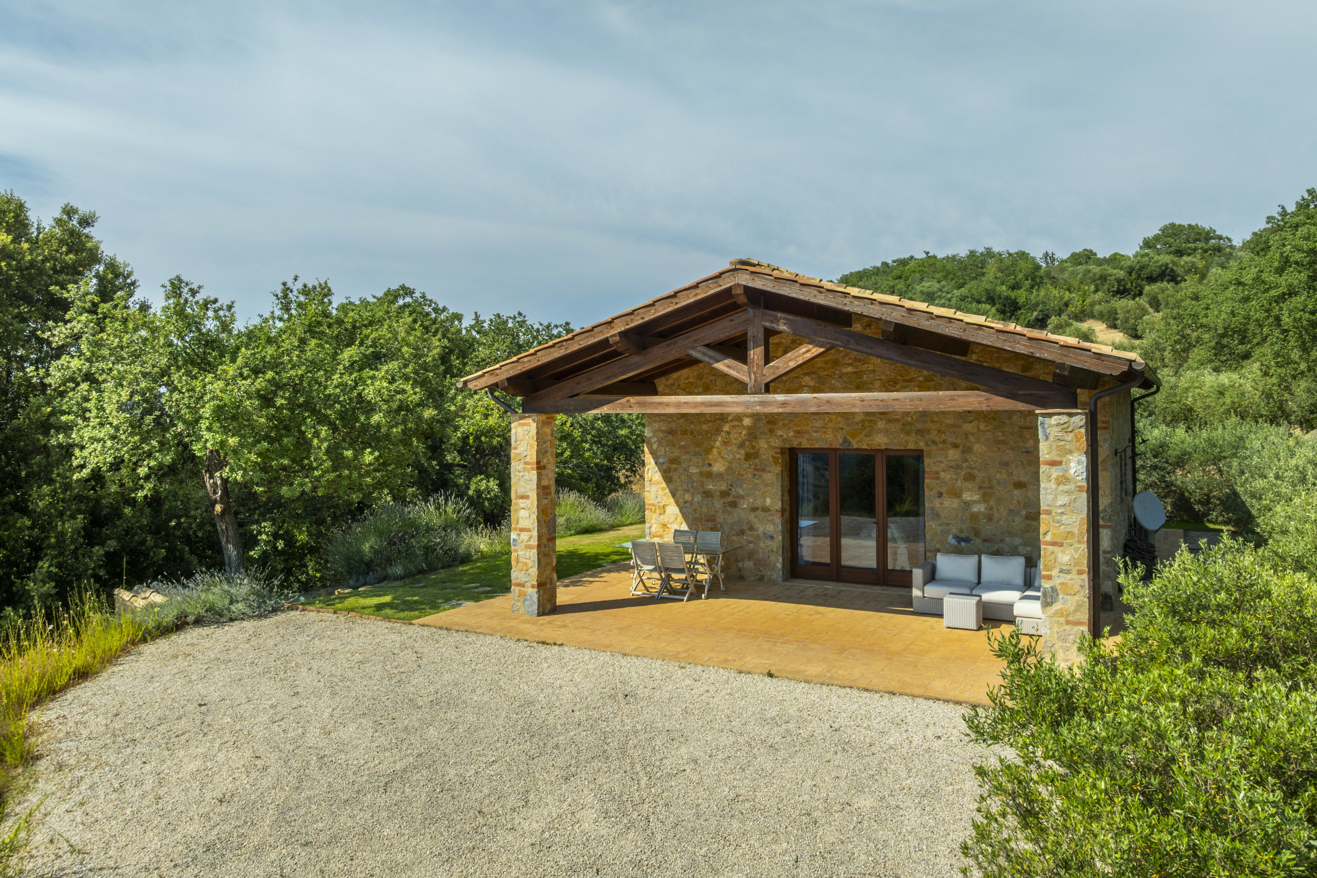 The estate is located near Magliano in Toscana, renowned for its Morellino vineyards, hilly landscapes, and proximity to the sea. Although in the countryside, it is easily accessible and surrounded by prestigious residences that guarantee privacy in an authentic setting. The beaches of Monte Argentario, such as Talamone, Porto Ercole, and Porto Santo Stefano, can be reached in 20–30 minutes. Rome is about two hours away, as is Florence; Siena and Pisa airport are about an hour and a half away.