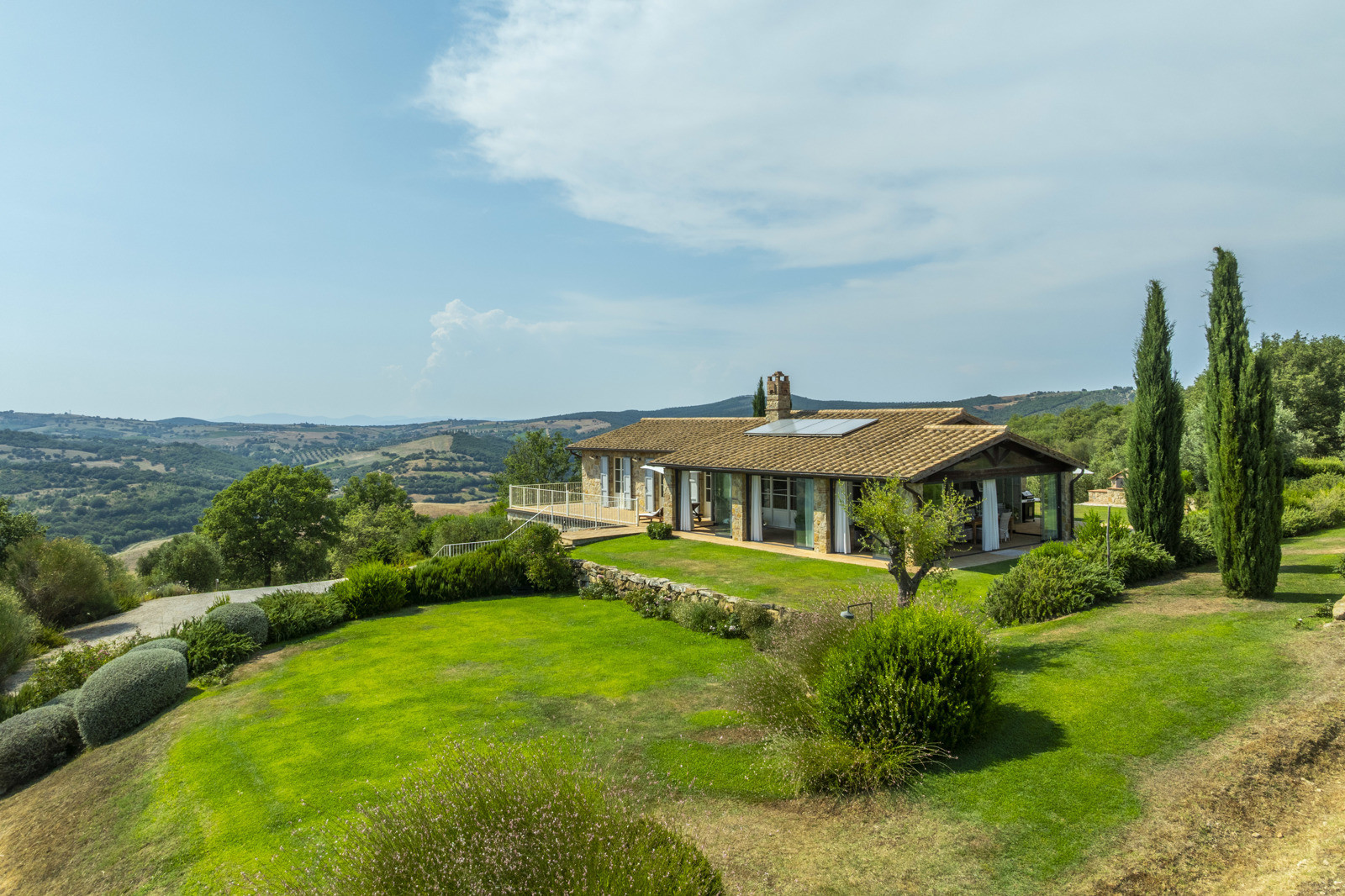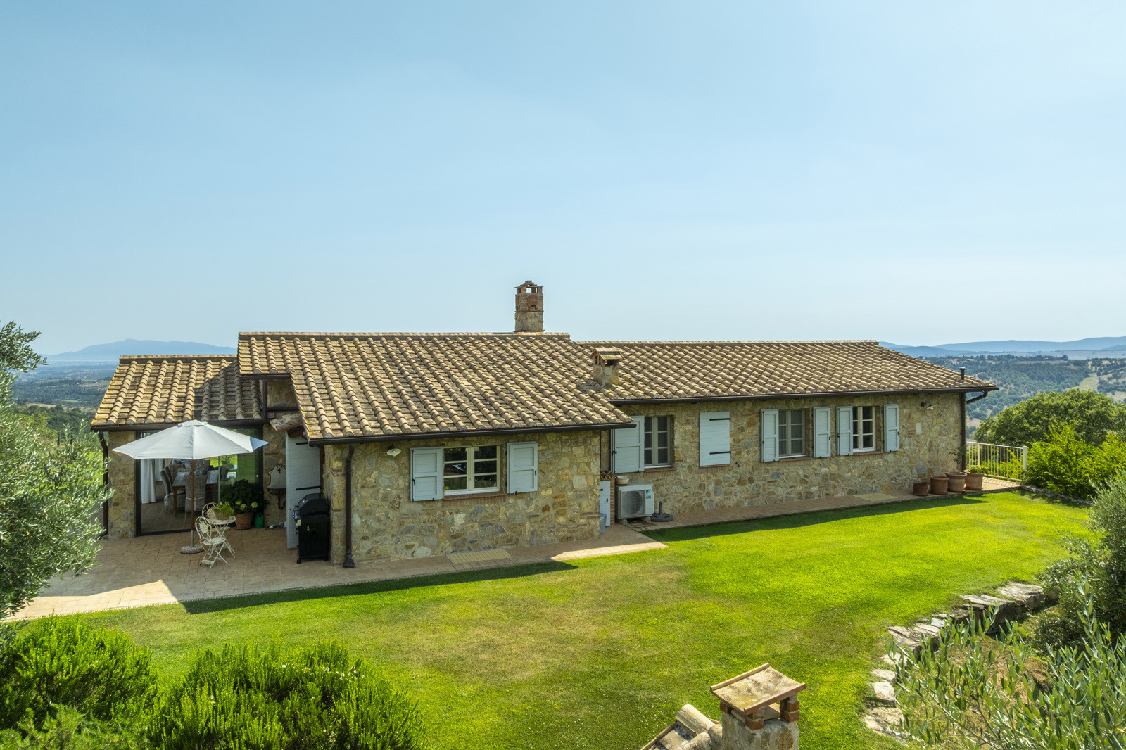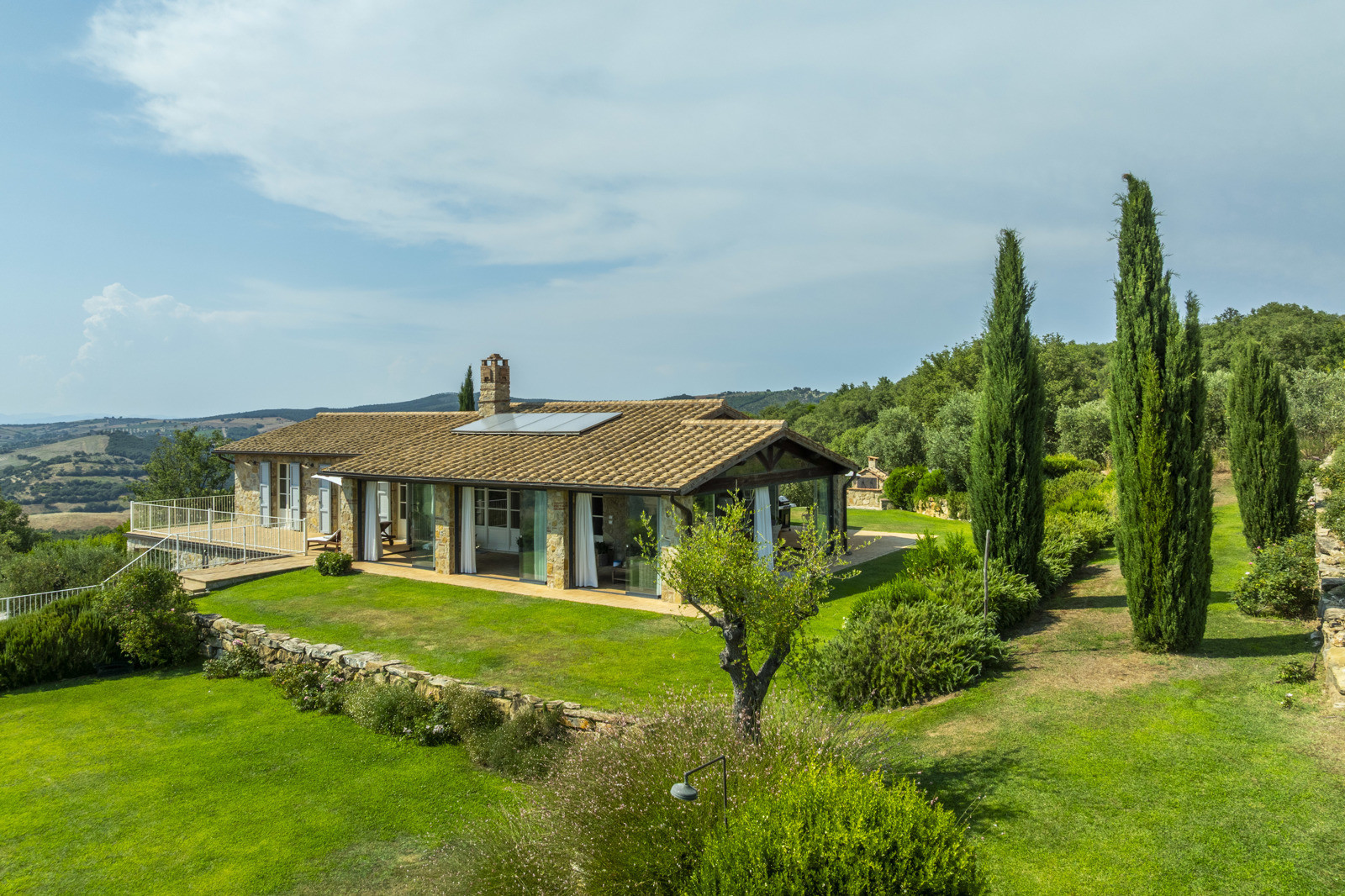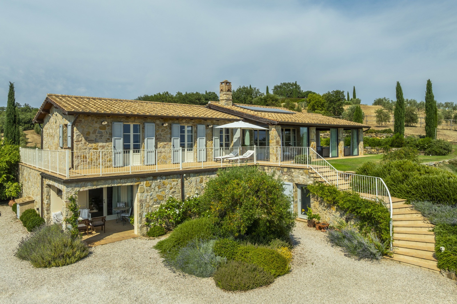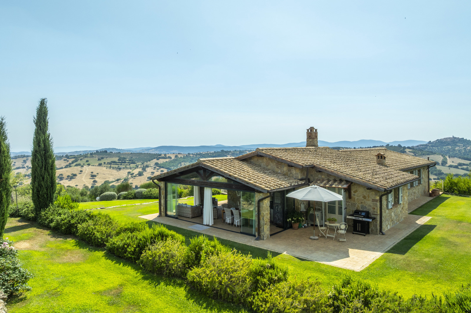The estate is located near Magliano in Toscana, renowned for its Morellino vineyards, hilly landscapes, and proximity to the sea. Although in the countryside, it is easily accessible and surrounded by prestigious residences that guarantee privacy in an authentic setting. The beaches of Monte Argentario, such as Talamone, Porto Ercole, and Porto Santo Stefano, can be reached in 20–30 minutes. Rome is about two hours away, as is Florence; Siena and Pisa airport are about an hour and a half away.