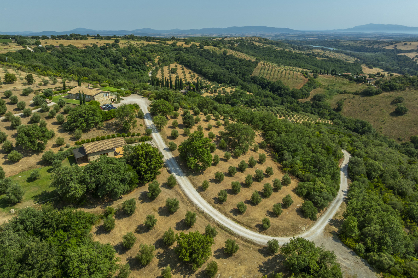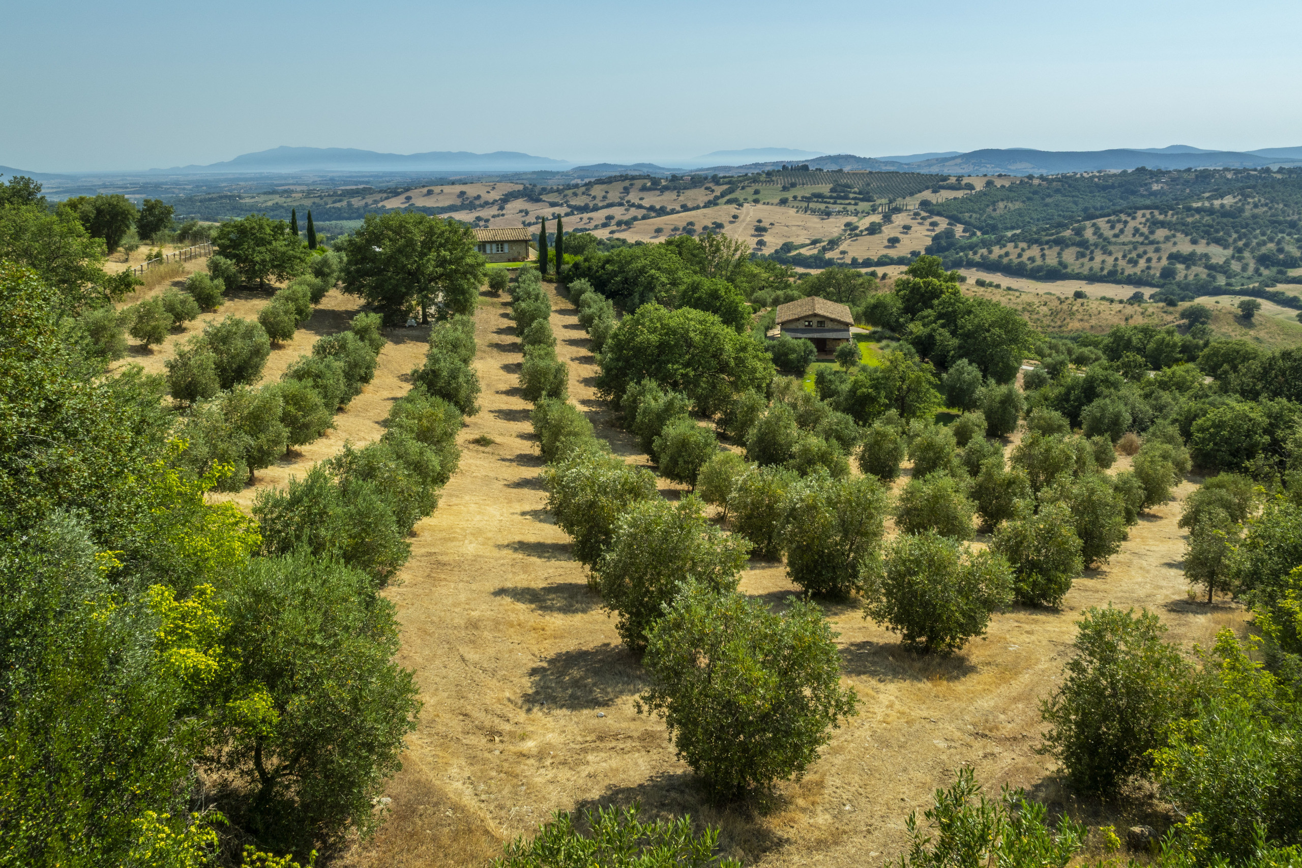Surrounded by unspoiled nature, the property guarantees absolute privacy and is suitable for multiple uses: a private residence, agricultural activity, or a hospitality business. The landscape enjoyed from the main villa encompasses Giglio, the Uccellina Park, and the rolling hills of the Maremma.