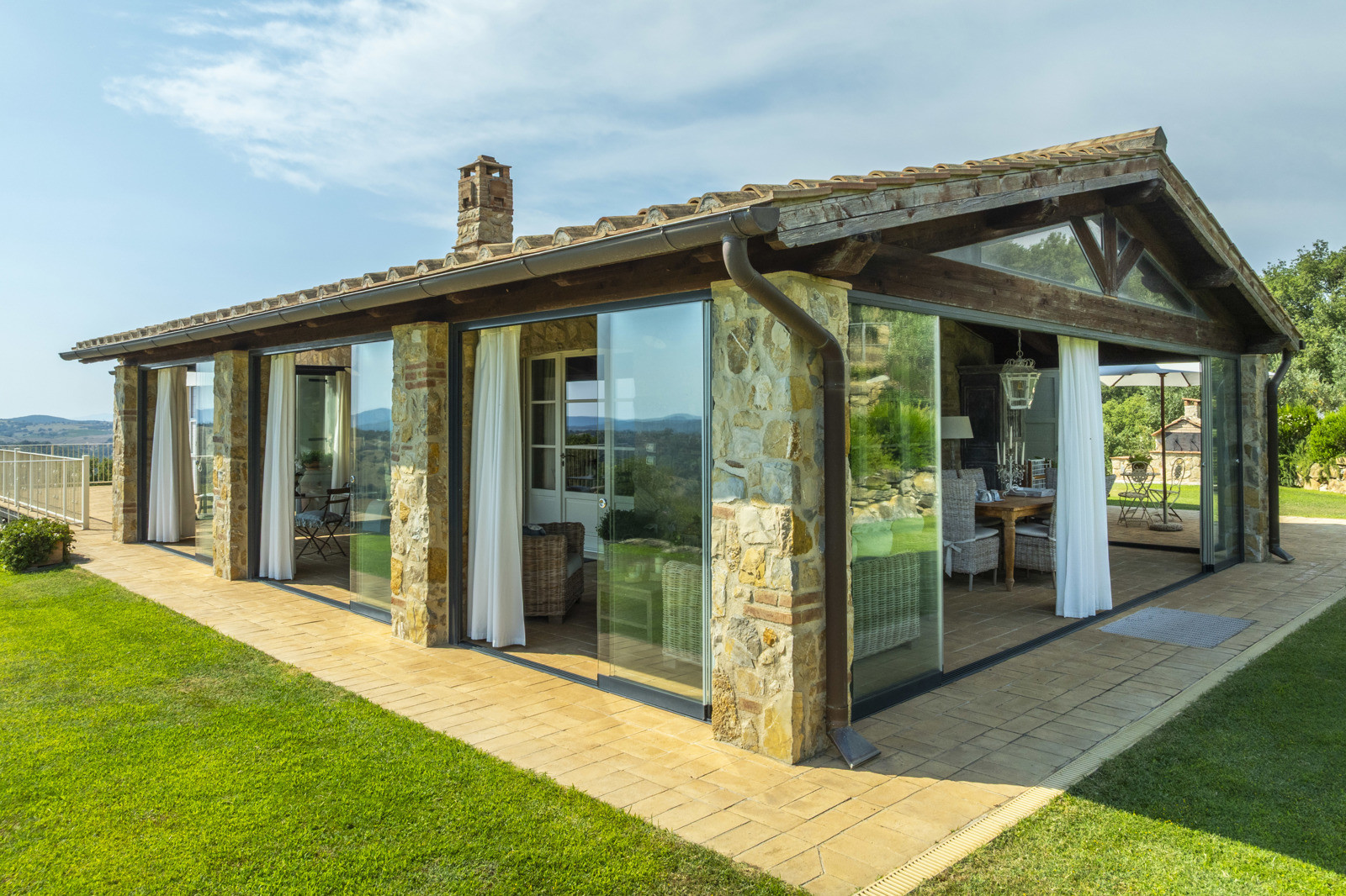 A large veranda welcomes guests, furnished to be enjoyed all year round as a “winter garden”.