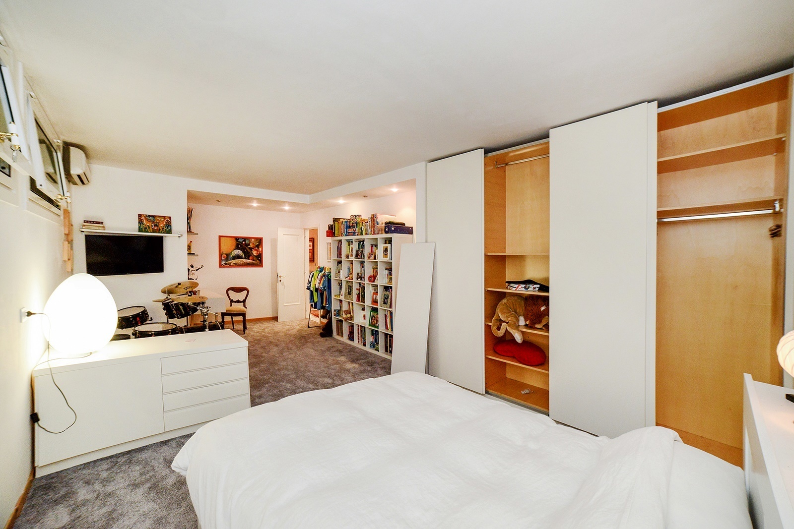 Upstairs is the master suite with a balcony, 2 large bathrooms (one of the two with a whirlpool bath), a wardrobe room with a balcony and another bright bedroom that may be used as study, which also has a balcony and fireplace. From the wardrobe room, via a staircase, the attic is well organized as a storage room.