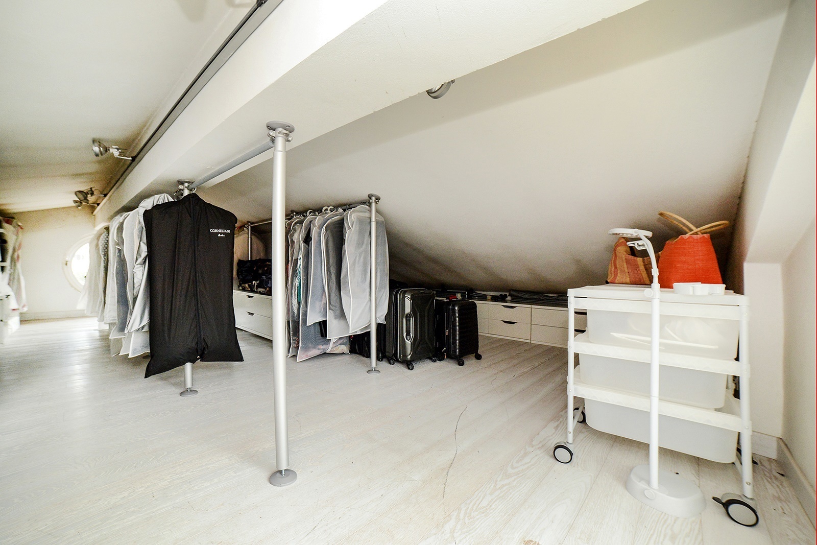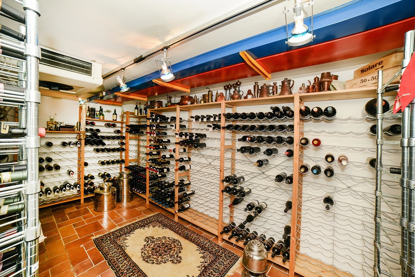 Also on the lower floor we find; a storage room with shelves for organizing kitchen equipment, a wine cellar, a room with a small library and a large study / workshop which also has its own bathroom.