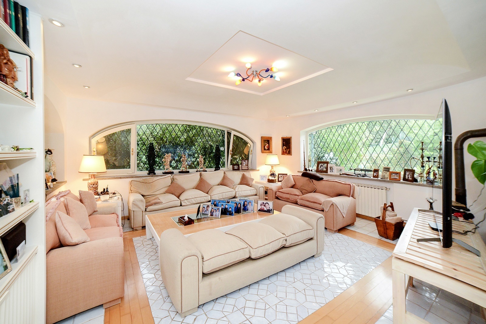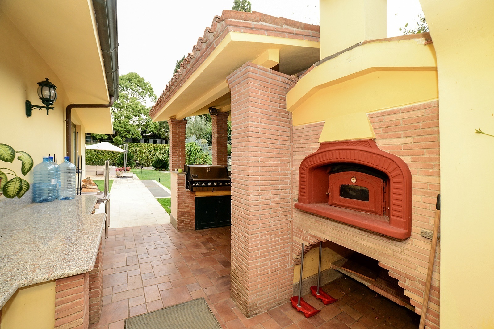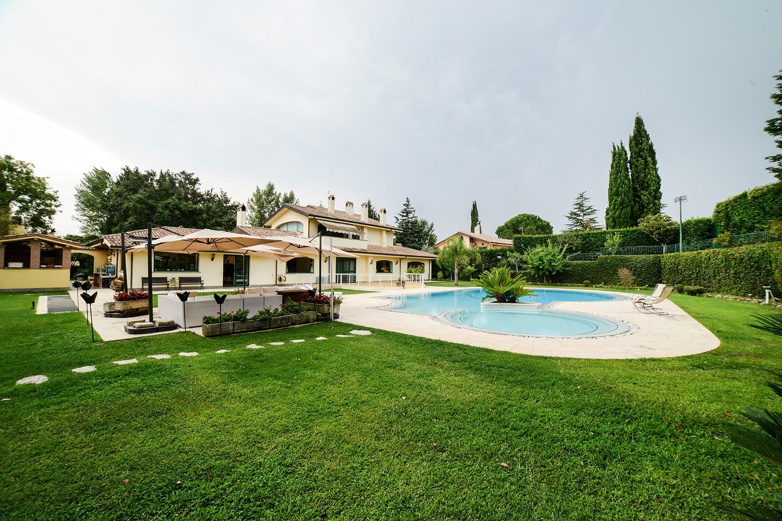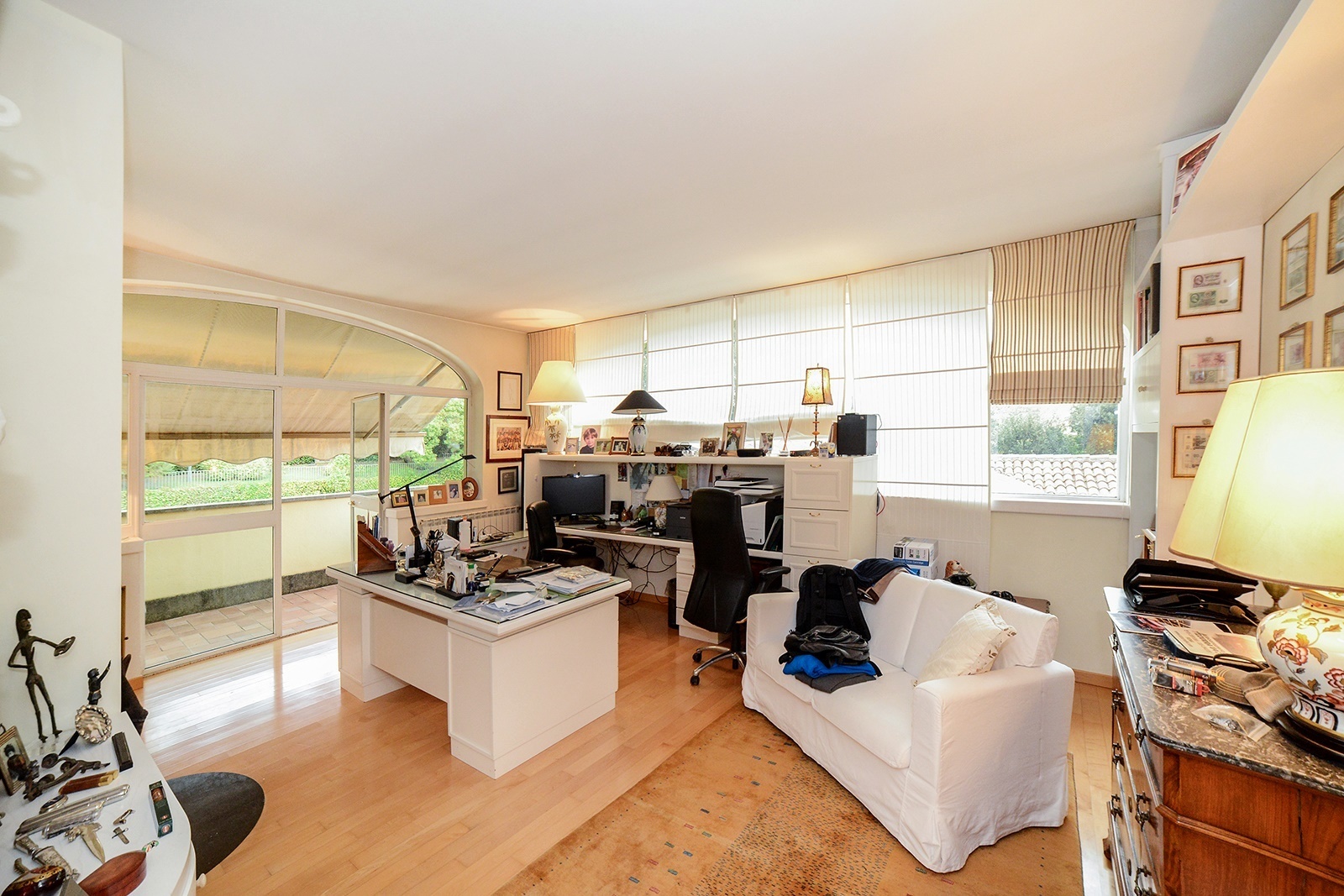 The detached villa of about 1500 square metres is located within the Olgiata area, and is on three levels, surrounded by a large garden of 3000 square metres with established trees, a swimming pool, outdoor relaxation areas, and a large garage for comfortably 3-4 cars.