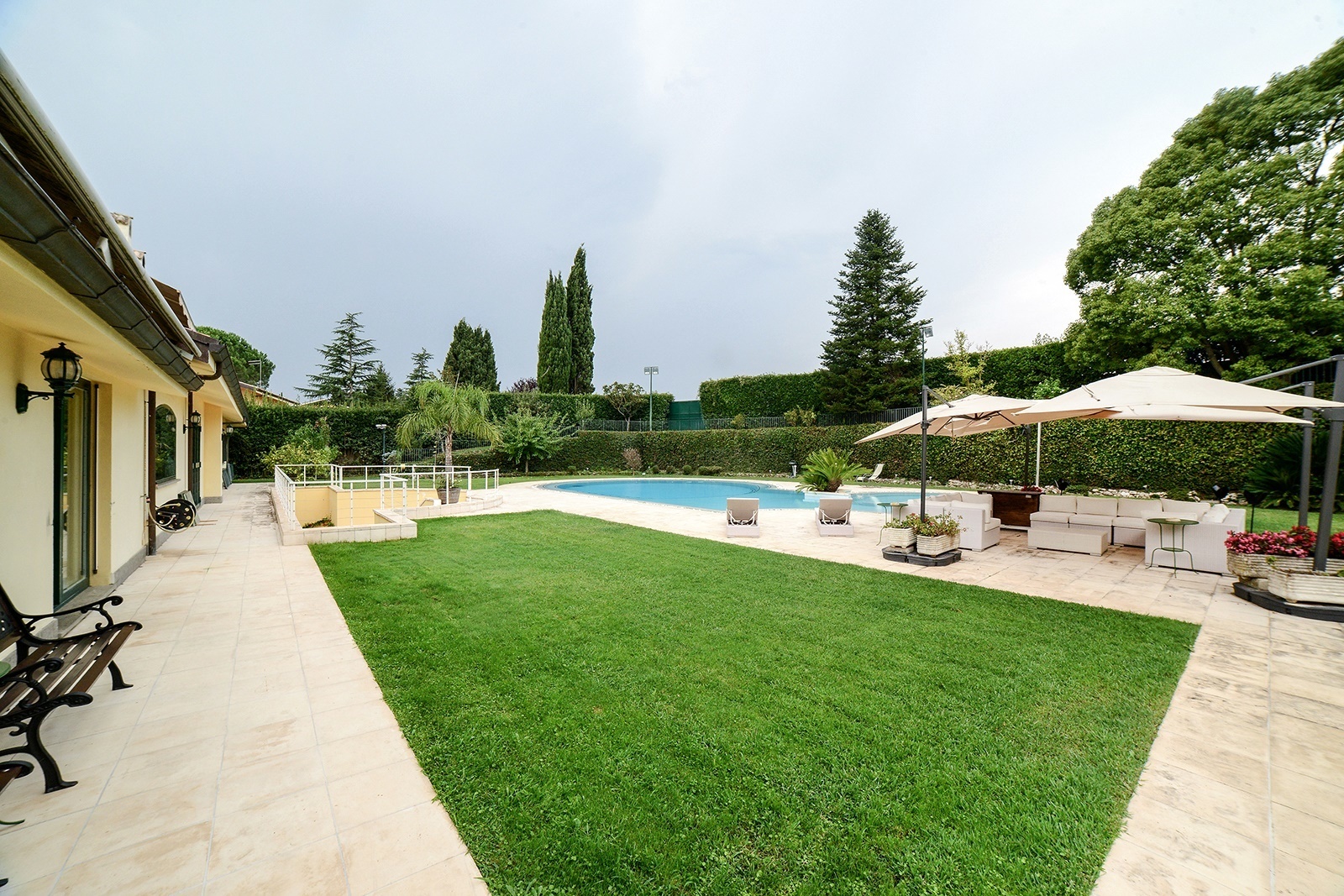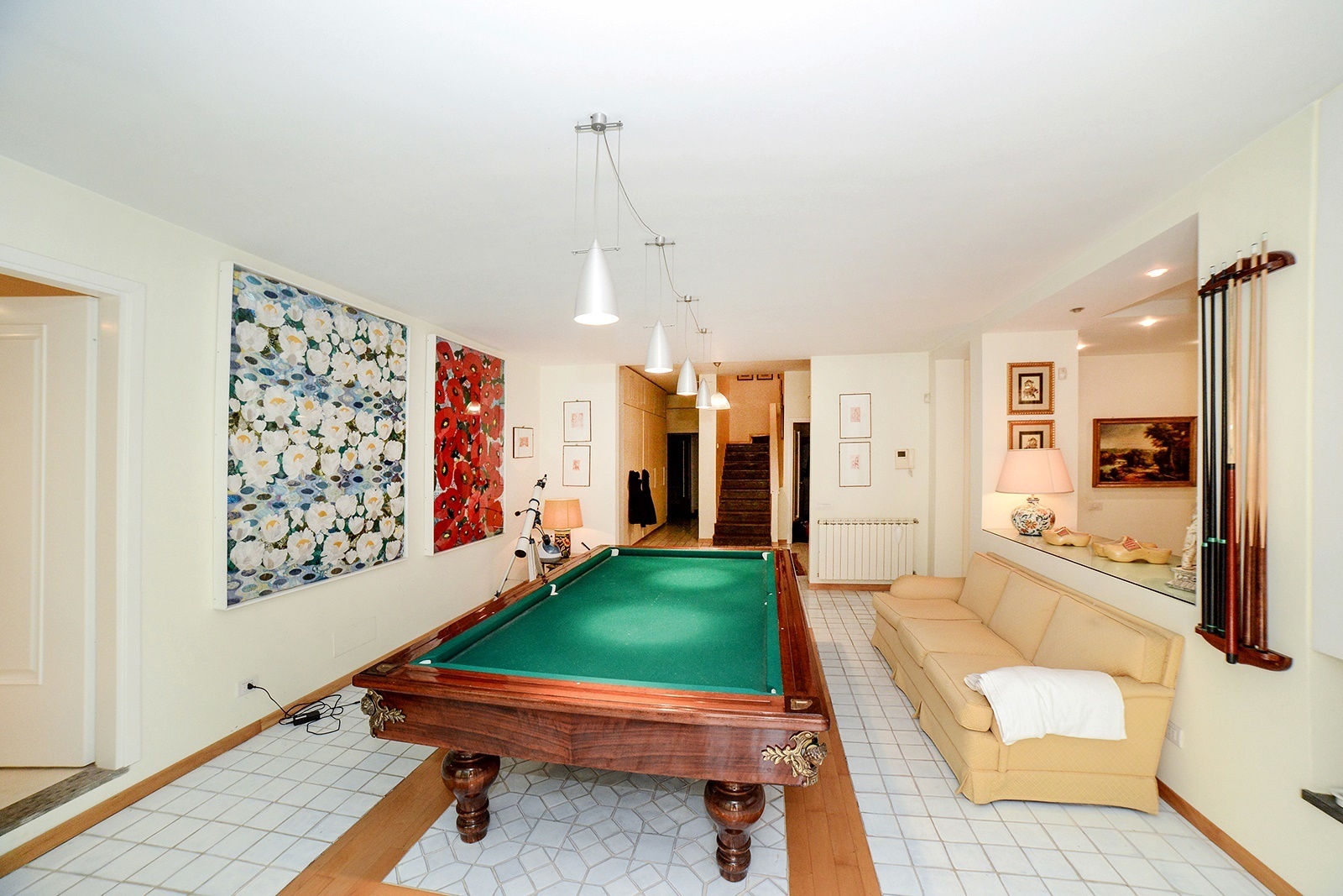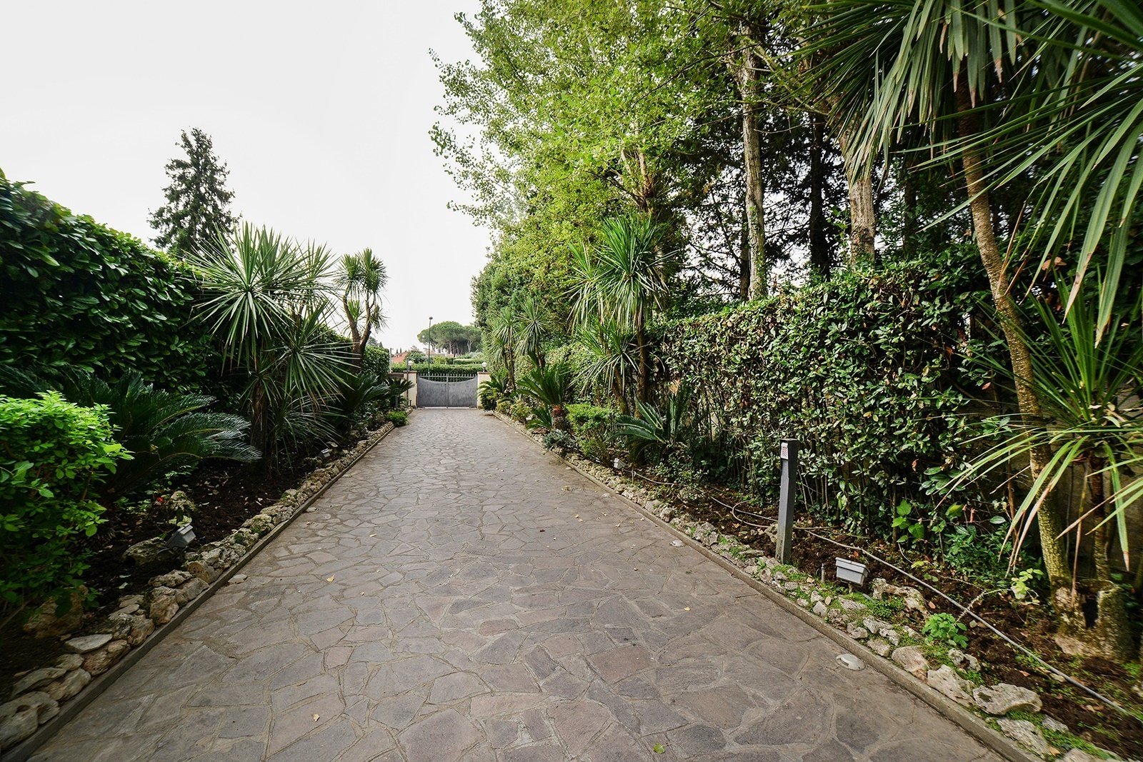 The detached villa of about 1500 square metres is located within the Olgiata area, and is on three levels, surrounded by a large garden of 3000 square metres with established trees, a swimming pool, outdoor relaxation areas, and a large garage for comfortably 3-4 cars.