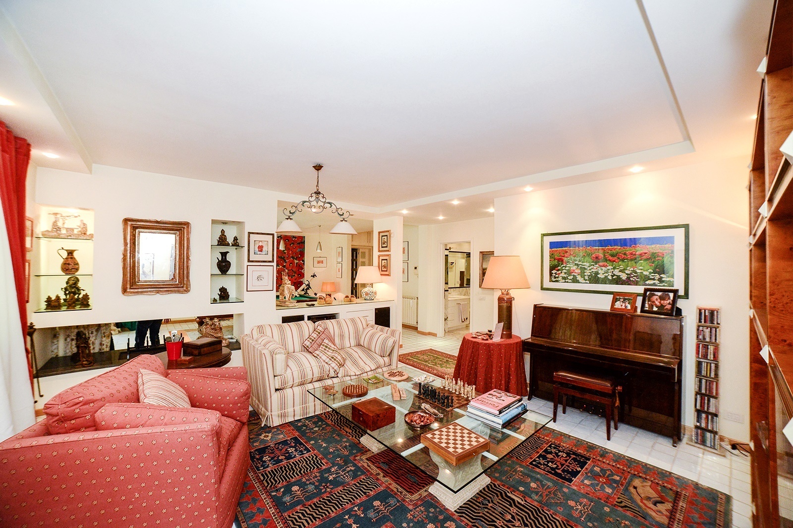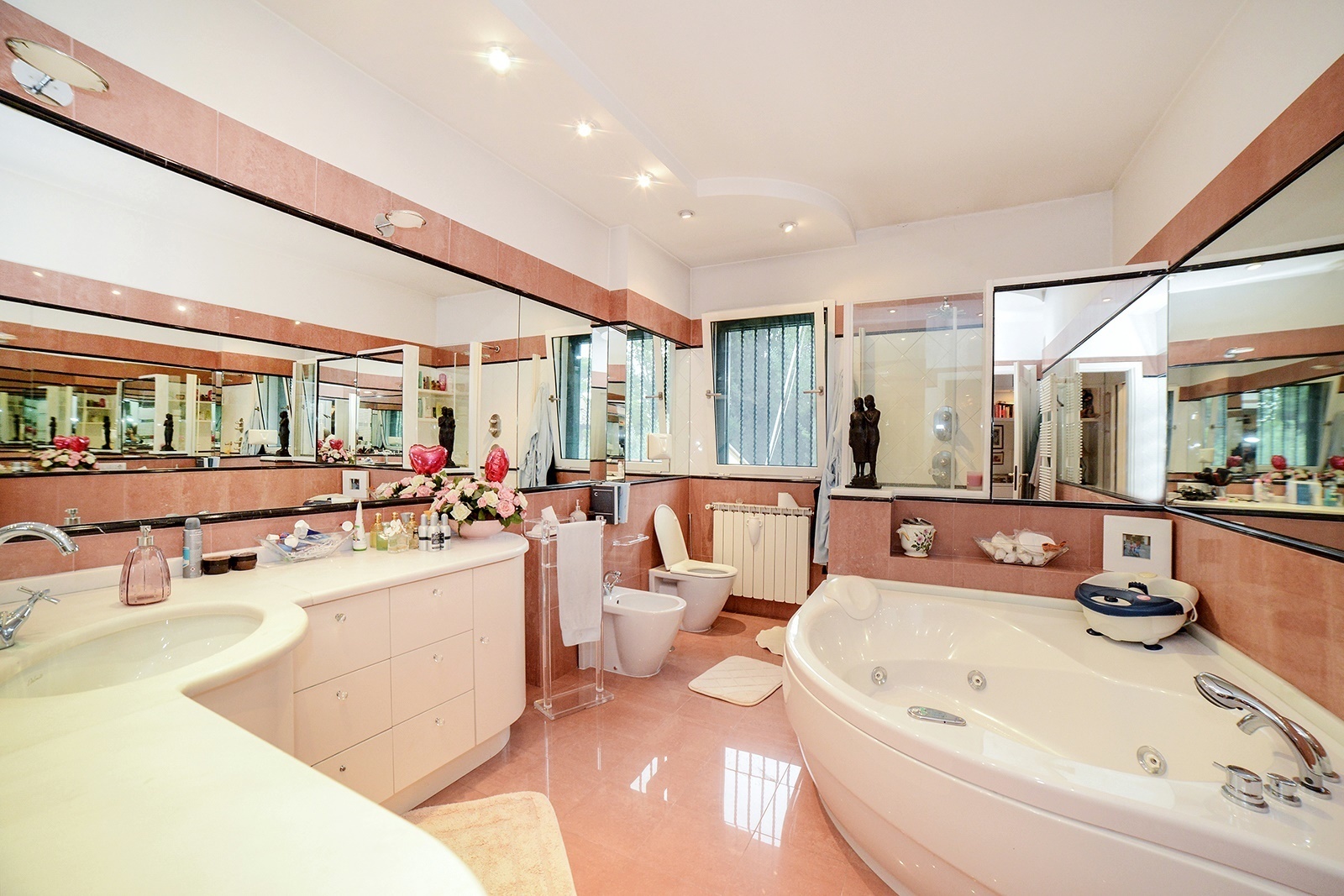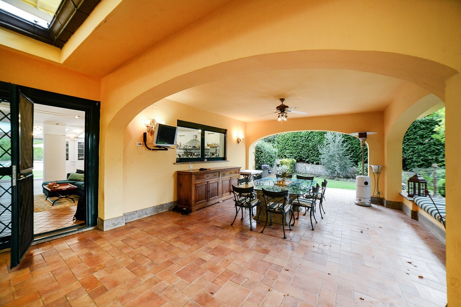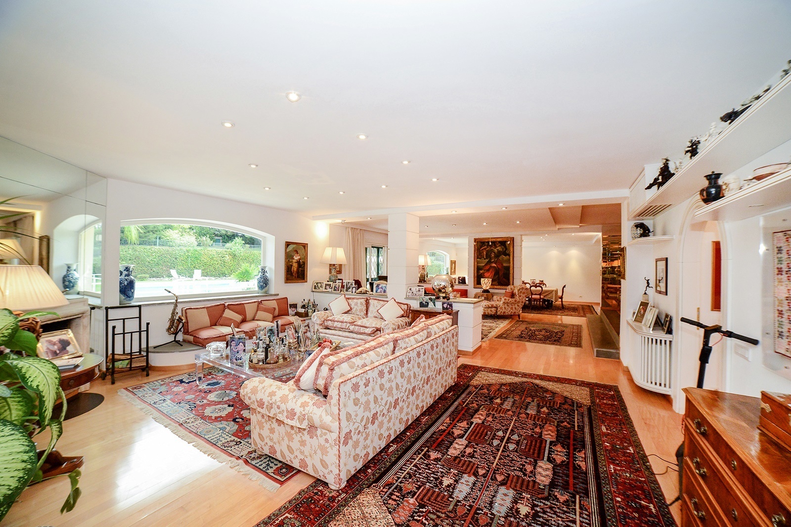 The detached villa of about 1500 square metres is located within the Olgiata area, and is on three levels, surrounded by a large garden of 3000 square metres with established trees, a swimming pool, outdoor relaxation areas, and a large garage for comfortably 3-4 cars.
