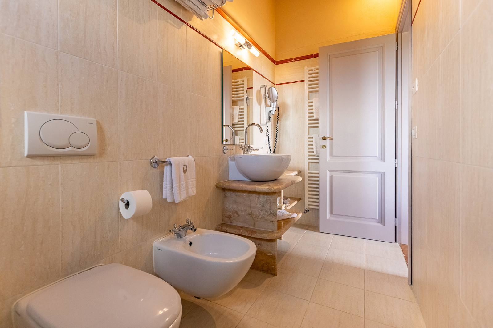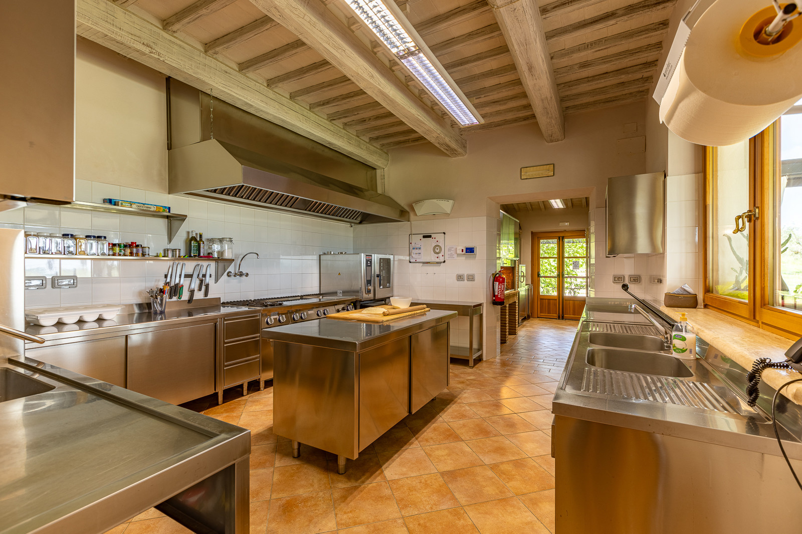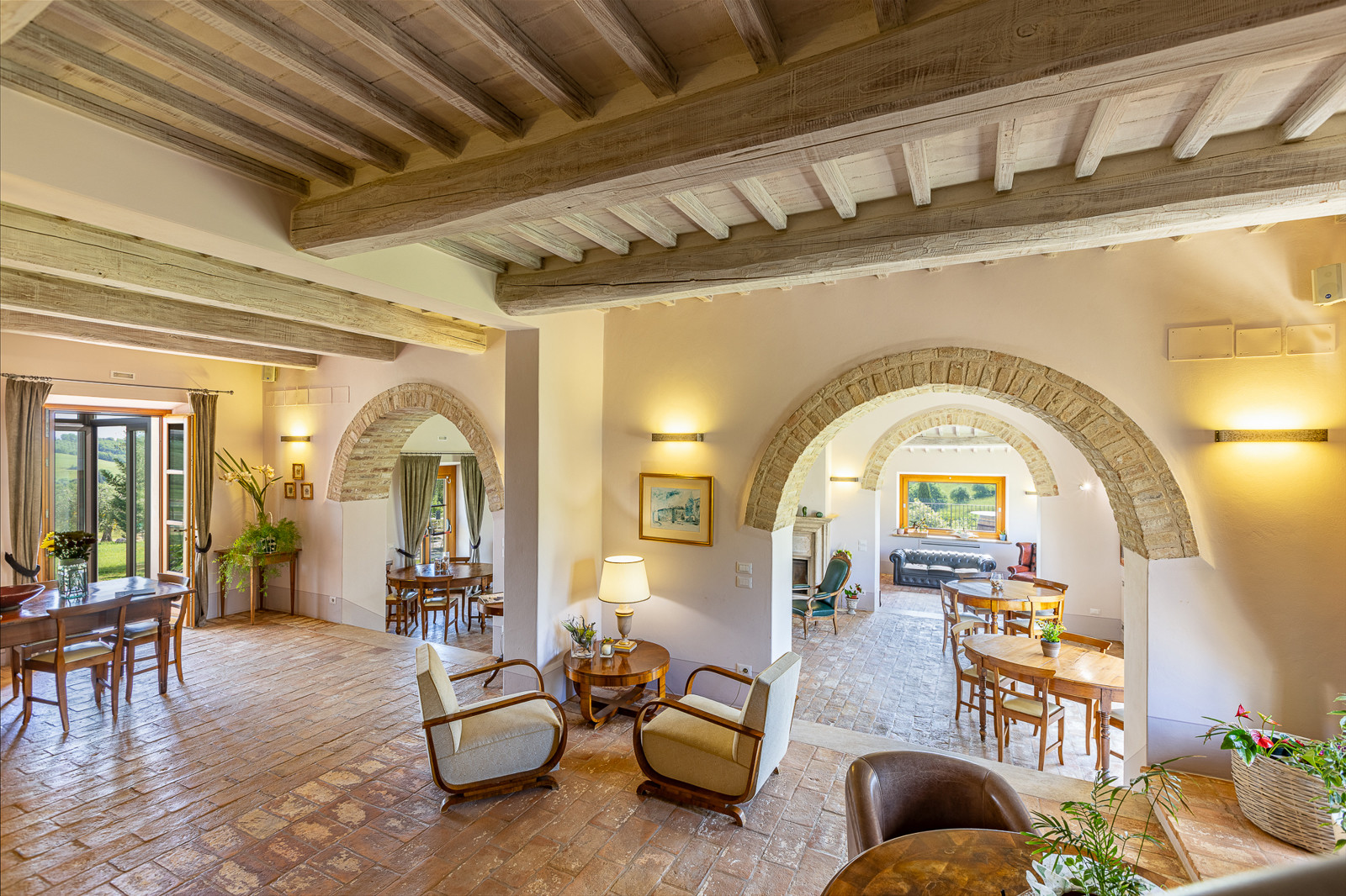 The estate has been finely restored, maintaining original elements such as terracotta floors, exposed beams and period furnishings, enhanced by modern comforts. It has 13 double bedrooms with private bathrooms, distributed between the main villa (8 bedrooms) and the annex (5 bedrooms), all tastefully furnished.