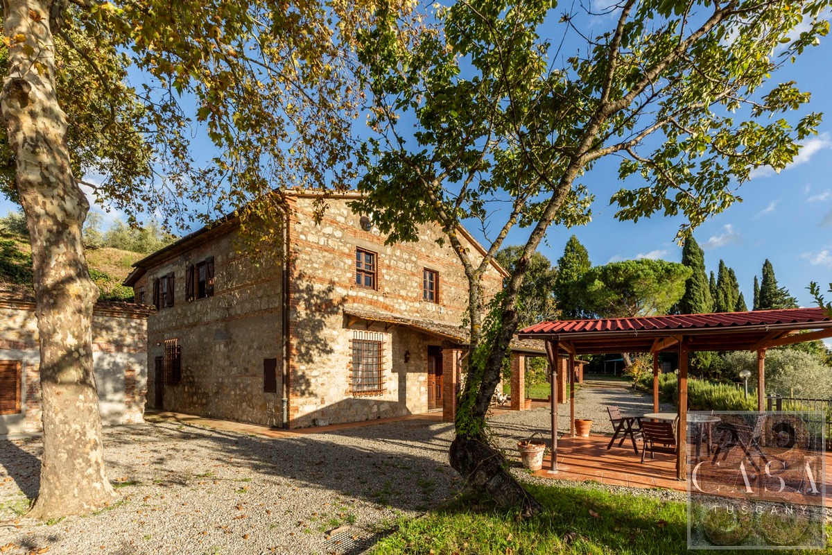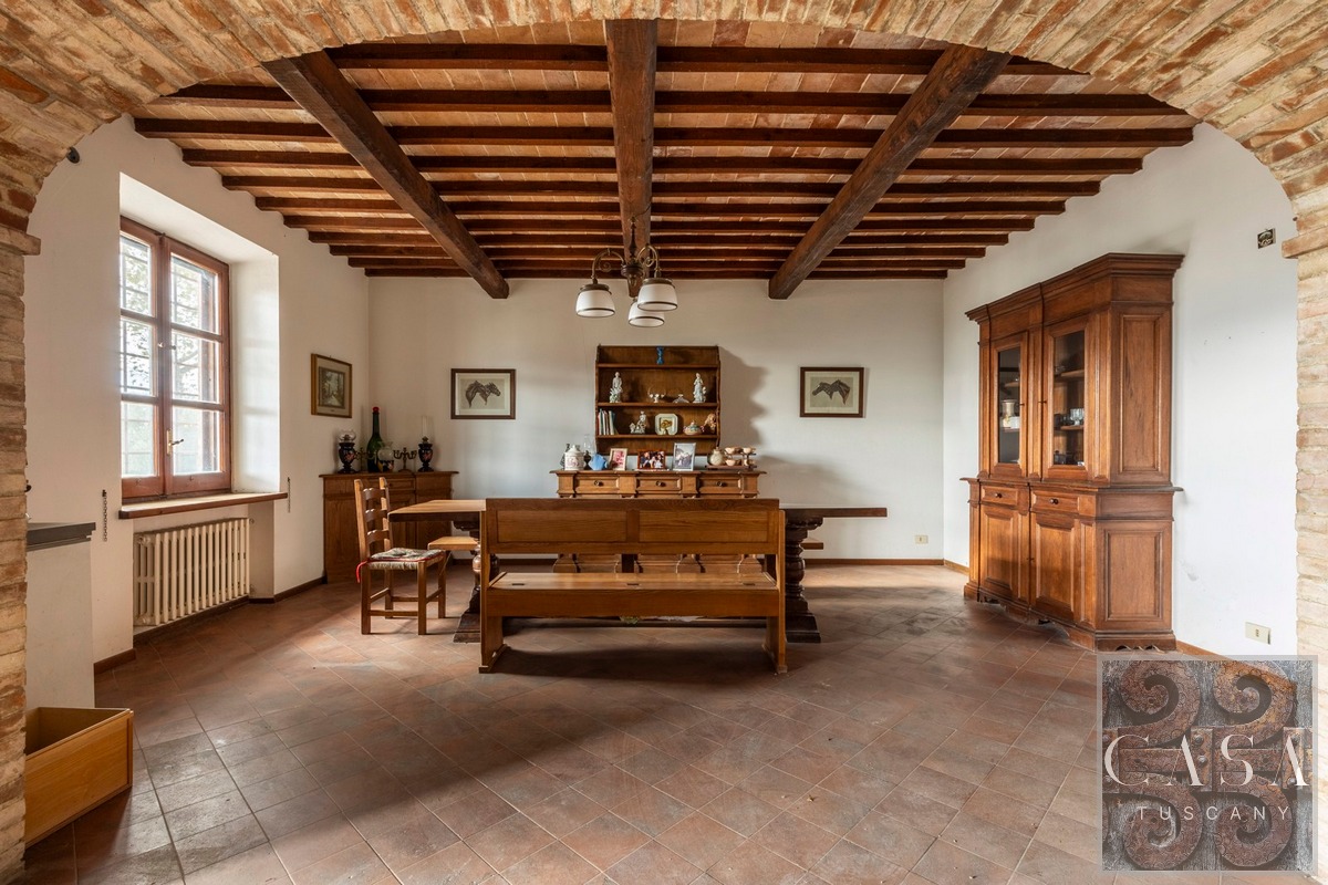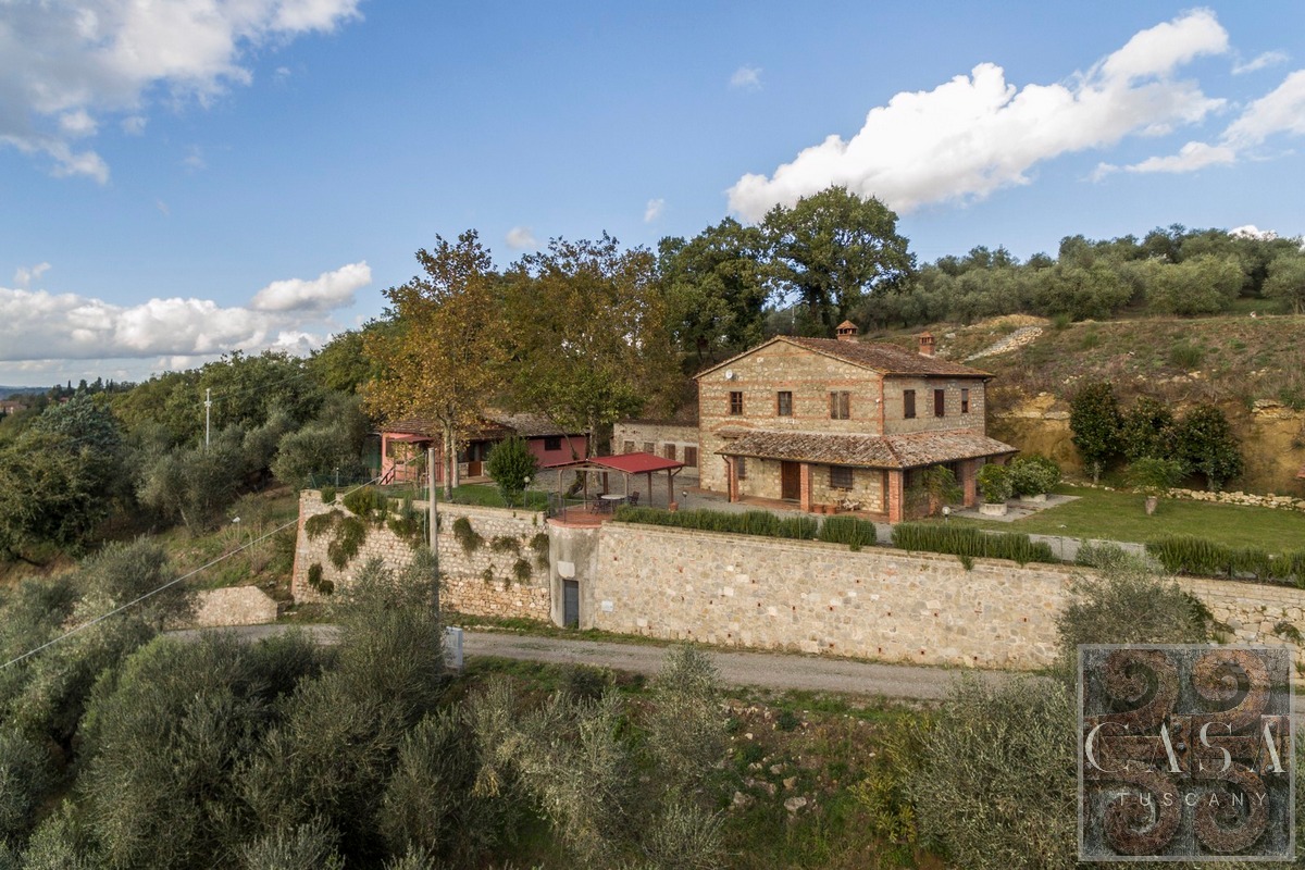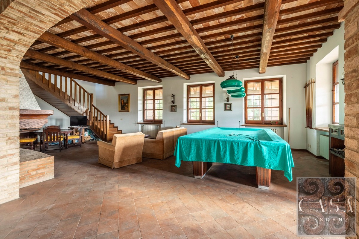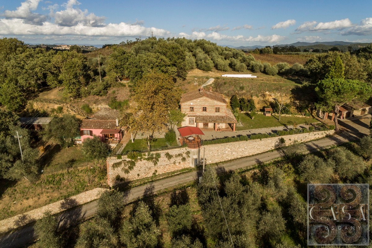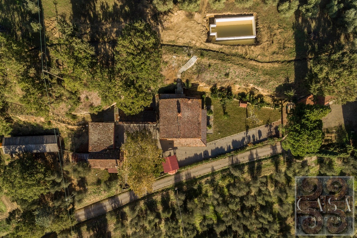 In addition to the large garden that surrounds the main house and the annex, the 5.7 hectares divided between olive grove with about 700 trees, vineyard and woodland are part of the property, as well as the swimming pool under construction positioned at the panoramic point of the property.