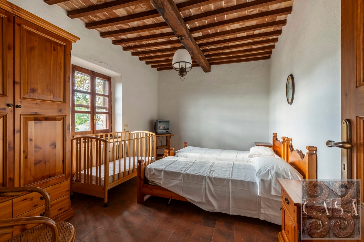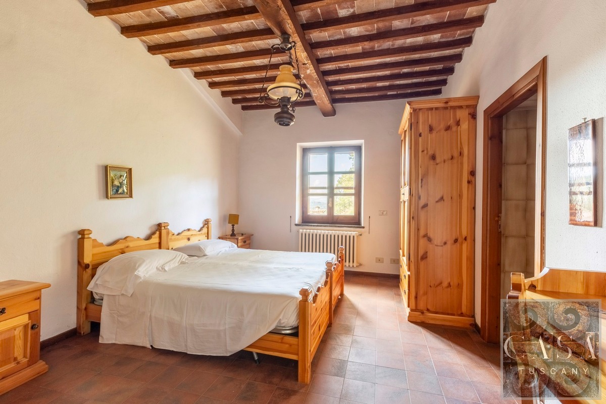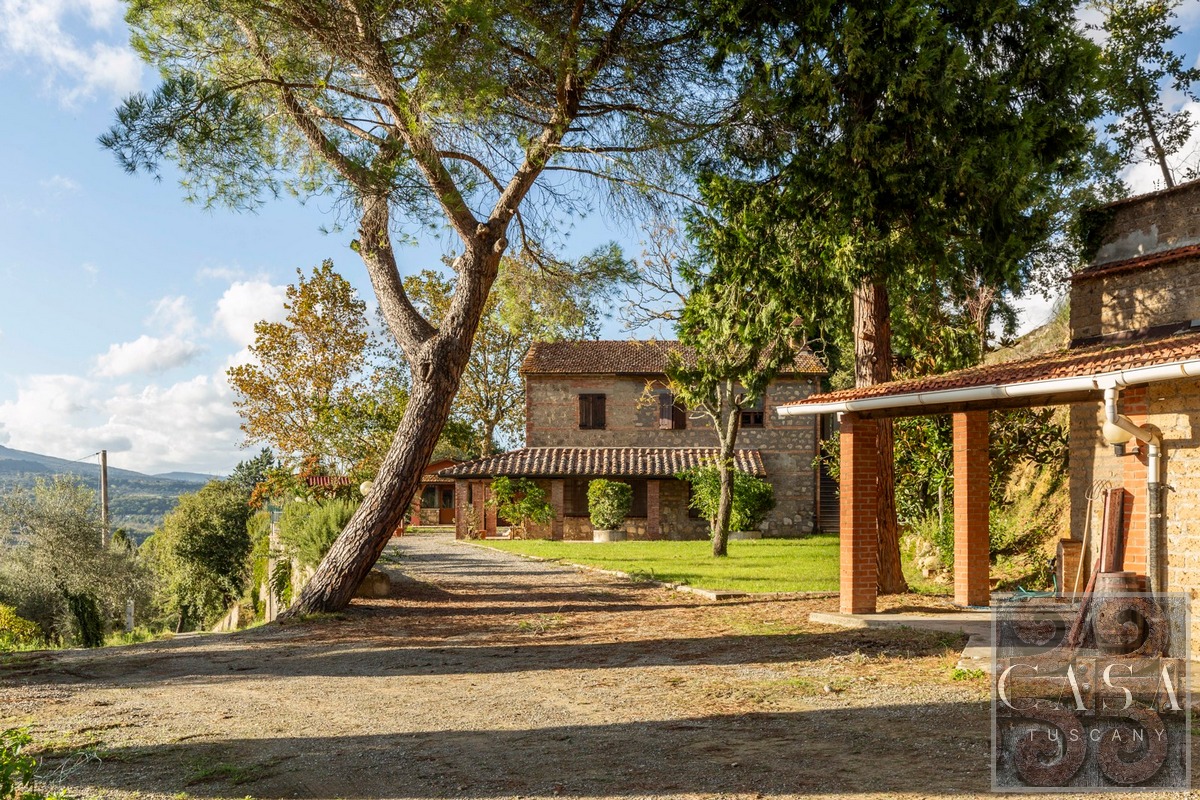 In a beautiful and very scenic location near Cetona, this farm consists of a farmhouse, outbuildings and several agricultural outbuildings, with 5.7 hectares of land including olive grove, vineyard and forest.