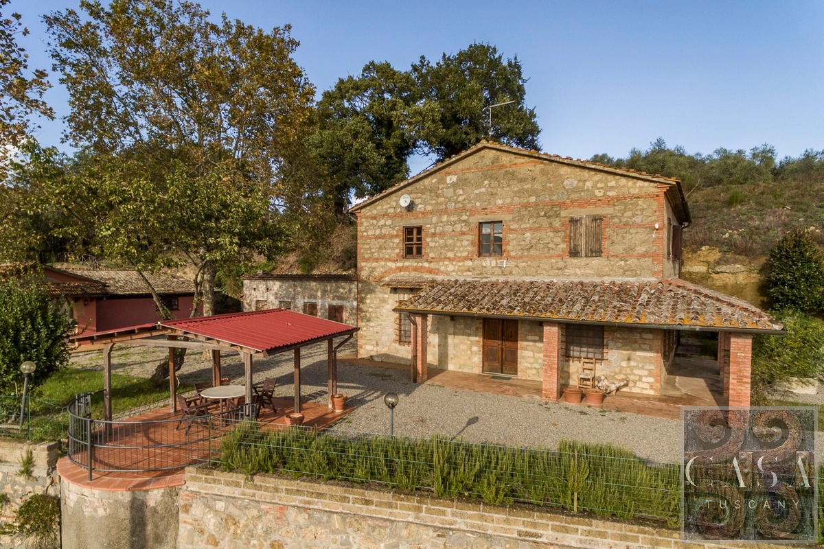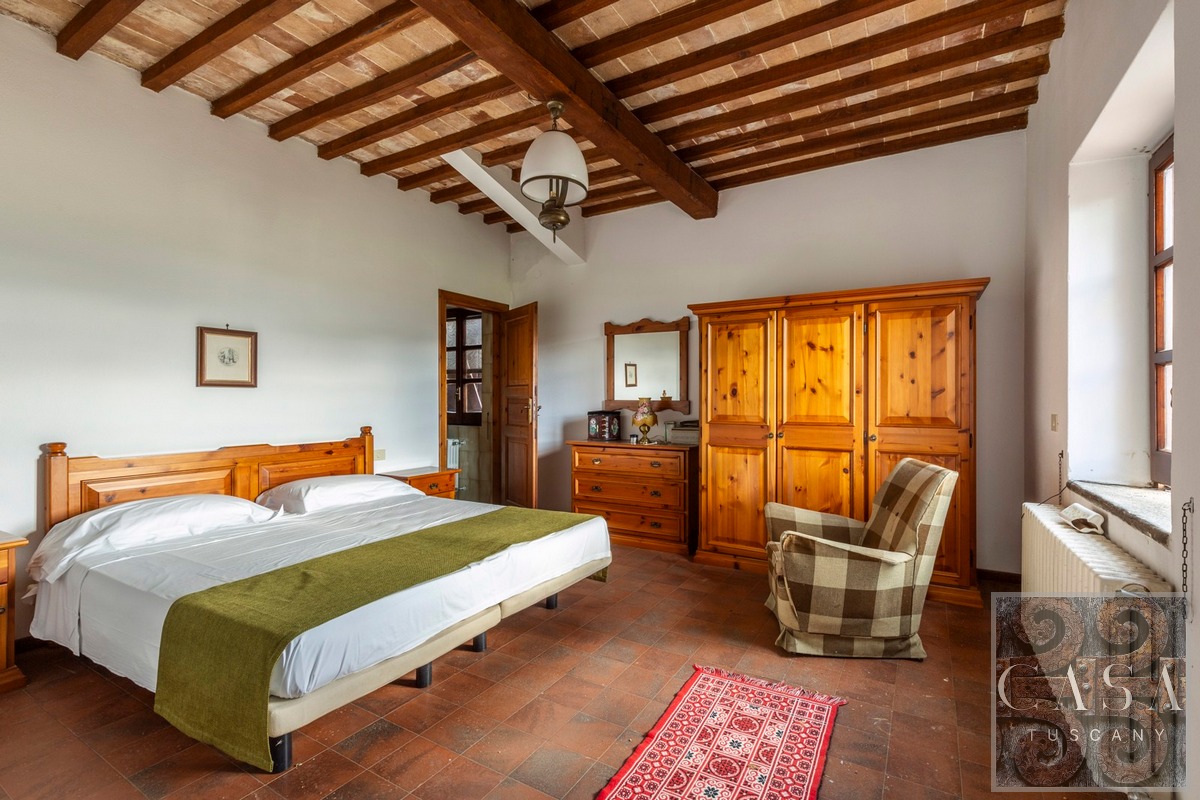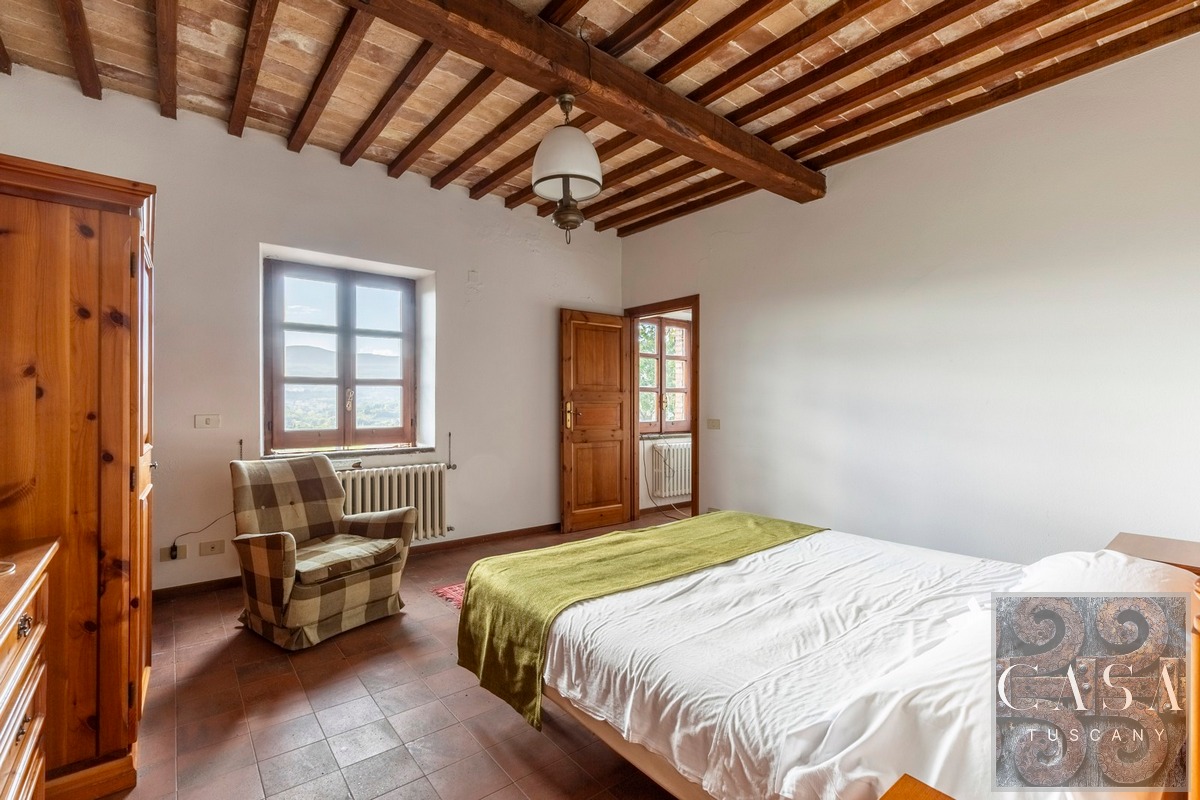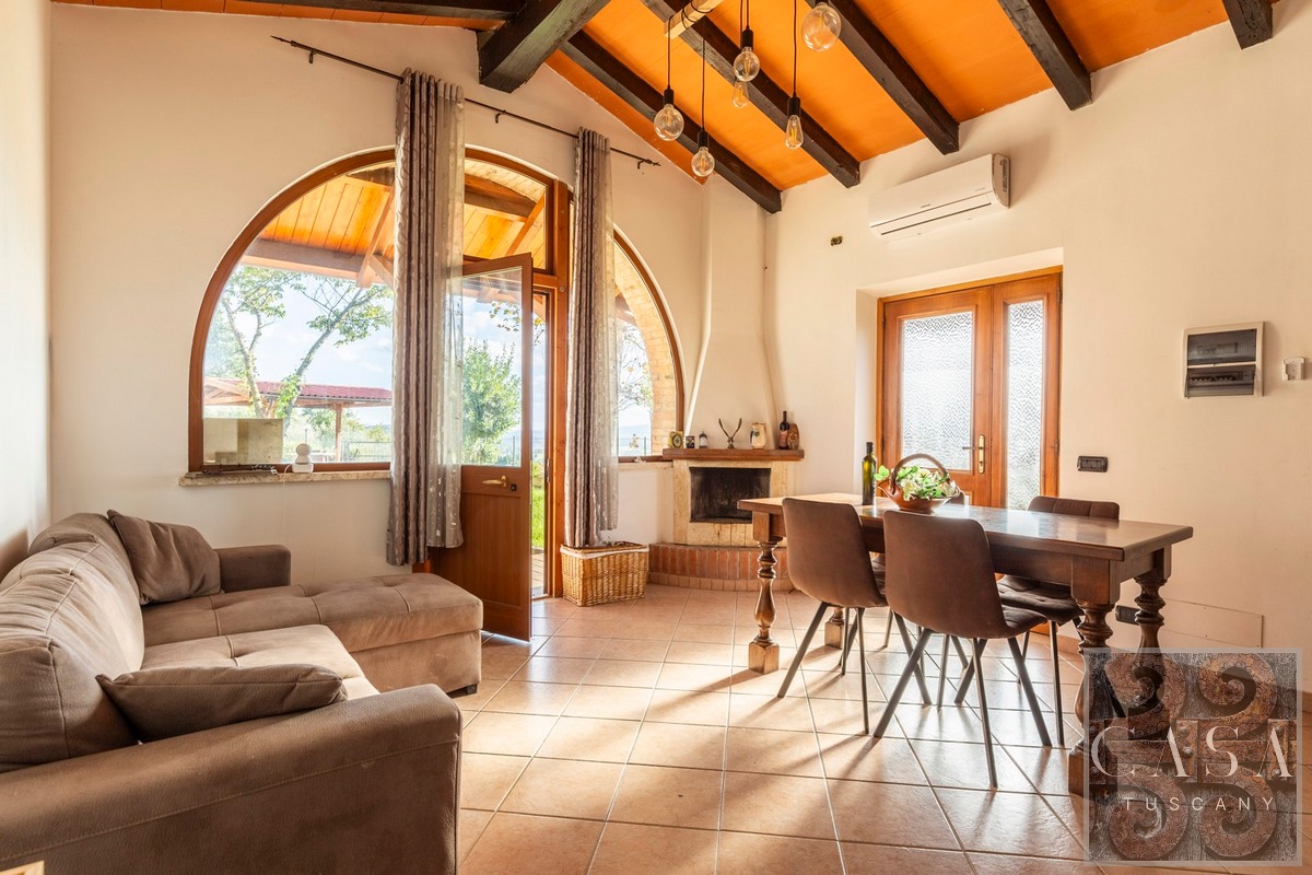 In a beautiful and very scenic location near Cetona, this farm consists of a farmhouse, outbuildings and several agricultural outbuildings, with 5.7 hectares of land including olive grove, vineyard and forest.