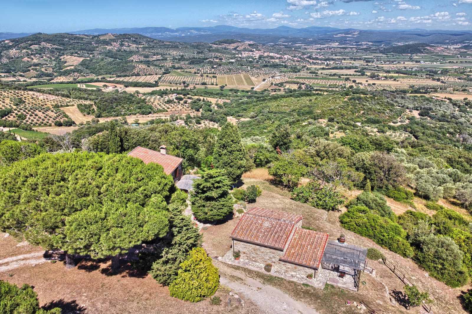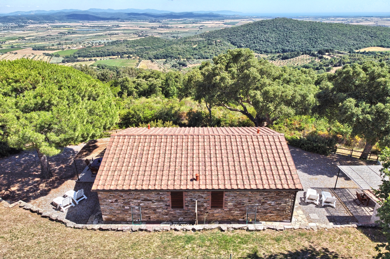 The property is in a fairy-tale location halfway between the two characteristic medieval villages of the Etruscan coast and enjoys panoramic views of the sea of Punta Ala, the island of Elba, the Val di Cornia and the hills of Massa Marittima.