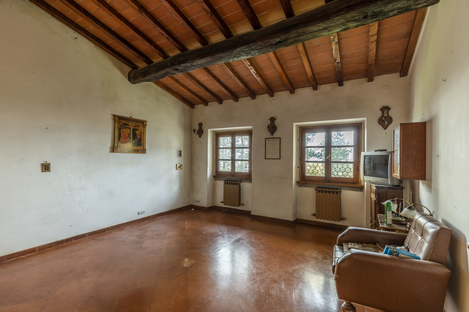 The property needs some renovation. Its style is typical of Tuscan tradition, the exterior of stone and bricks, old terracotta floors, terracotta ceilings and exposed beams, antique wood furniture and exposed stone on some interior walls.