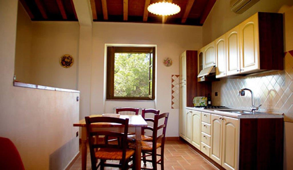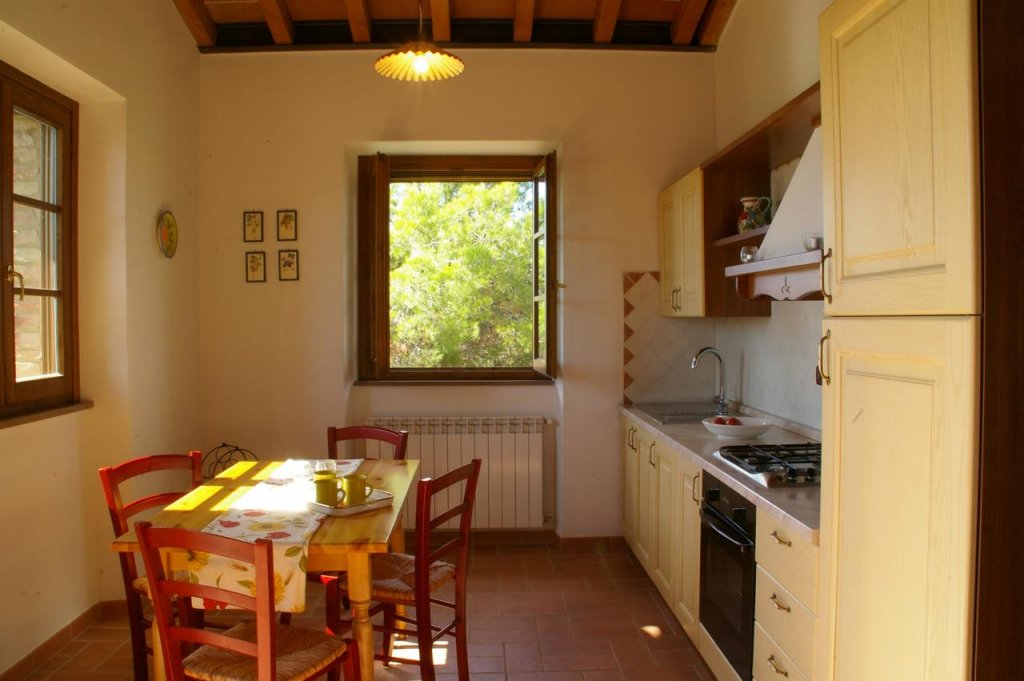 The farmhouse outside has a lovely loggia and an equipment/technical room. Each apartment has an independent boiler for the heating system (mains gas, which is rare in the countryside), and they all have fully equipped kitchens, beautiful terracotta floors, and all modern conveniences.