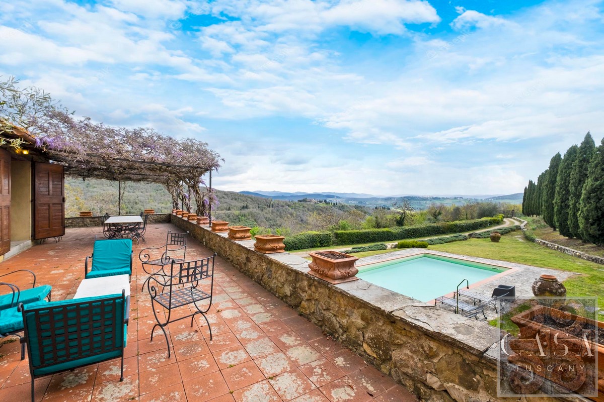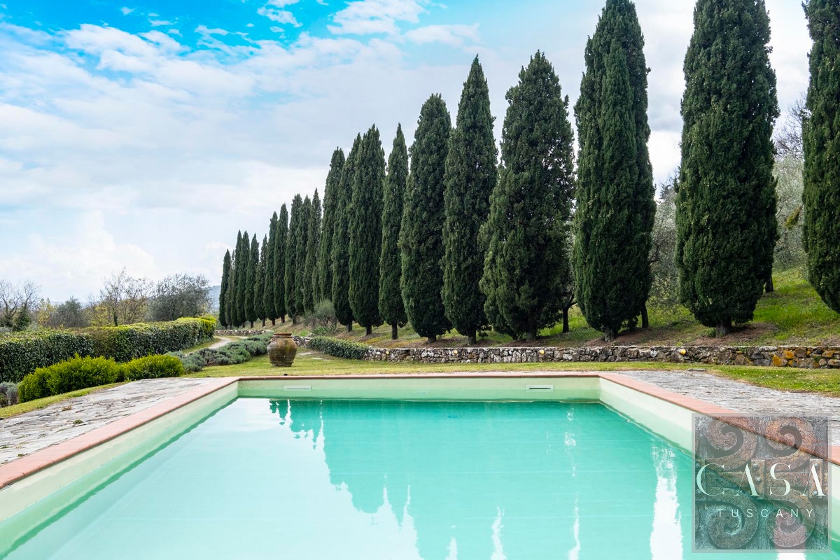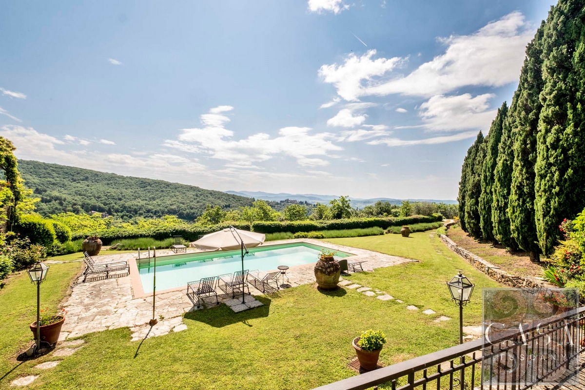 Near Panzano and Radda in Chianti and set high in the hills, this 16th century villa built by the Ricasoli family, enjoys a wonderful position in the peaceful Tuscan countryside.