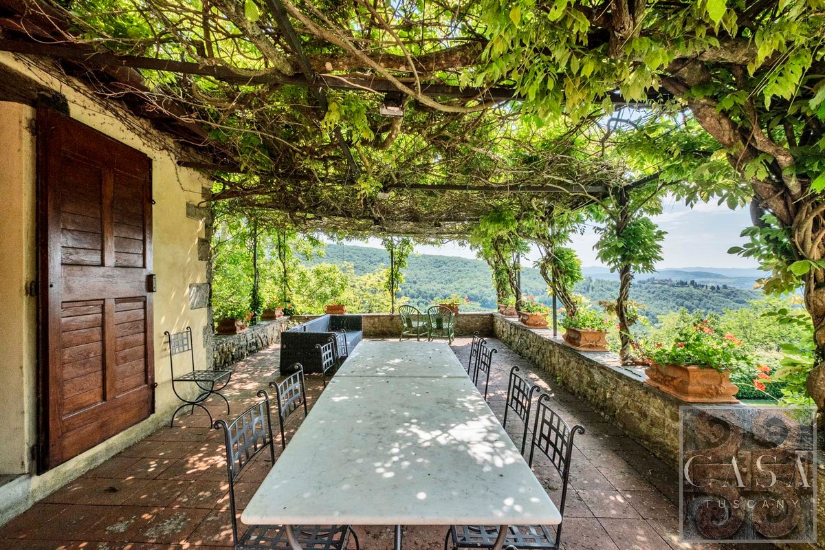 The property of approximately 850 sqm is accessed by a gravel road of about 6 km from the town of Panzano and 9 km from Radda, through vineyards and woods with cows and goats grazing along the way.
