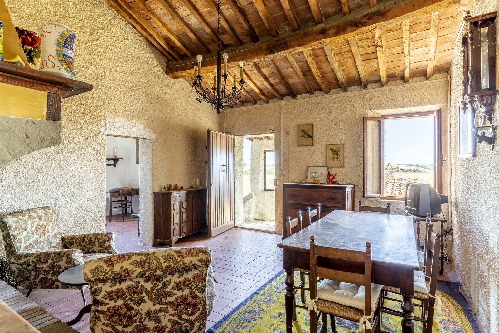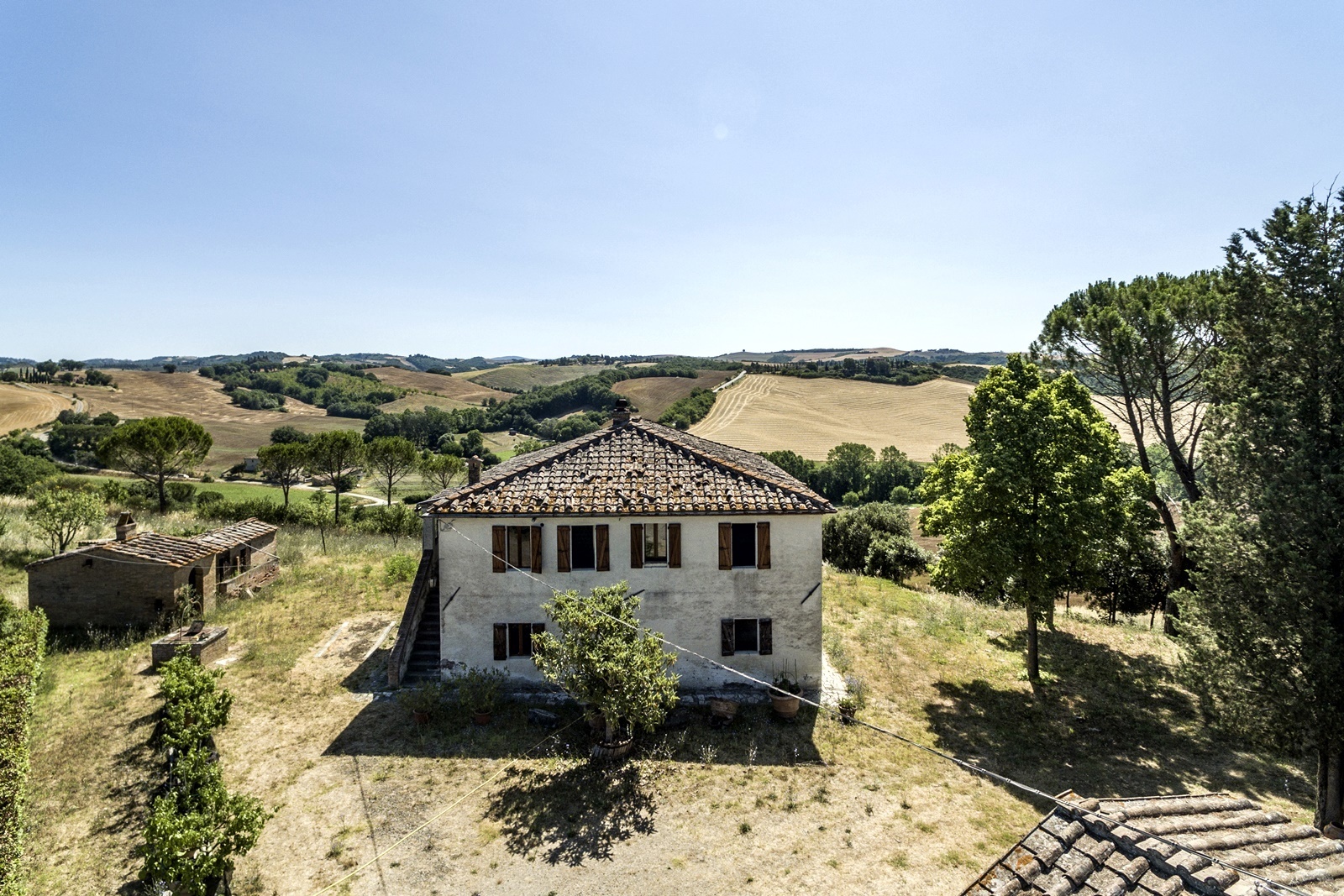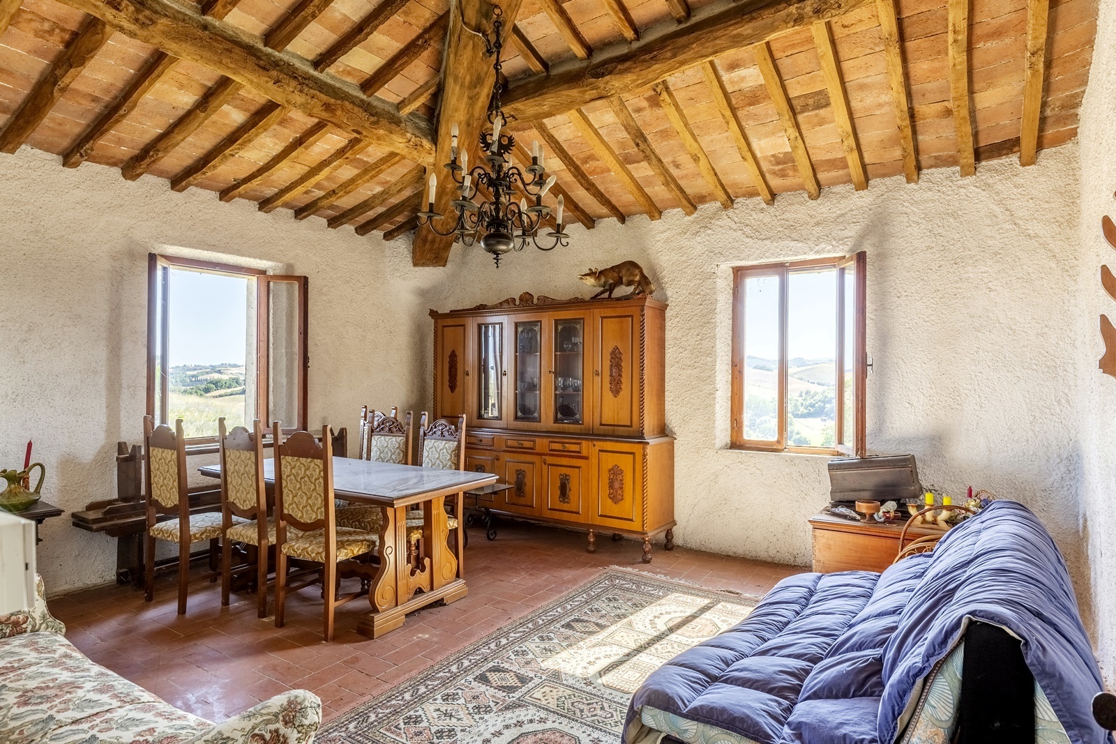 Farmhouse dating back to the early 1900s. A few minutes from Buonconvento town centre, it has a 360° view over the valley of Siena. It is a breath-taking place not far from amenities and main roads. The main building has a living area of about 140 sqm, besides 200 sqm of other volumes.