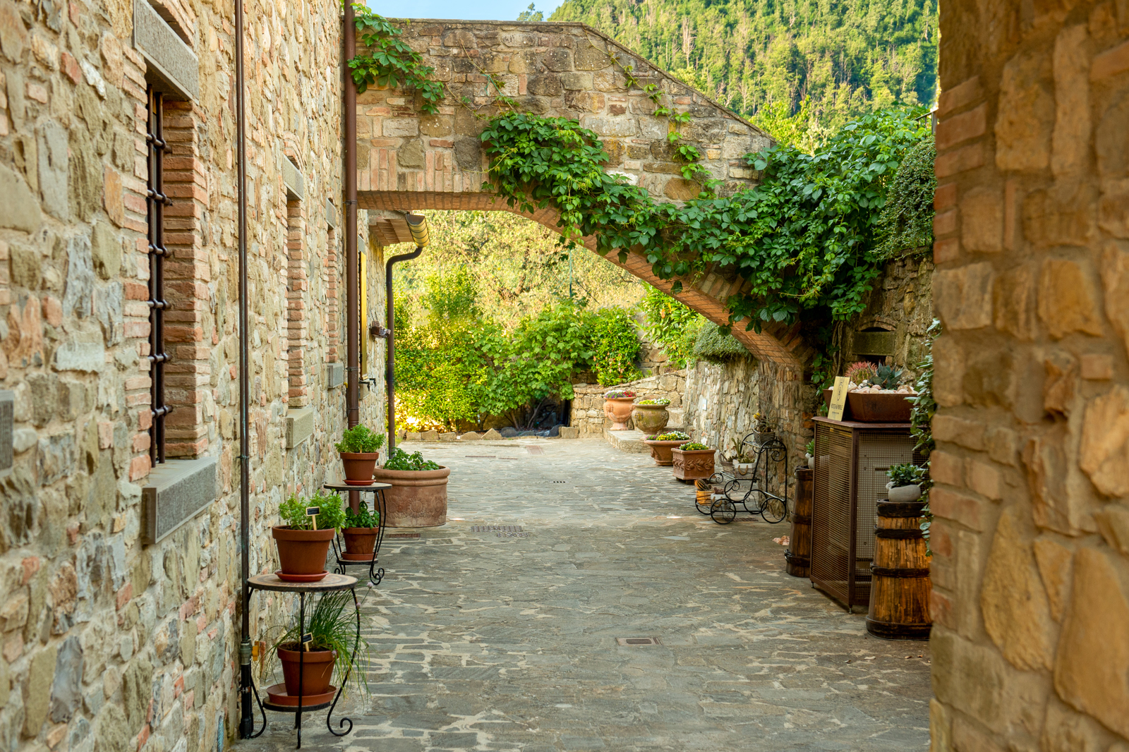 Located in an ancient hamlet among the greenest hills of Cortona, close to the Apennines and the lake area of Umbria, this historic property enjoys a quiet and secluded location, just a few minutes from the small towns of the area useful for daily services. The center of Cortona is about a 20-minute drive away as are other quaint towns such as Passignano sul Trasimeno, Magione and Umbertide. The small village enjoys a bus line stop while always 20/25 minutes away are road connections to the cities of Arezzo, Perugia, Siena and Florence, as well as the train station with direct connections to Rome and Florence.