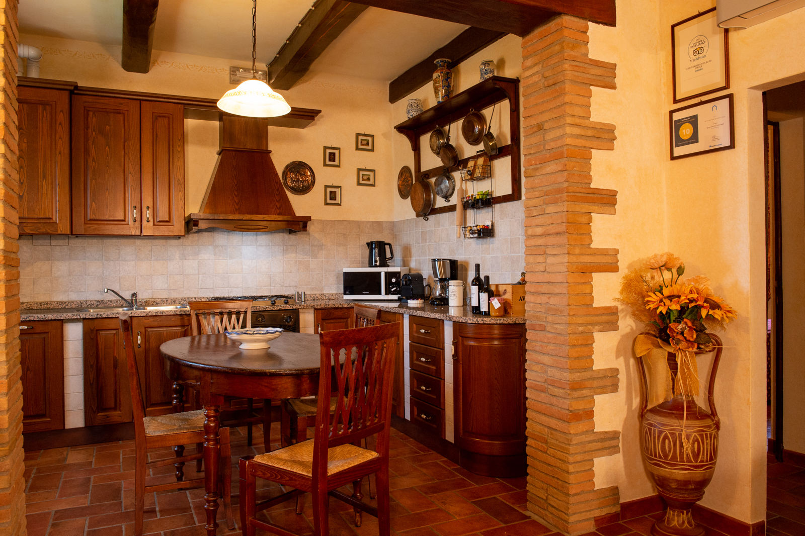 Outside, the farmhouse enjoys a brand new, extremely well-equipped and covered kitchen with wooden veranda, all of very recent construction, offering dining possibilities with unique views of the valley.
