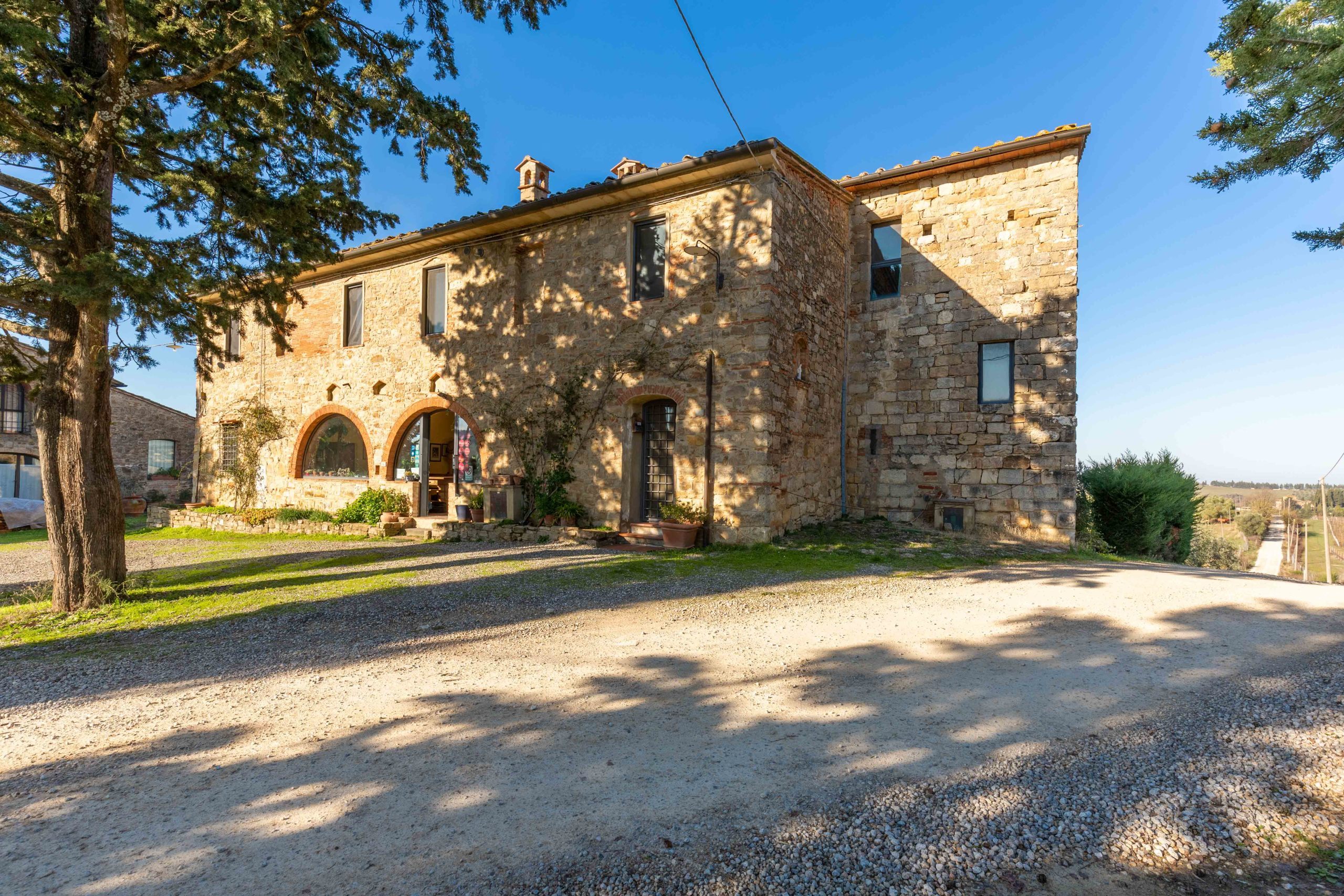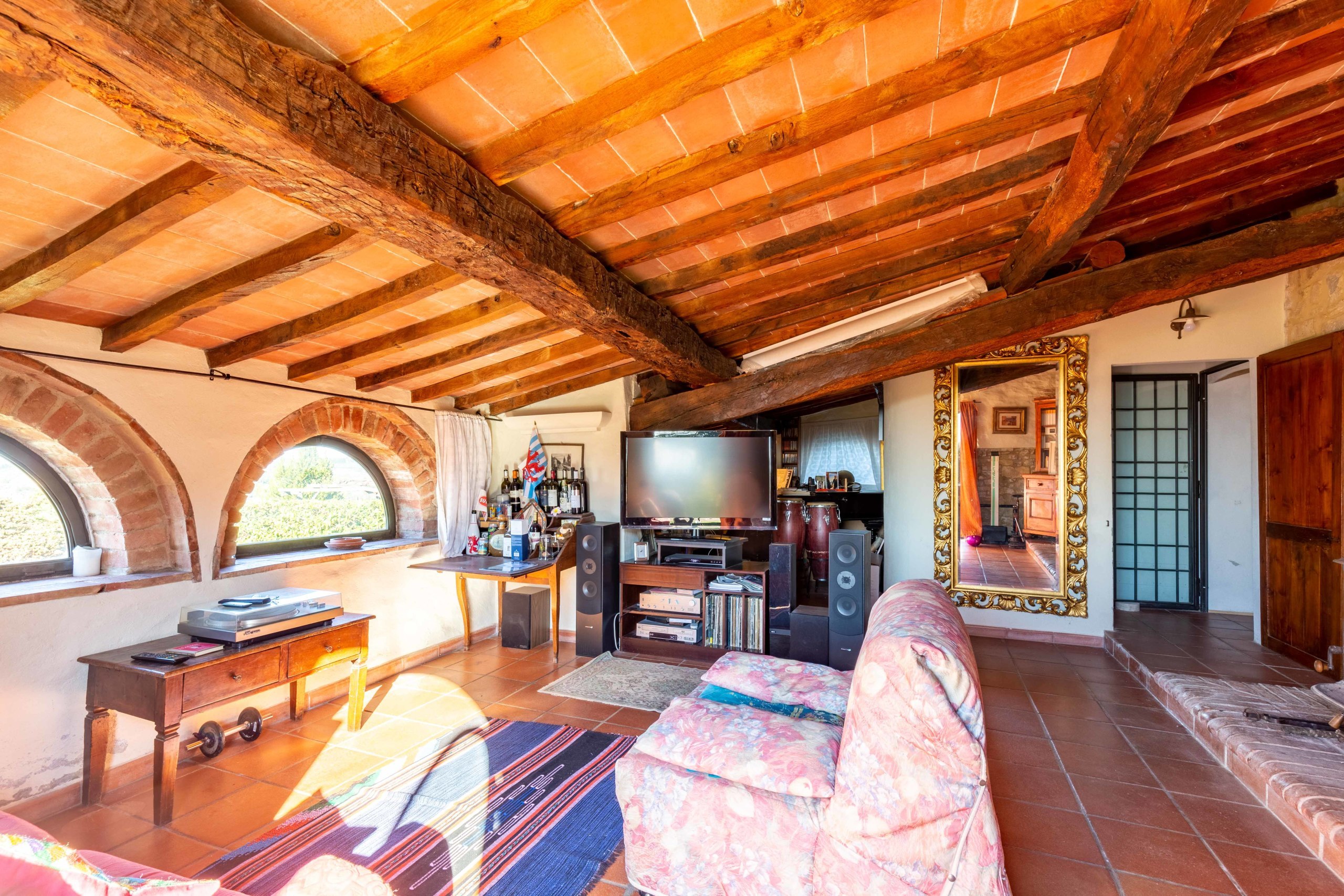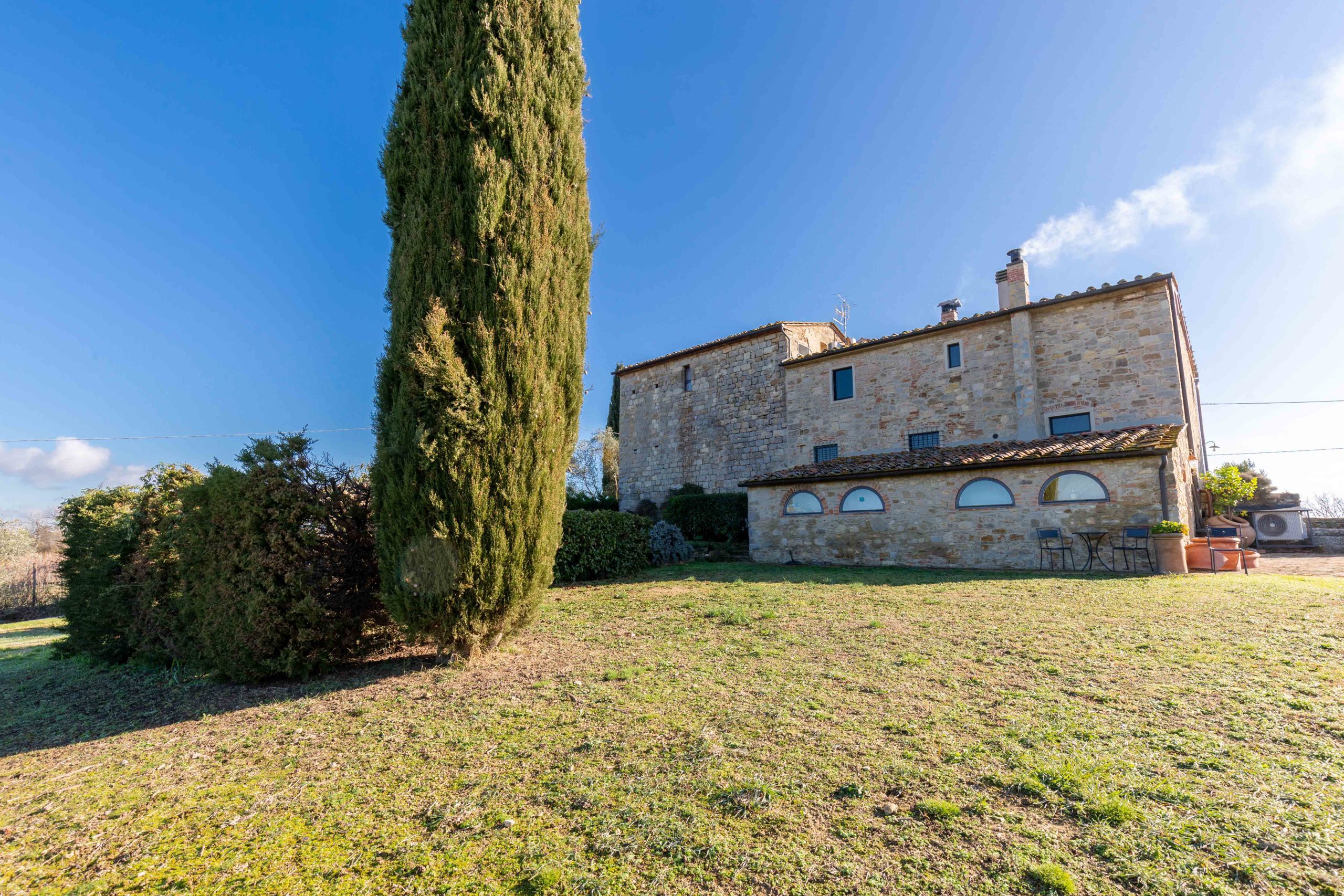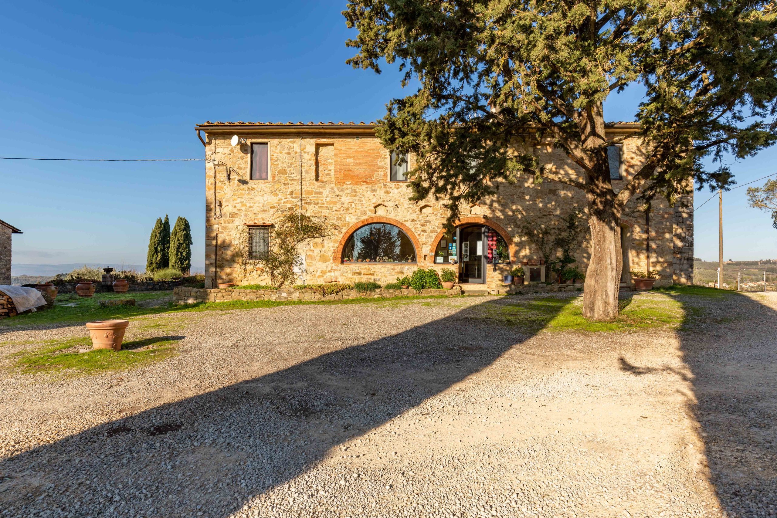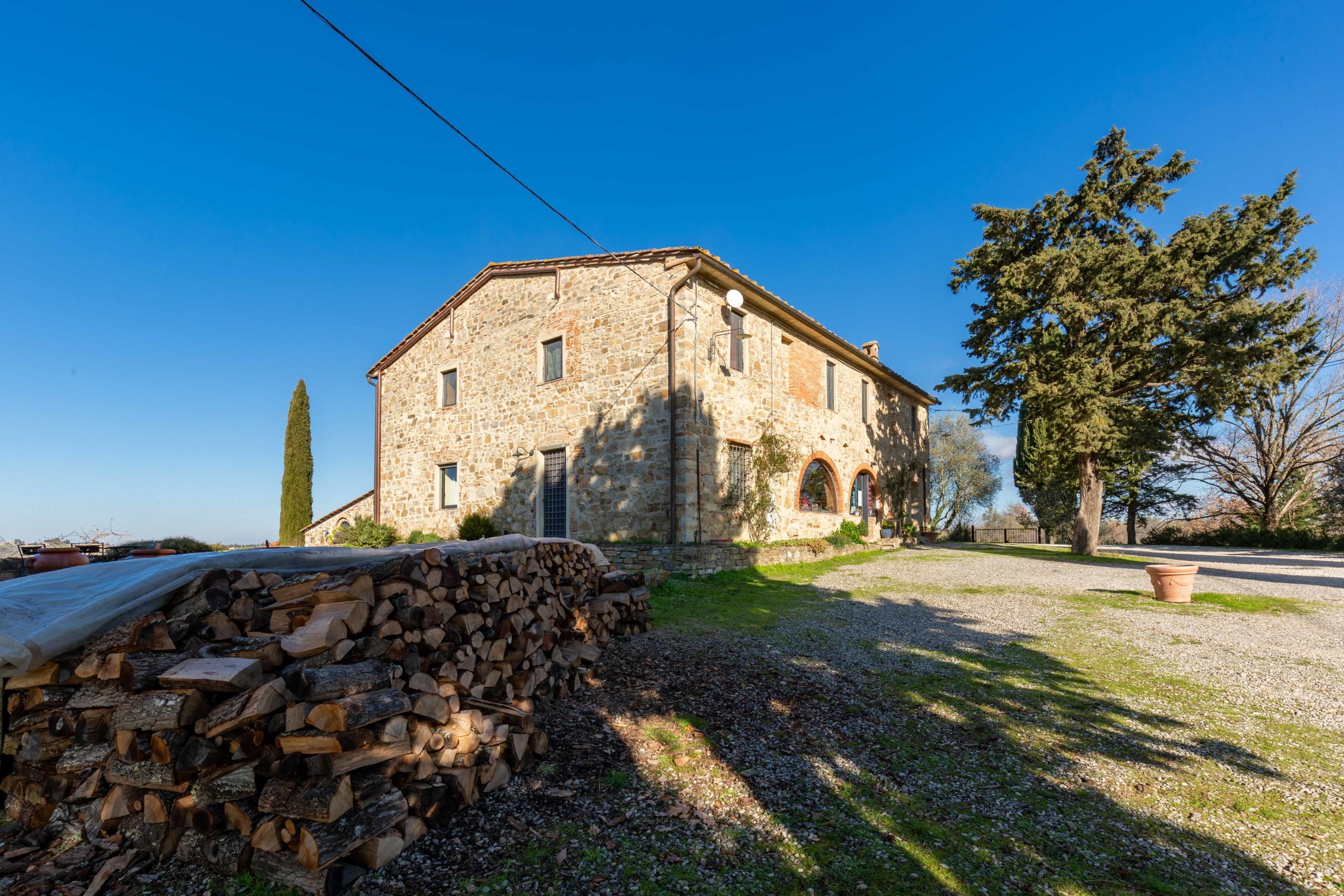 In a context of rolling hills planted with olive trees and vines, in a dominant position, this beautiful stone farmhouse of about 500 square metres has an ancient tower of Lombard origin, and is surrounded by private land of about 9000 square metres of land with olives which produce an excellent Tuscan oil.