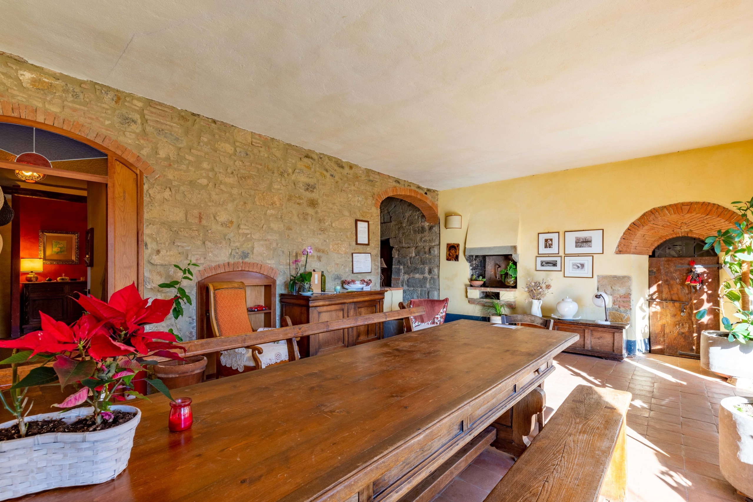 The house is typically Tuscan, with stone, wooden beams, old terracotta, and the restoration was carried out with care and passion. The fireplaces are original, as are the wooden doors and the stone access portals to the many rooms.