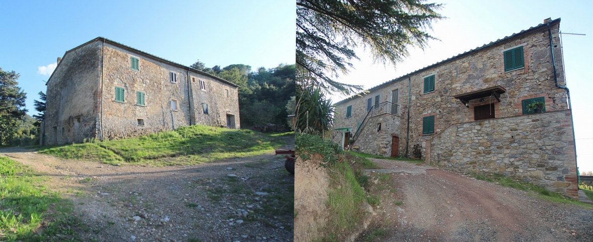 In the heart of Tuscany,  near the small village of Micciano, in the Pomarance municipality, about 470 metres above sea level, a huge farmhouse with several outbuildings and 40 hectares of land.