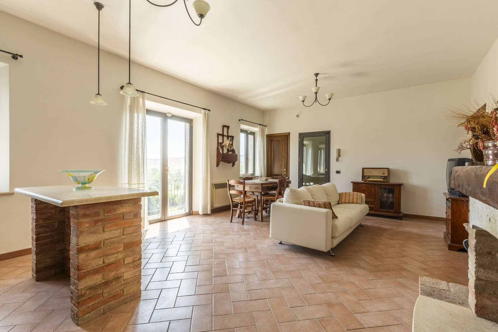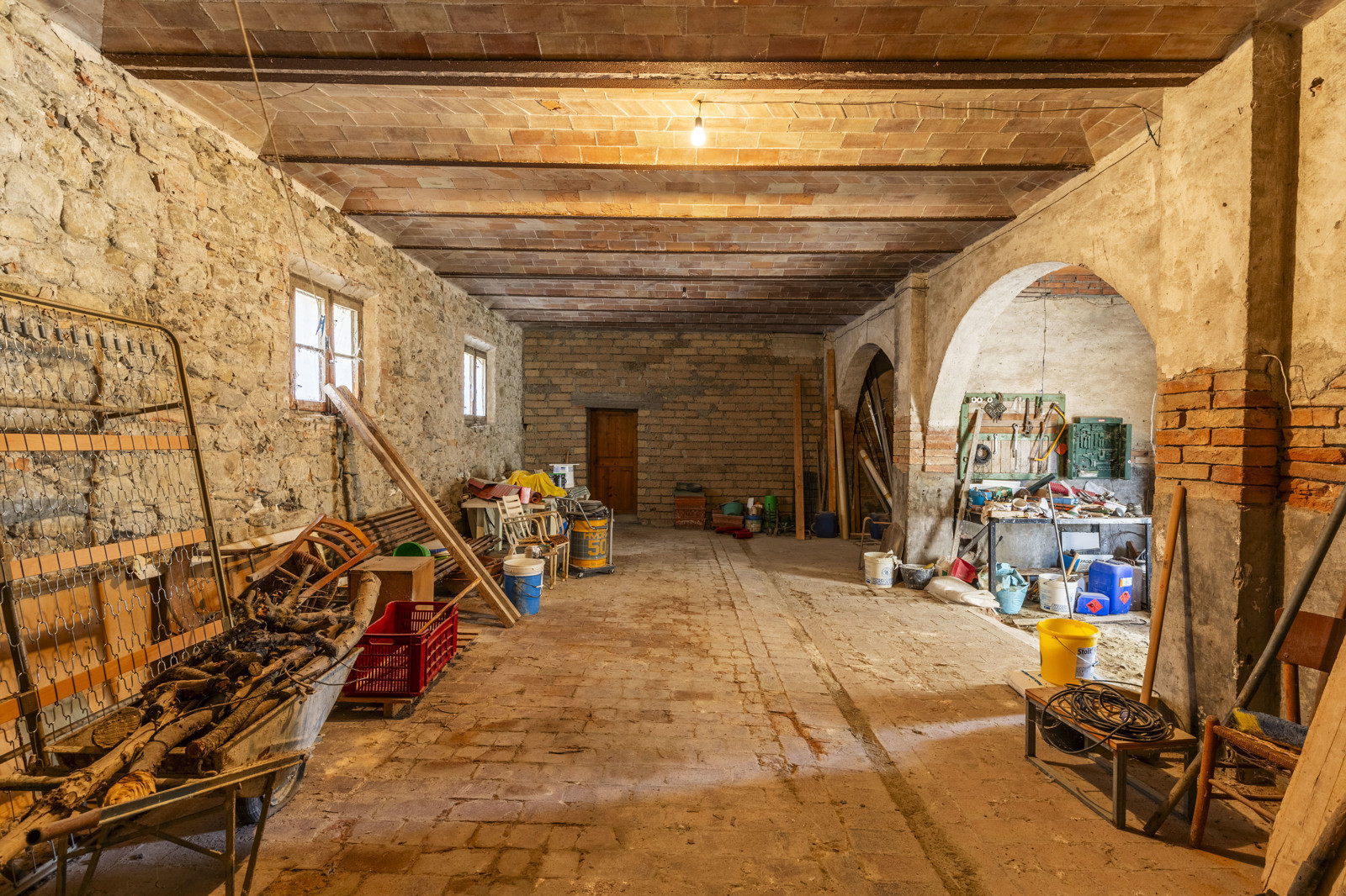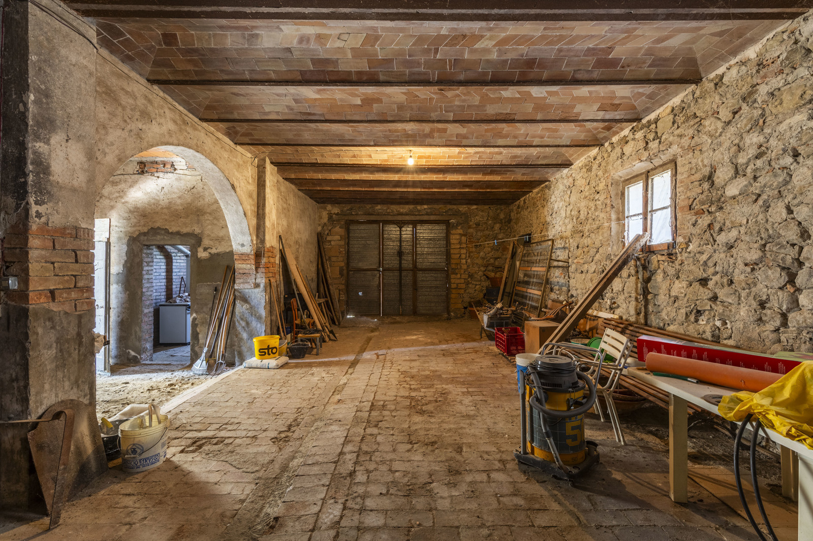 The rooms on the ground floor have excellent original materials such as old terracotta for the floors and brick vaults.