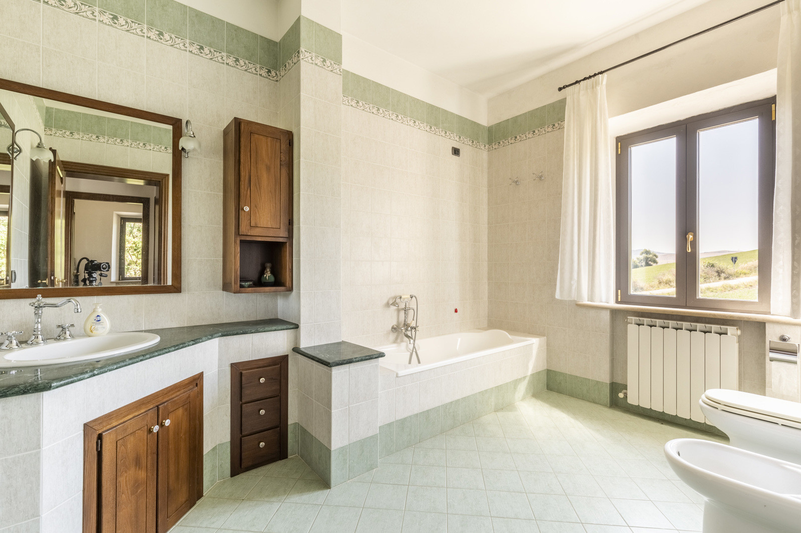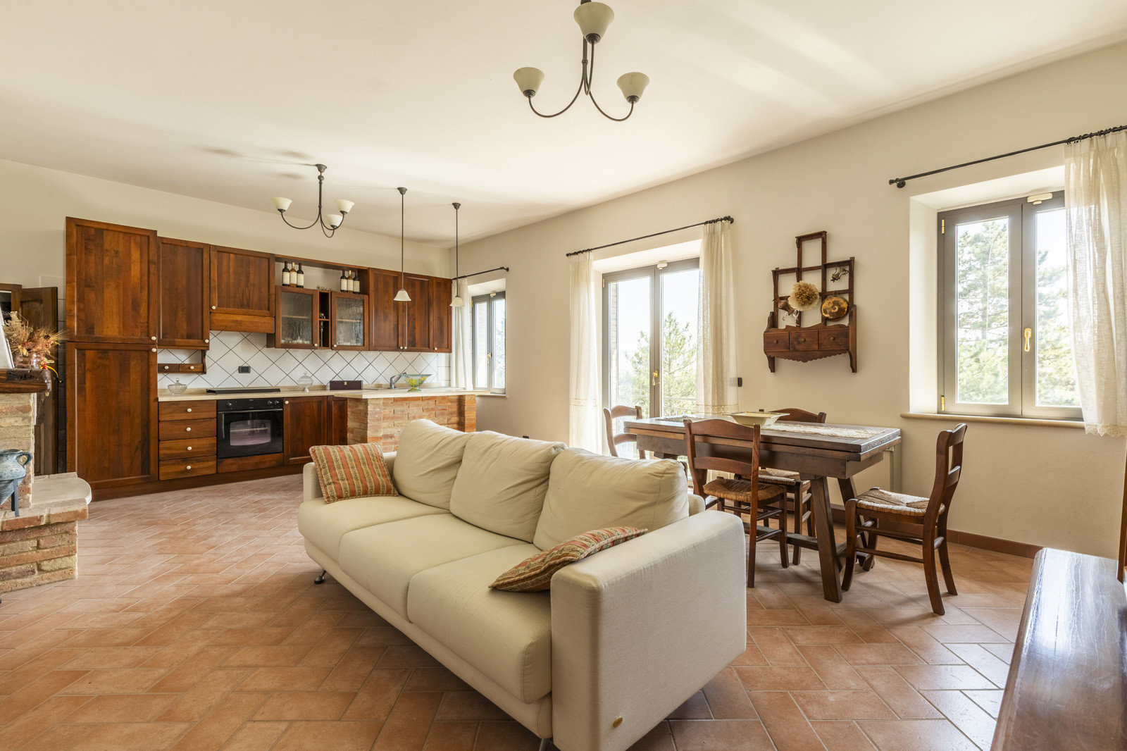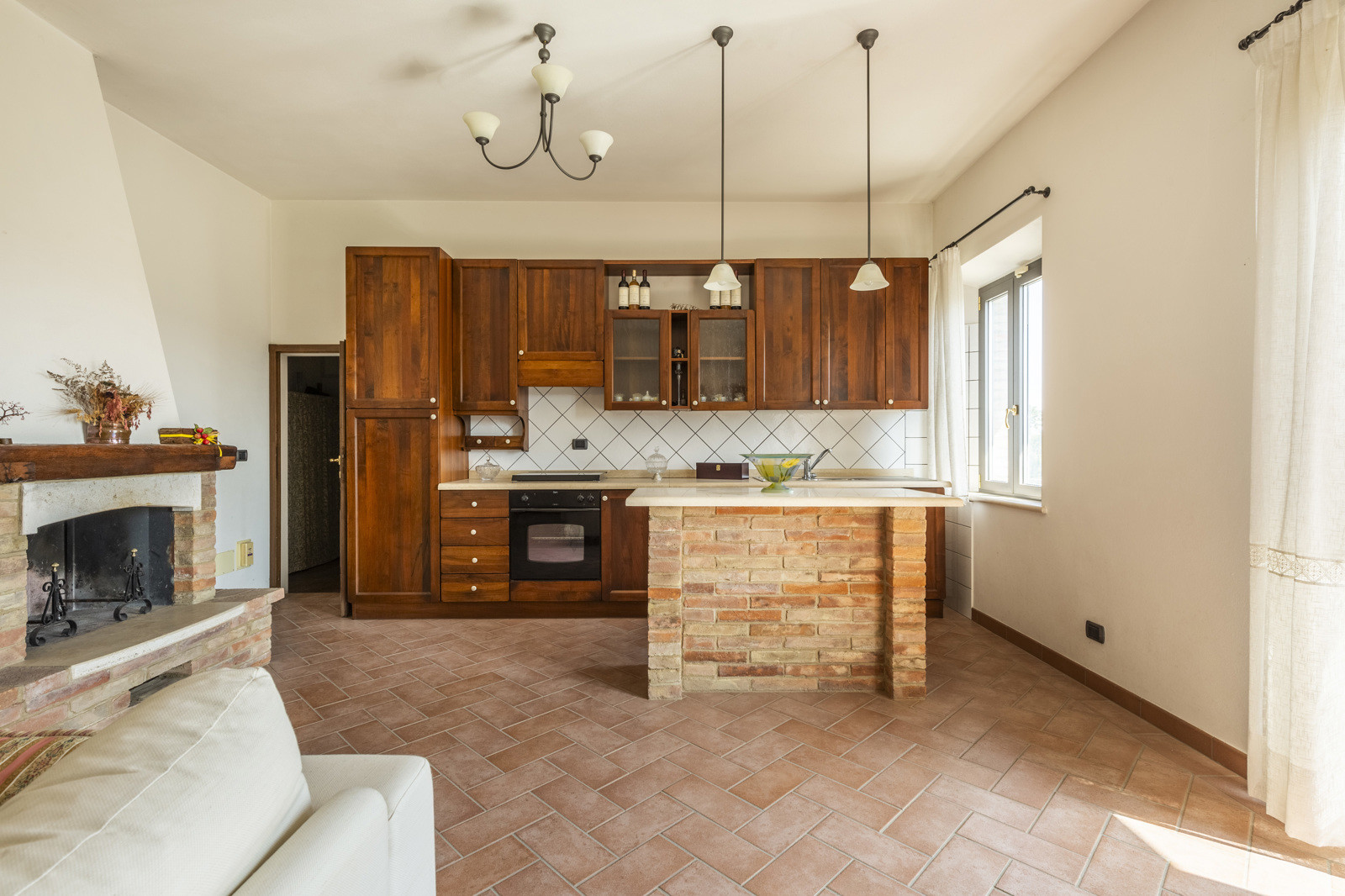 The rooms on the ground floor have excellent original materials such as old terracotta for the floors and brick vaults.