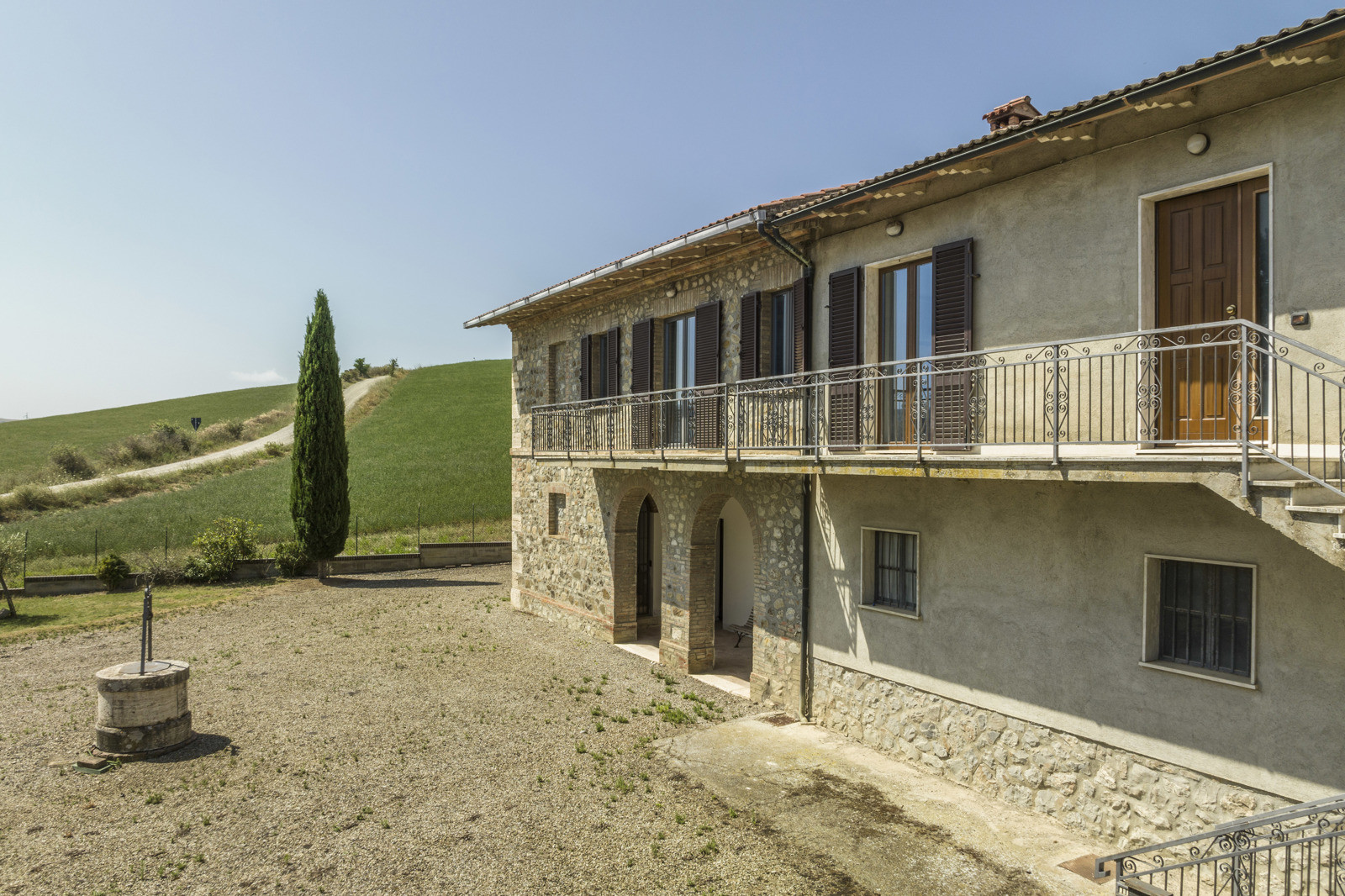 The farmhouse is located in a hilly and very panoramic area, near the ancient Via Francigena. The property has undergone several renovations over the years.