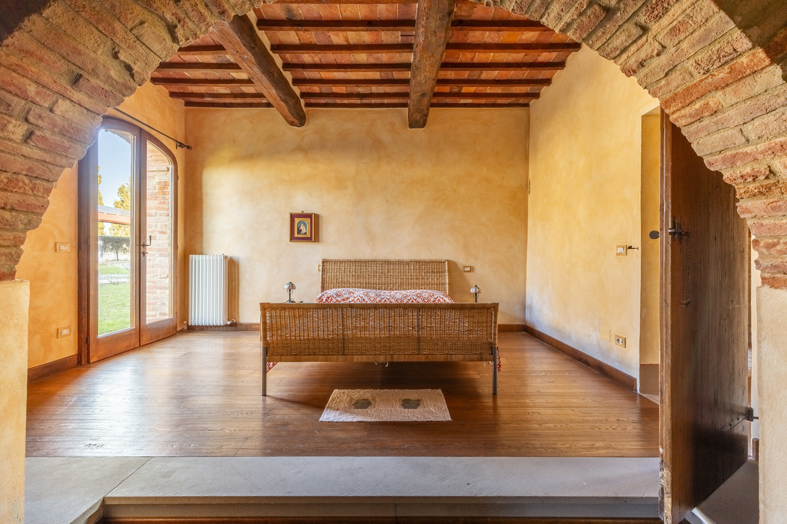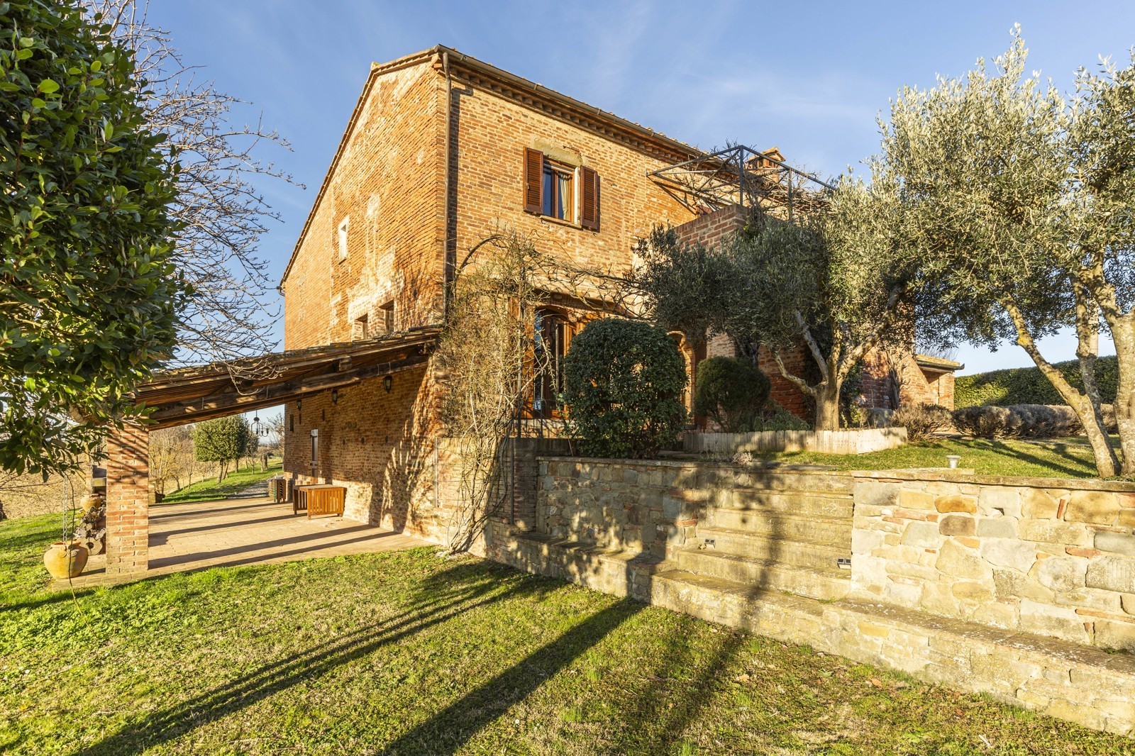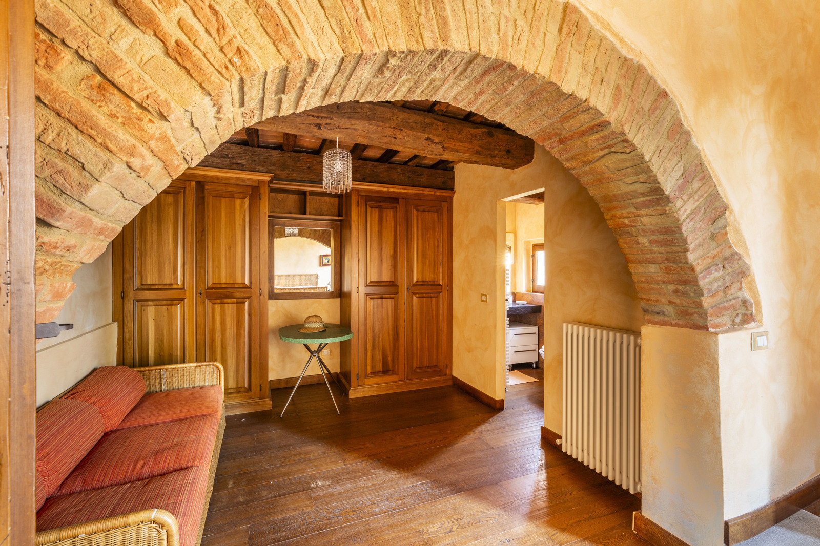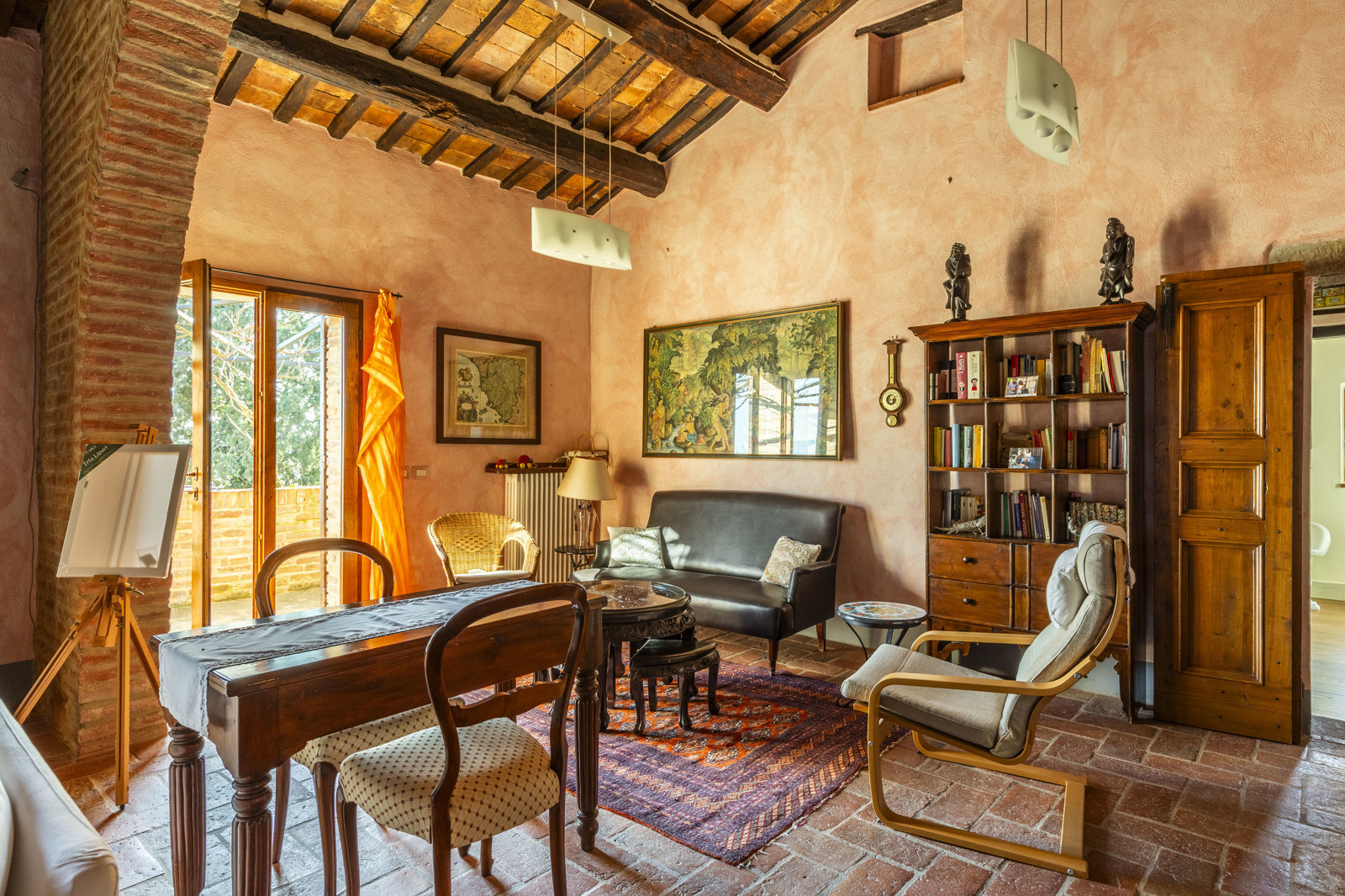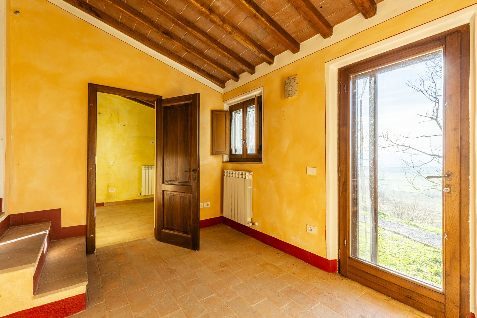 The property is in excellent condition, renovated about 15 years ago. It has valuable original materials such as antique terracotta for the floors (parquet in the sleeping area), exposed wooden beams with terracotta tiles for the ceilings. The exterior is in stone and red brick.