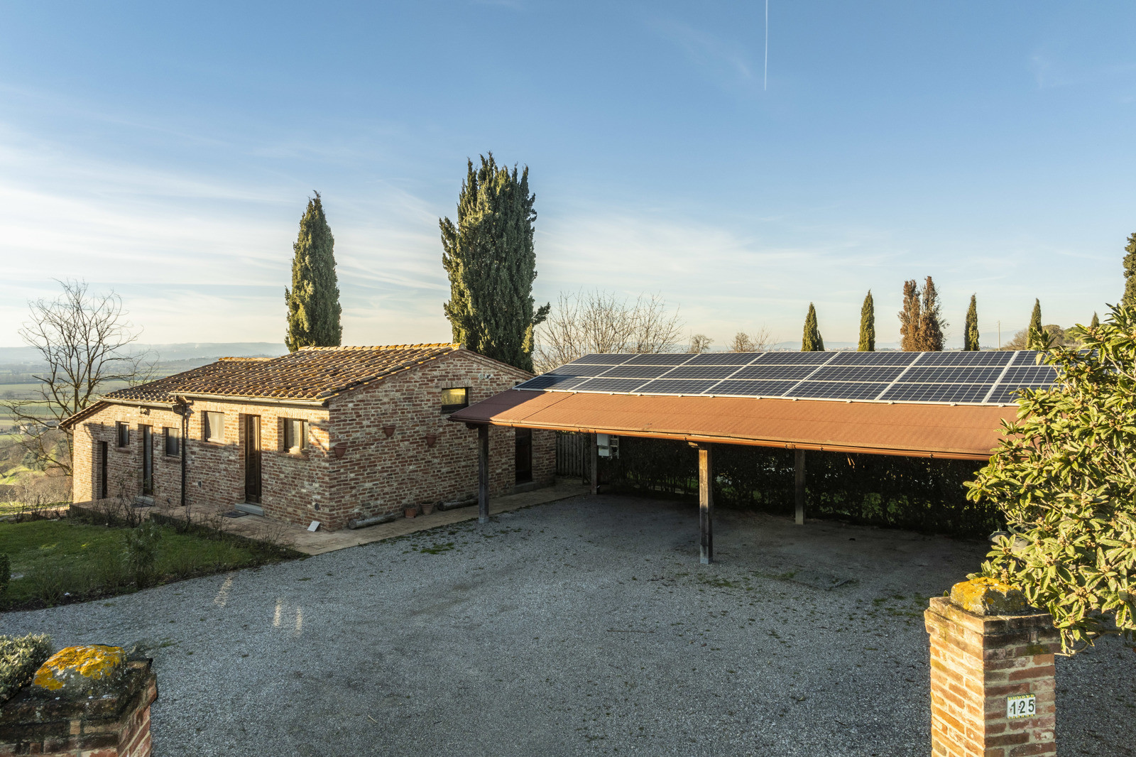 Outside the property has a garden of over 5000 sqm with fruit trees and olive trees surrounding the two buildings. There is also a shed equipped with photovoltaic panels that has 3 parking spaces. In the garden you also have a beautiful swimming pool.