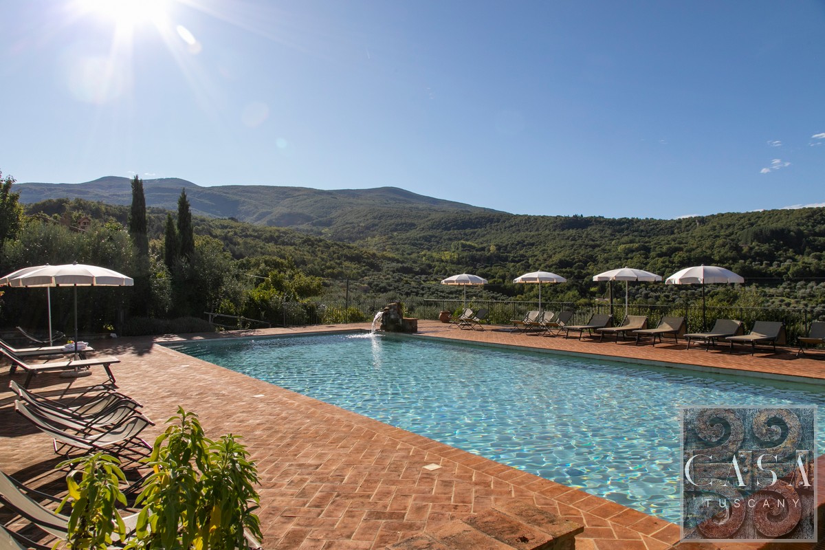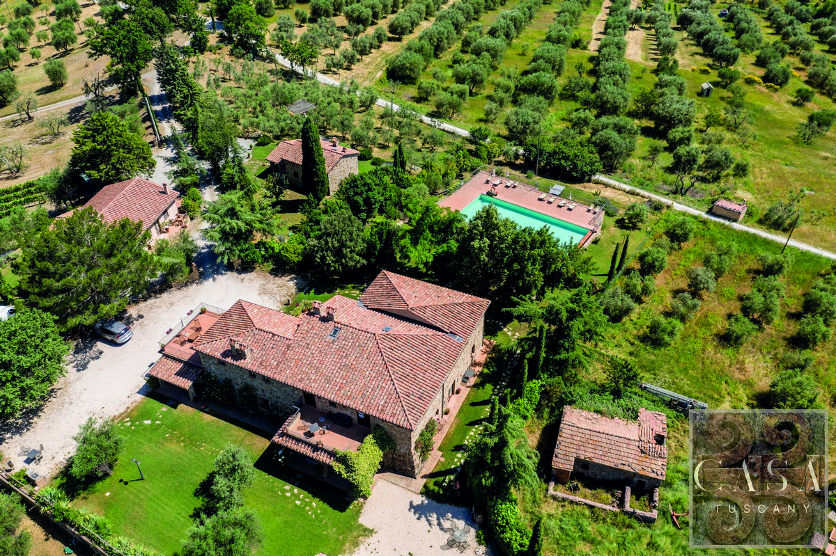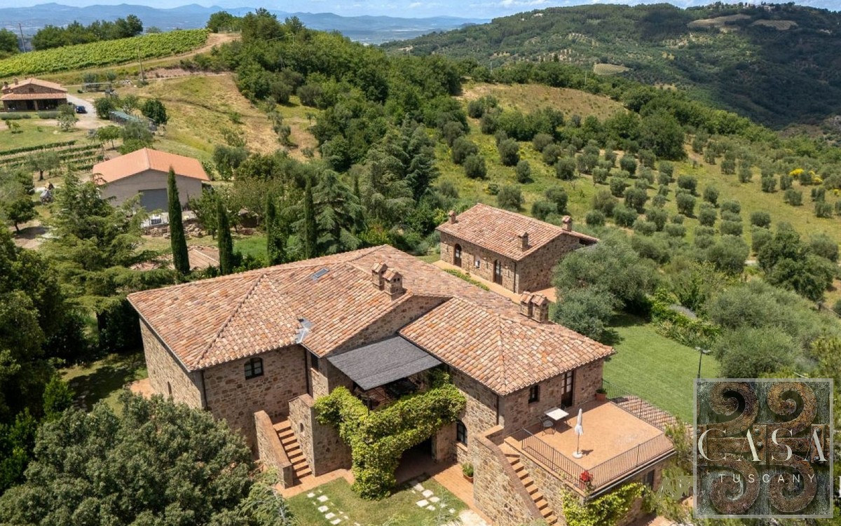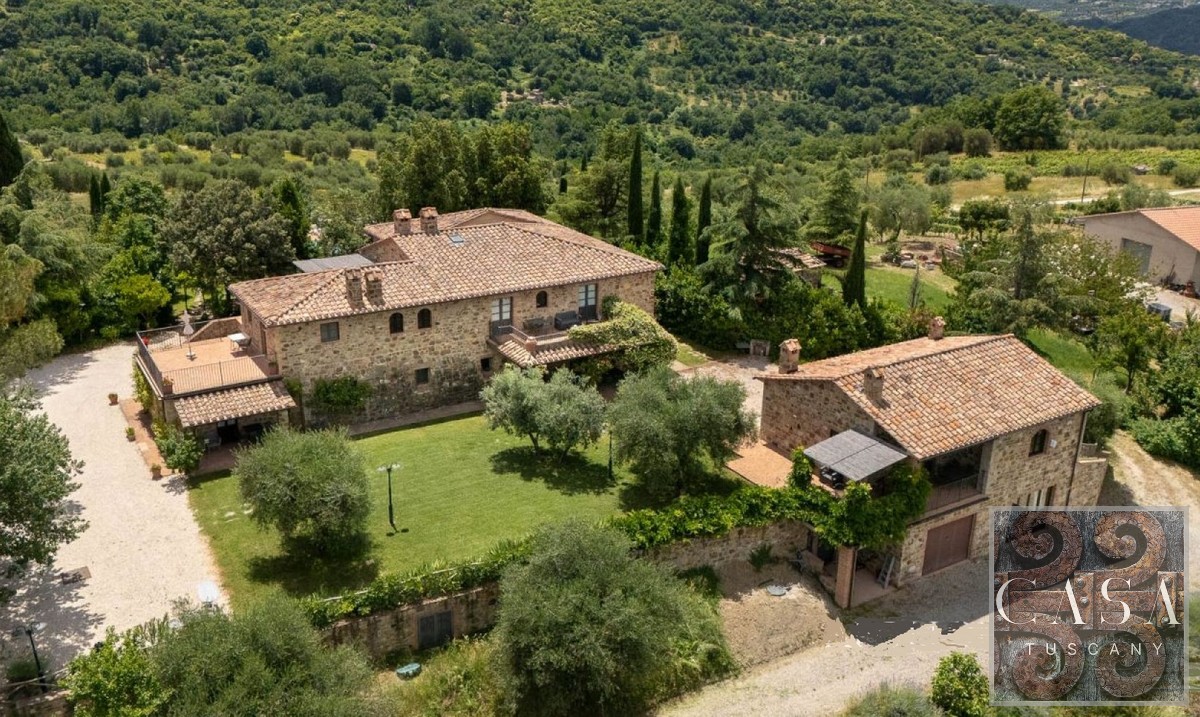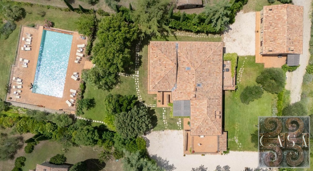 Set in a splendid hillside position 490 m above sea level, overlooking the winding Orcia River below, the property lies just 15 minutes by car from Castiglion d’Orcia, Bagno Vignoni and Montalcino.