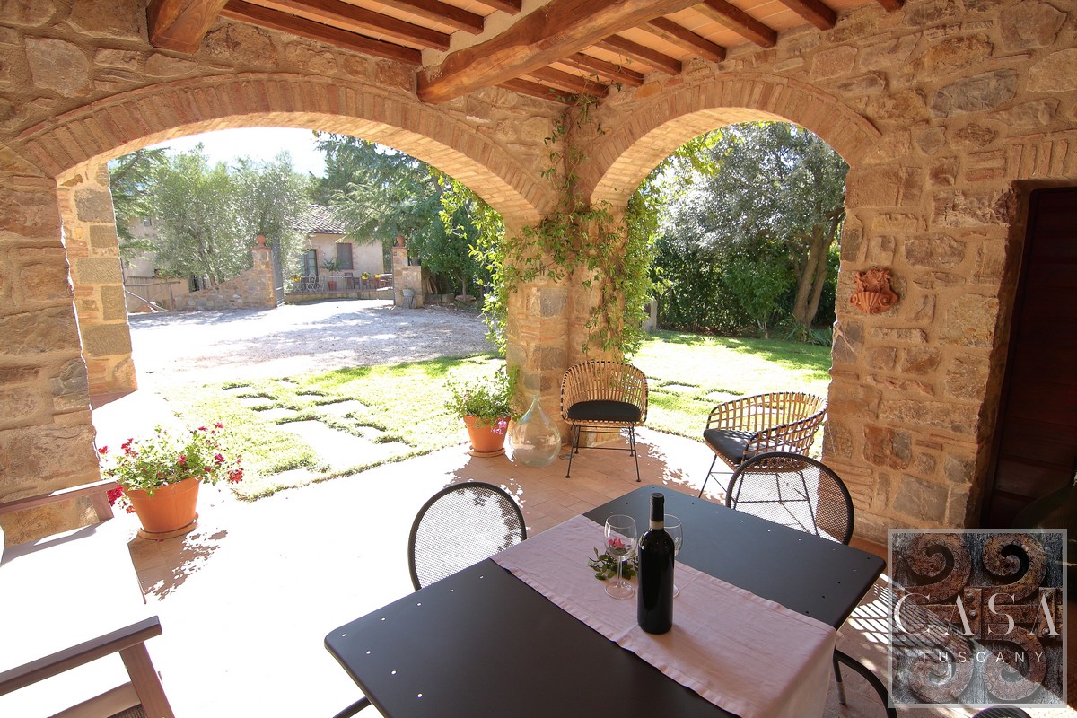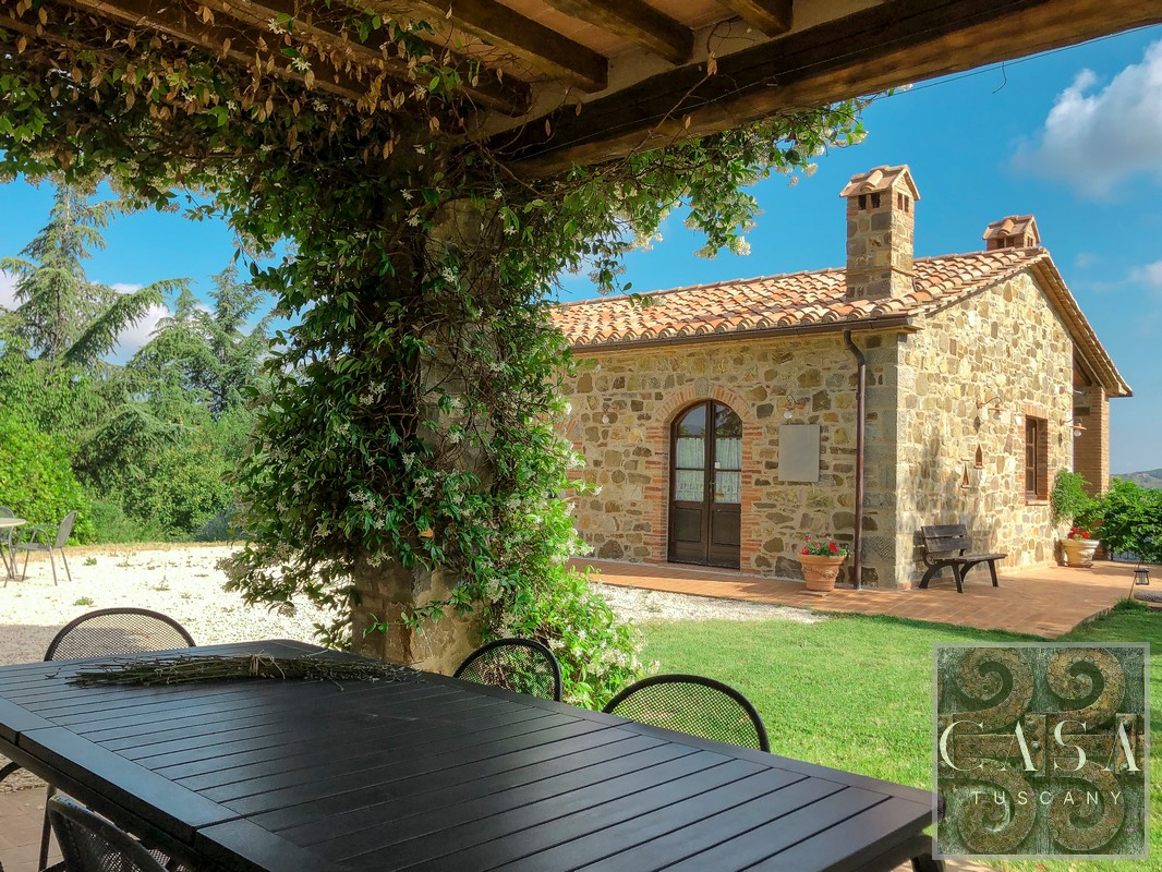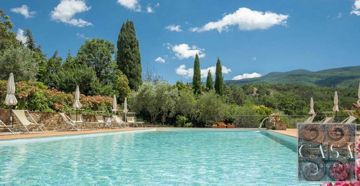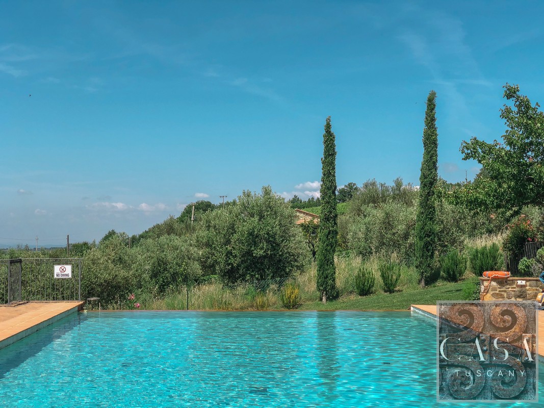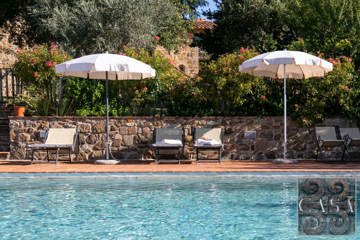 Set in a splendid hillside position 490 m above sea level, overlooking the winding Orcia River below, the property lies just 15 minutes by car from Castiglion d’Orcia, Bagno Vignoni and Montalcino.