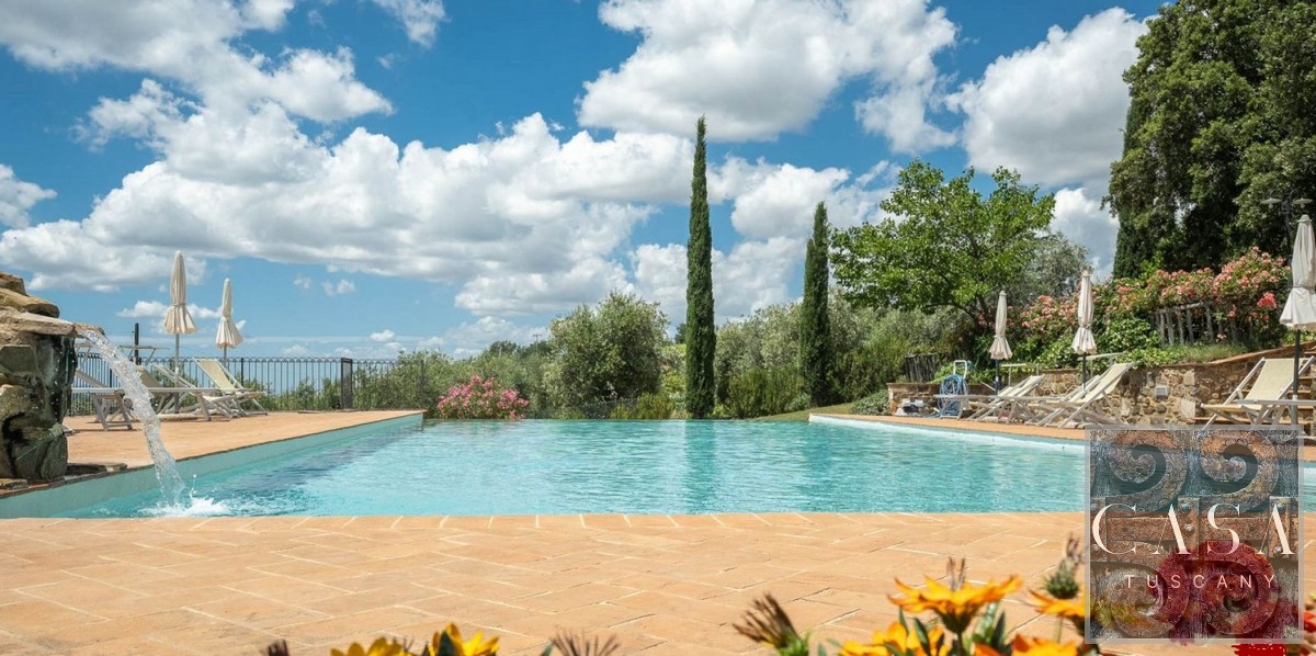 Once part of the Abbey of Sant’Antimo in Montalcino, this characteristic 16th-century estate has been masterfully restored and transformed into an elegant agriturismo, consisting of five residences, a separate guesthouse, and a south-facing infinity pool with breathtaking panoramic views.