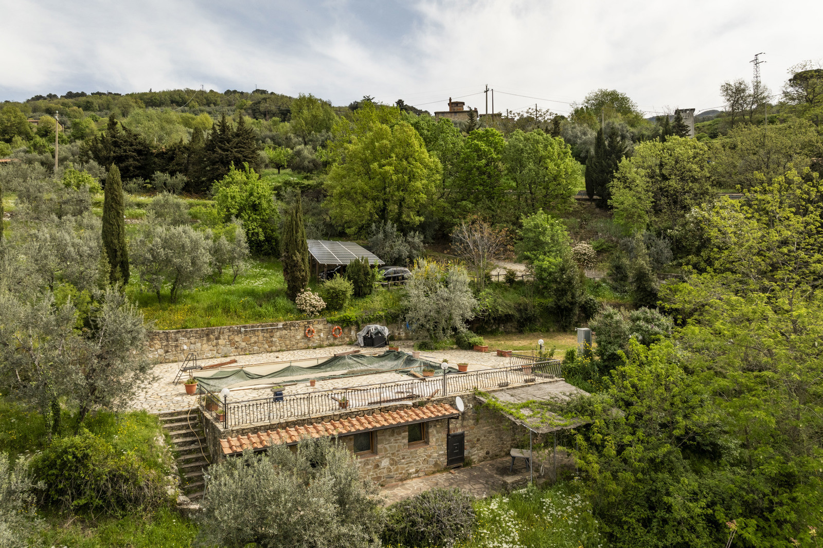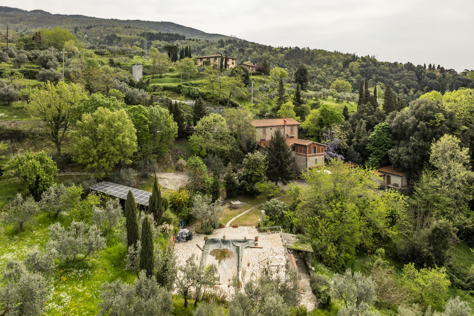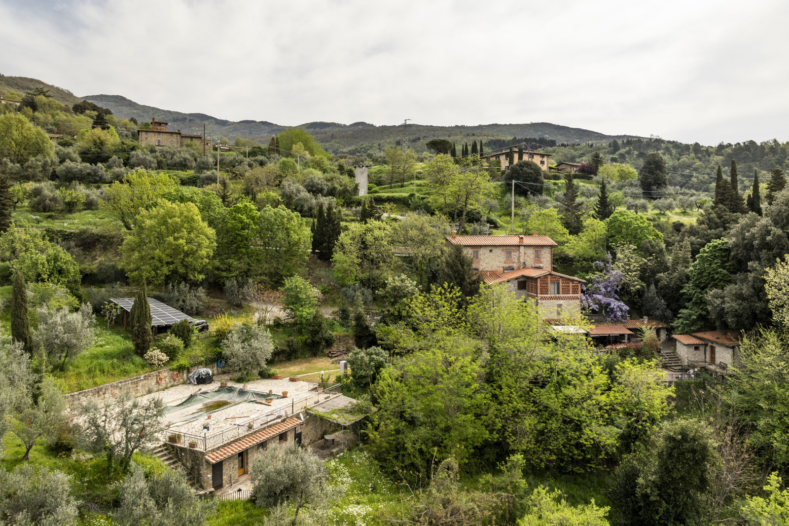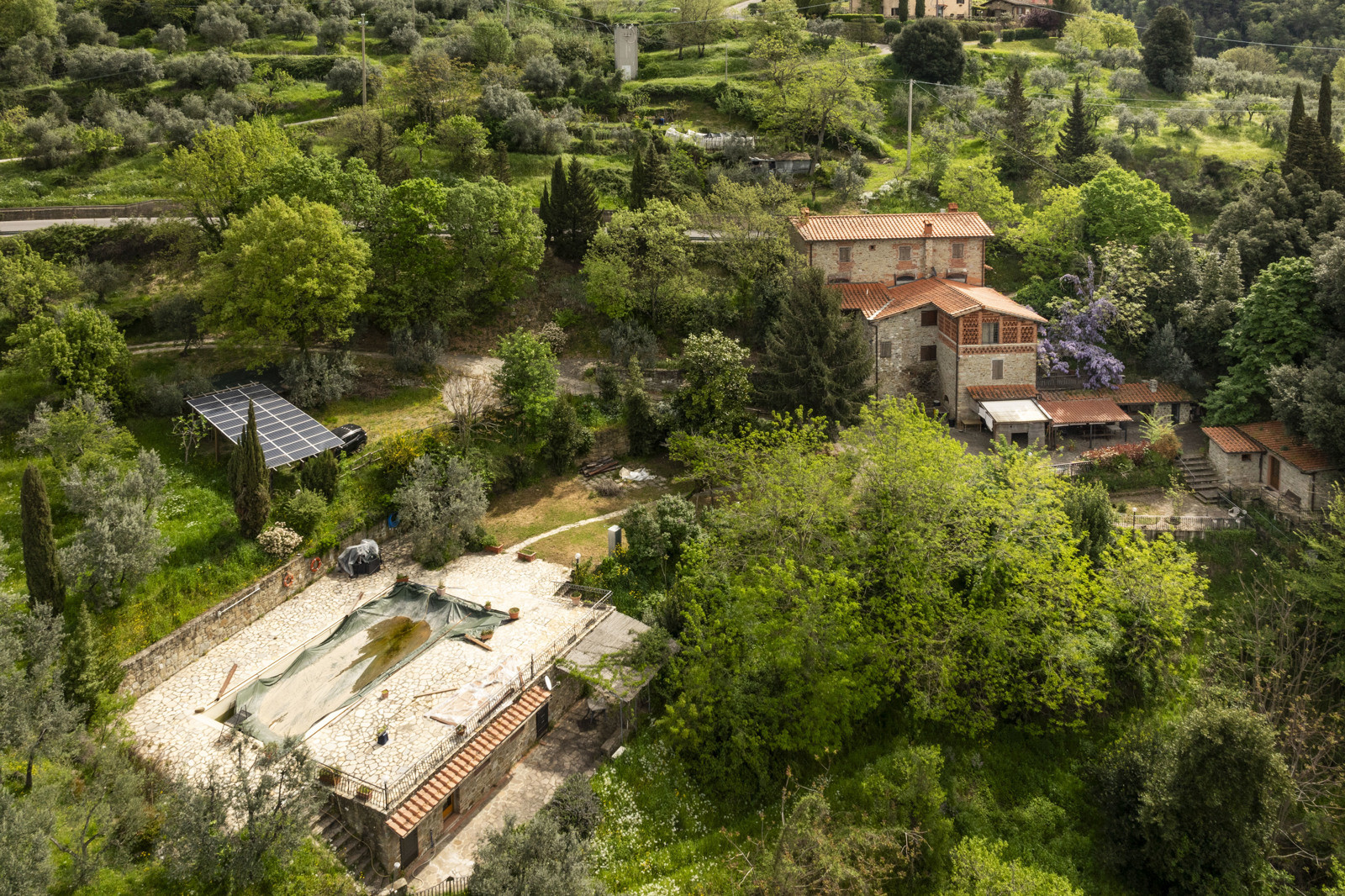 Delightful stone farmhouse with two annexes, panoramic pool and land with olive groves in the beautiful hills of Reggello, near Florence.