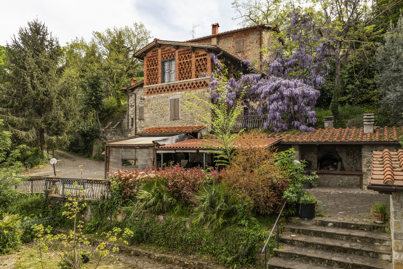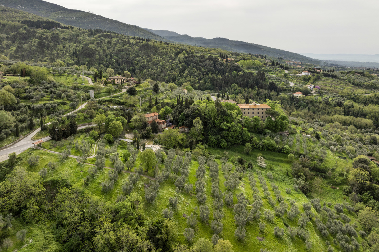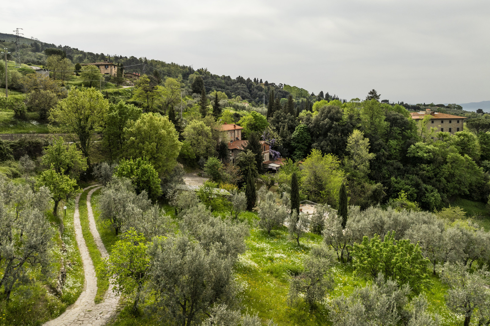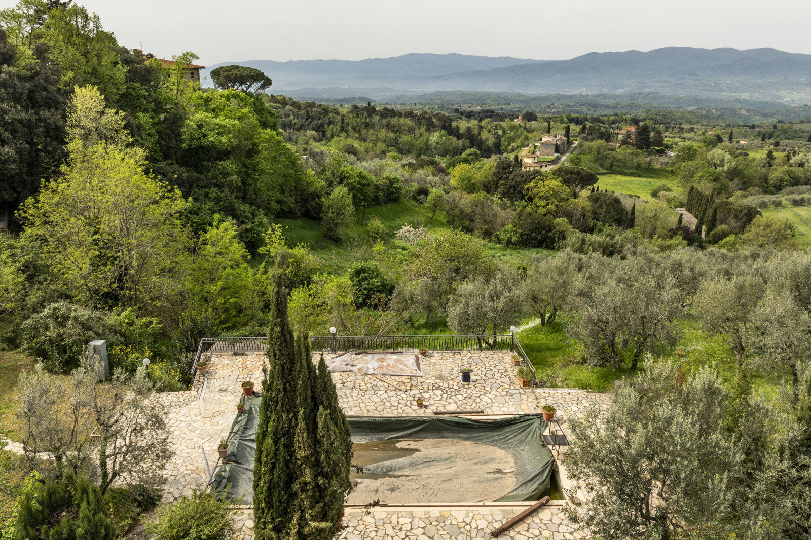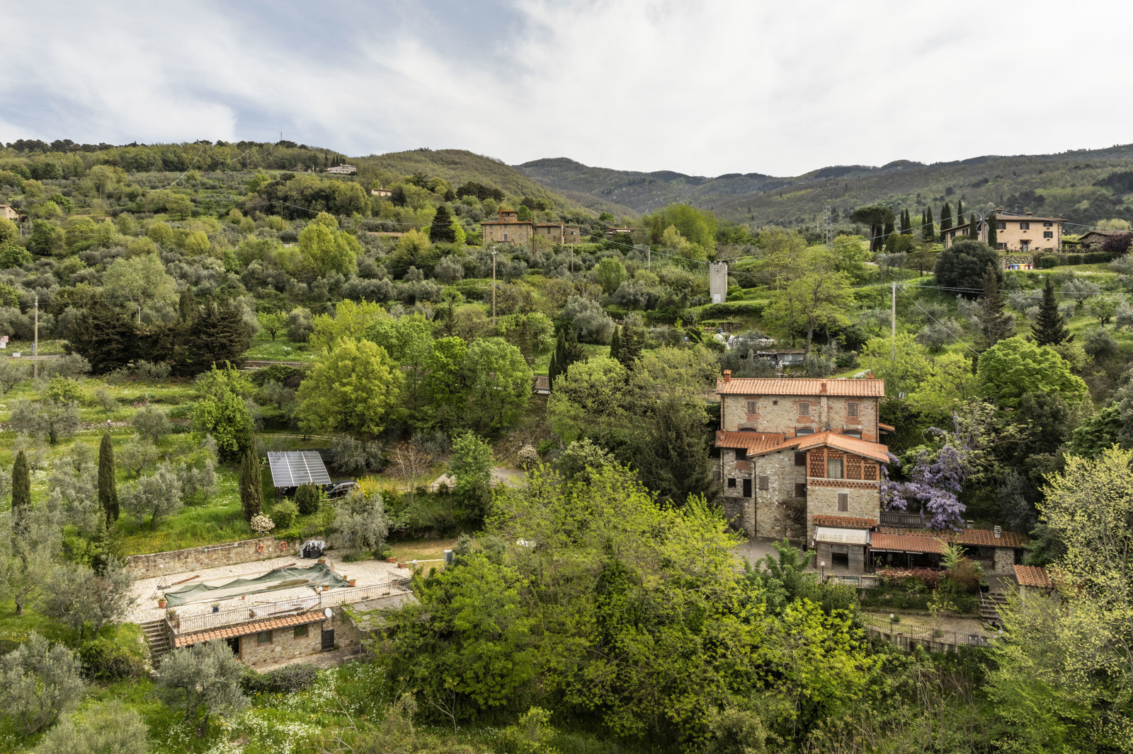 Delightful stone farmhouse with two annexes, panoramic pool and land with olive groves in the beautiful hills of Reggello, near Florence.