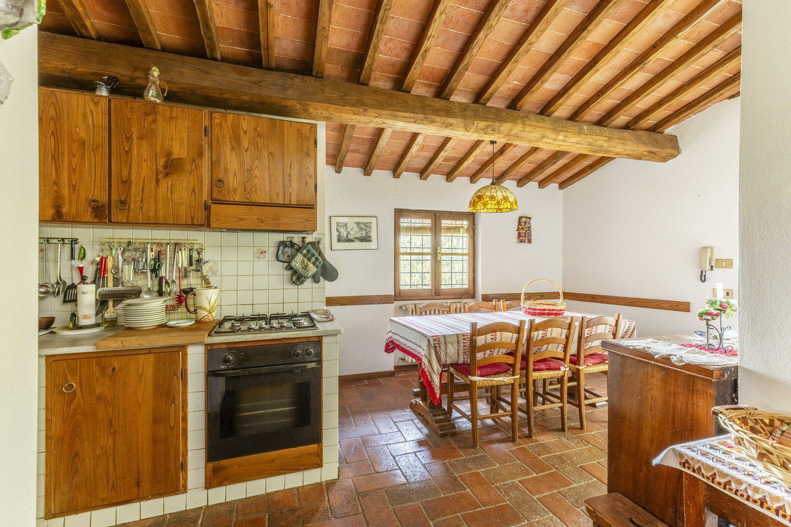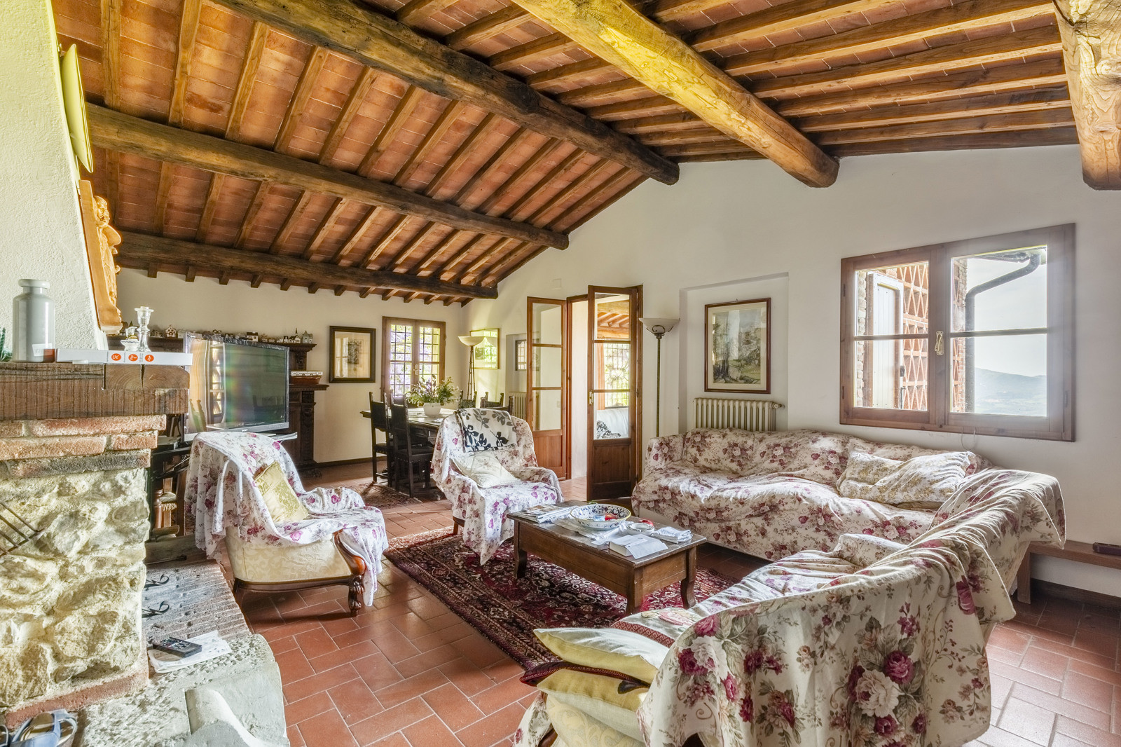 The property is accessed by a private gate with a well-maintained private driveway. The property is set in a hilly and dominant area and is immersed in its private land of 1.5 hectares with about 150 olive trees producing excellent Tuscan olive oil. The pool with Jacuzzi and gazebo is large and panoramic with breathtaking views of the Tuscan hills. The house has a private well and photovoltaic panels for energy production. Beneath the pool there is a storage room for agricultural equipment.