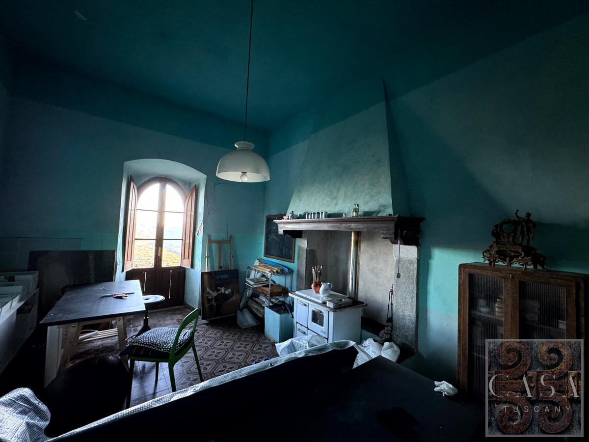 A castle for sale in the hills near Cortona, a unique piece of history, dating back to around the year 1,000. 17 km from Cortona, in a small mountain village, with spectacular views of the valley below, and a timeless atmosphere.