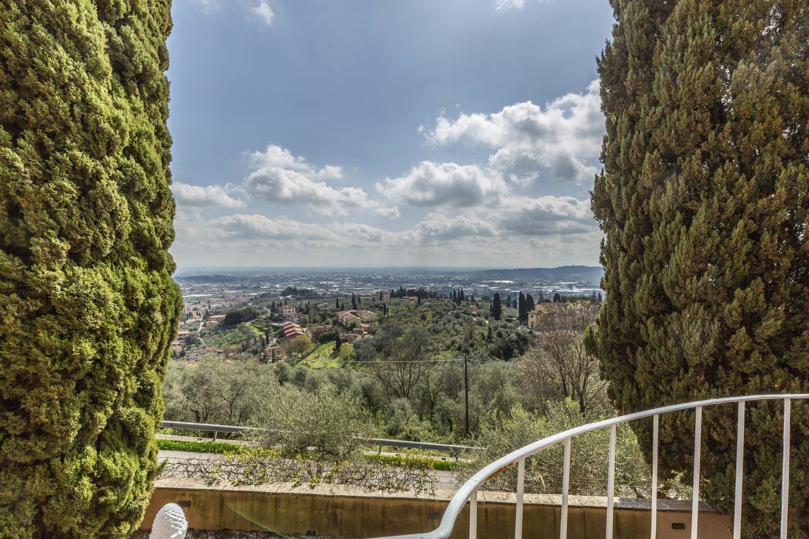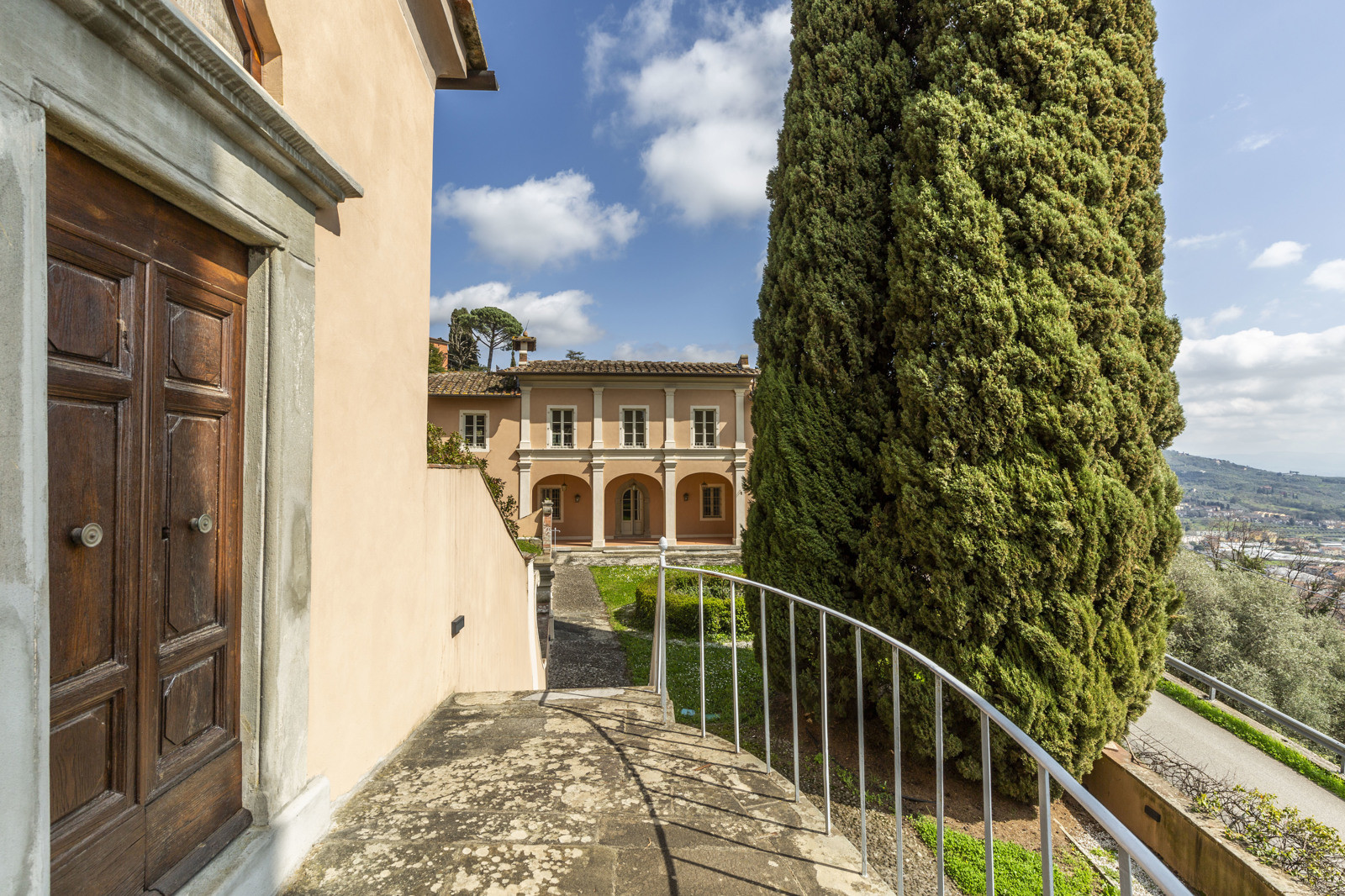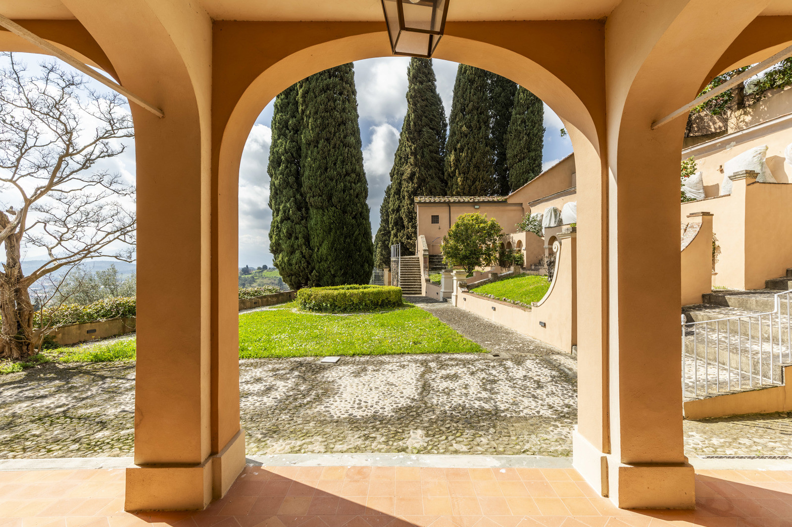 In a dominant position, with panoramic views of the plain below, the villa enjoys the well-kept terraced outdoor garden of 2000 square meters with nymphaeum and decorated fountain, the still consecrated private chapel, additional outdoor parking spaces and an additional sloping plot of land where it is possible to build a swimming pool.