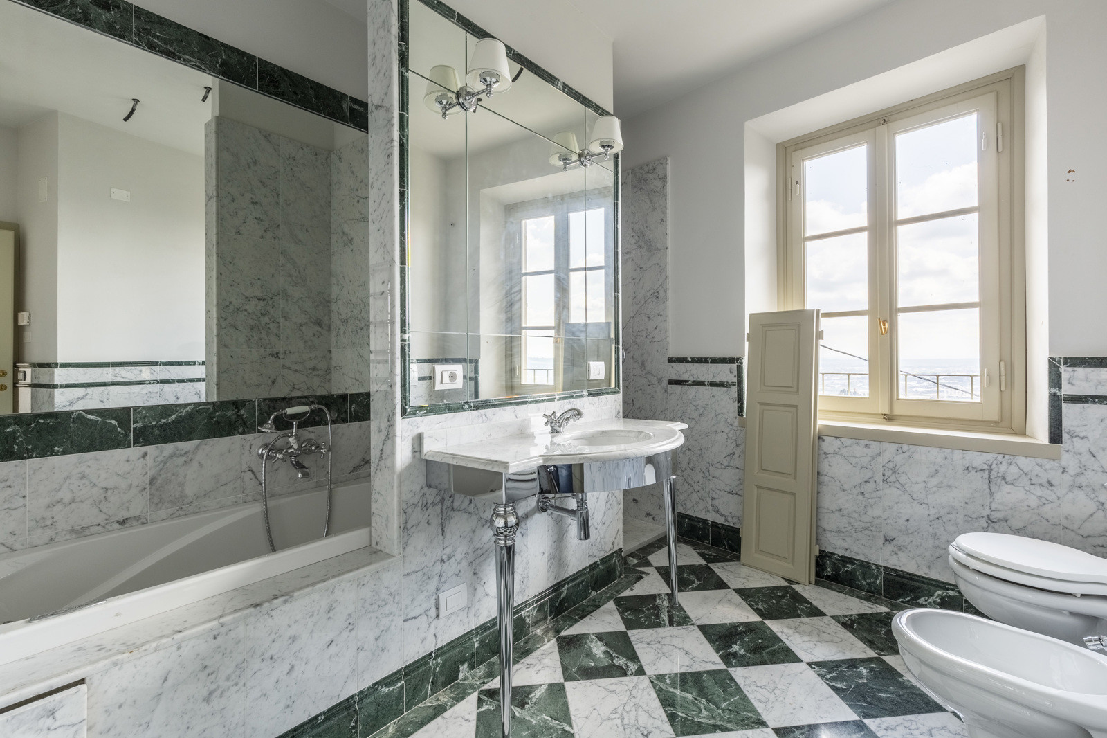 The historic villa is on three levels connected by an elevator and internal staircase, totaling 600 sqm.