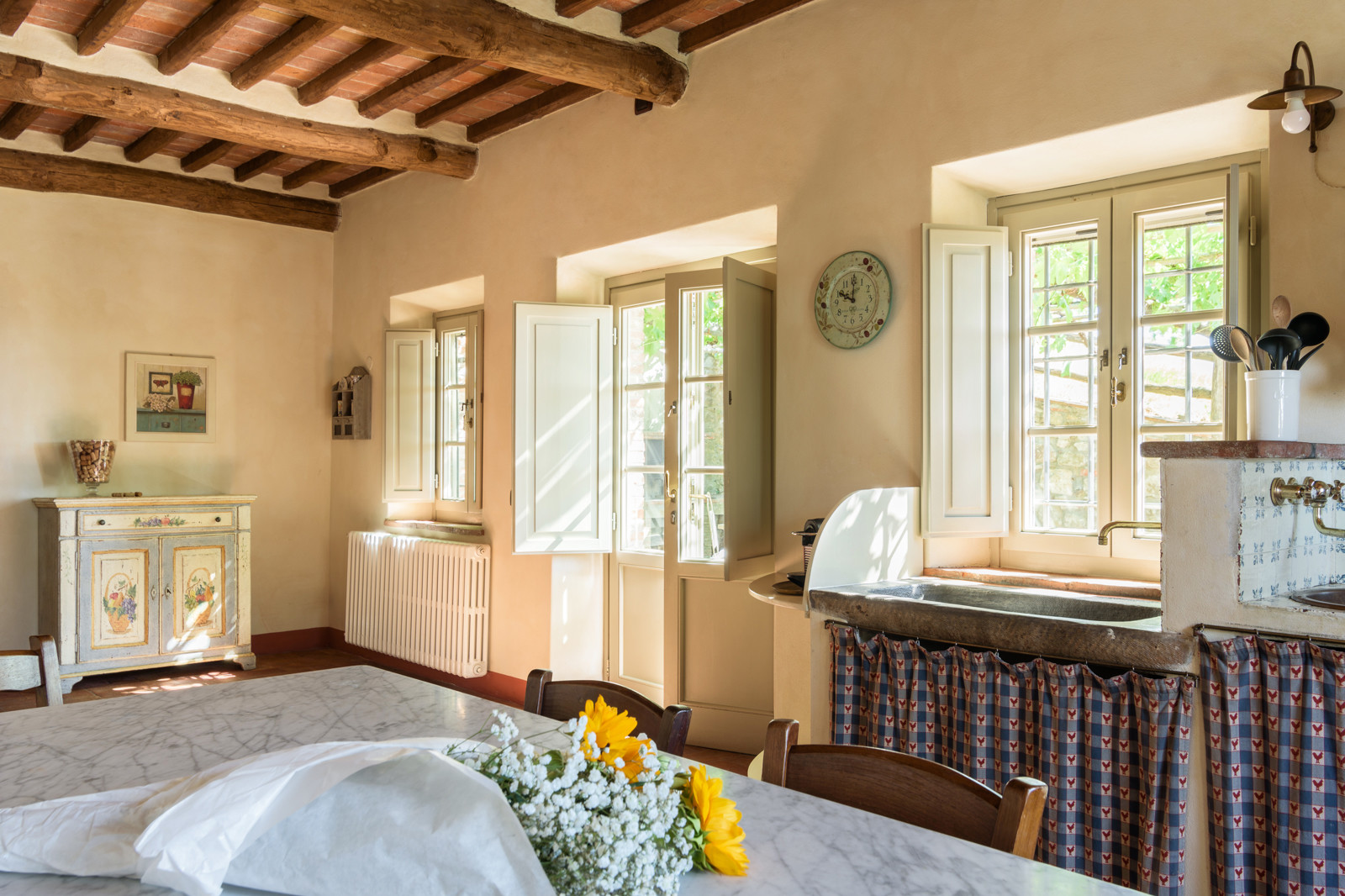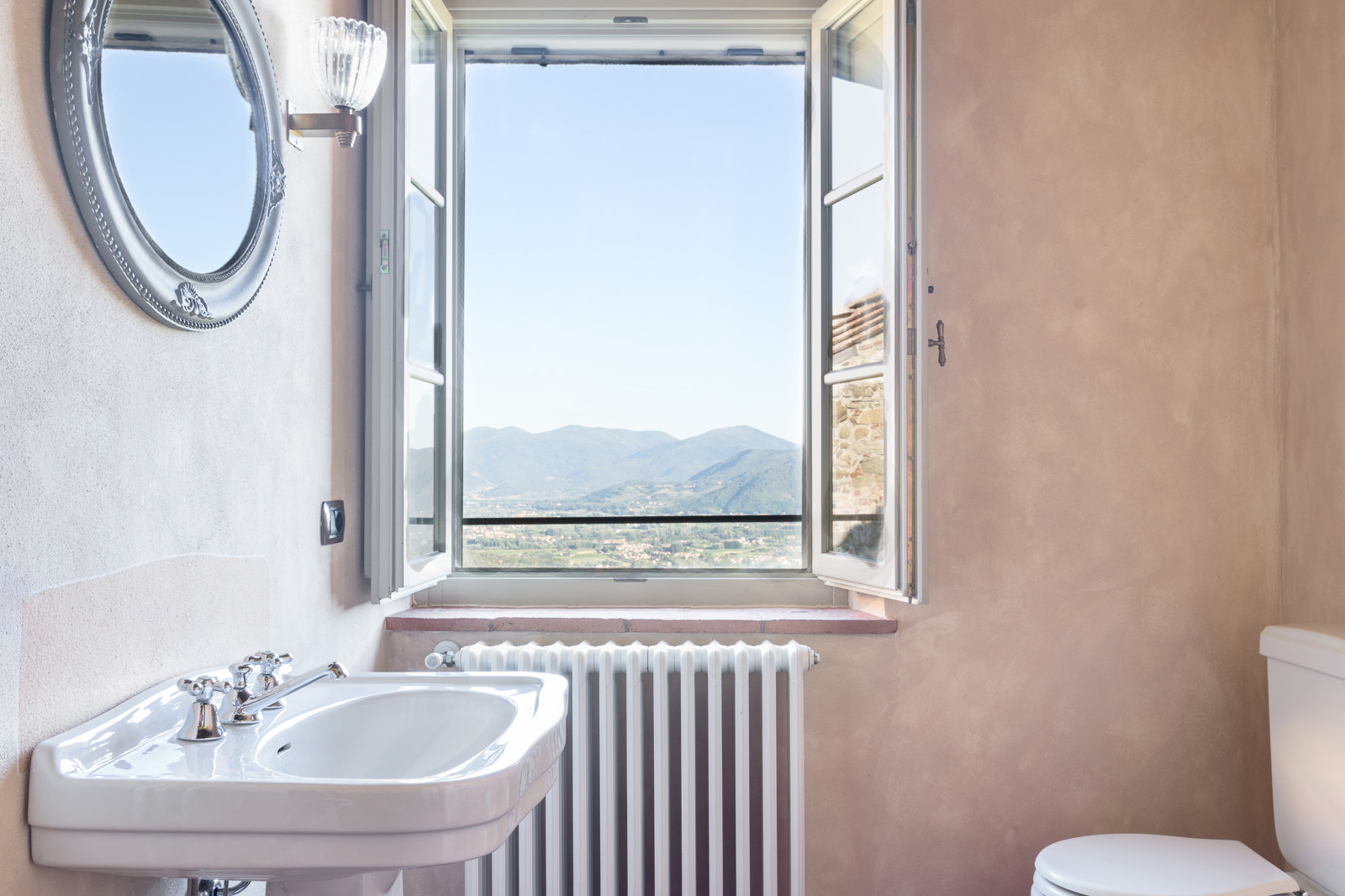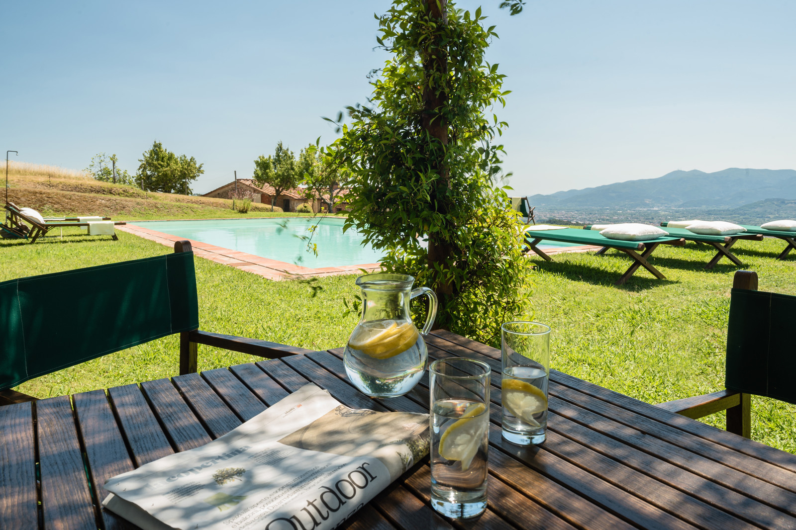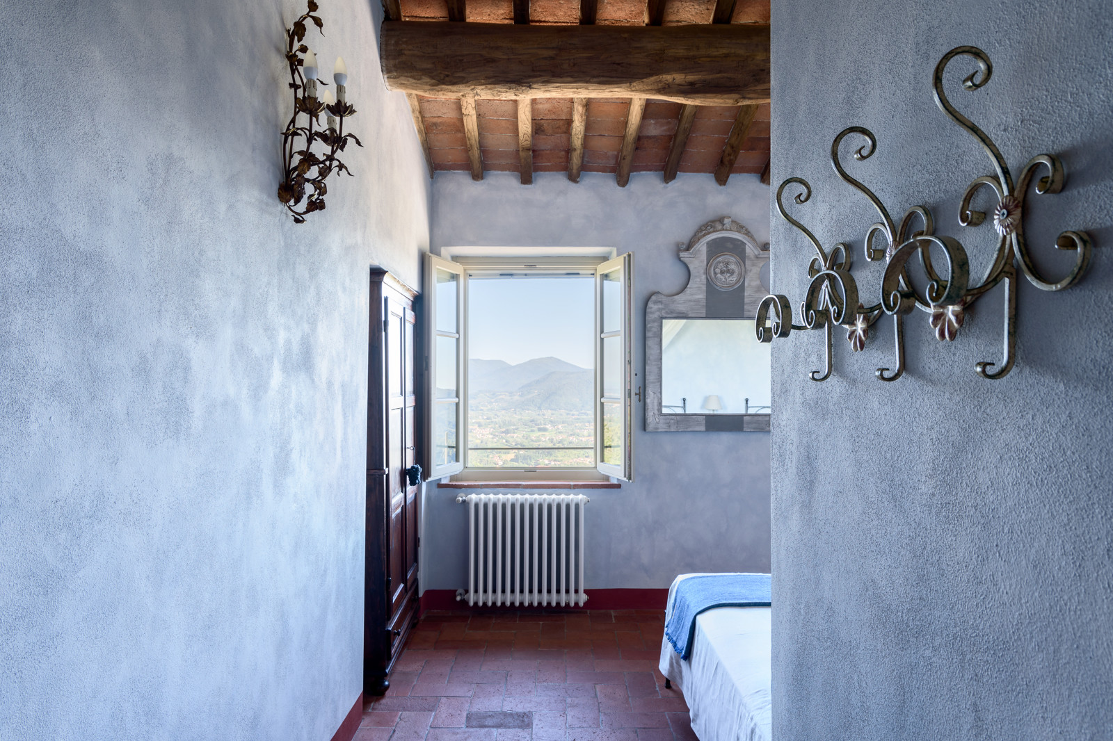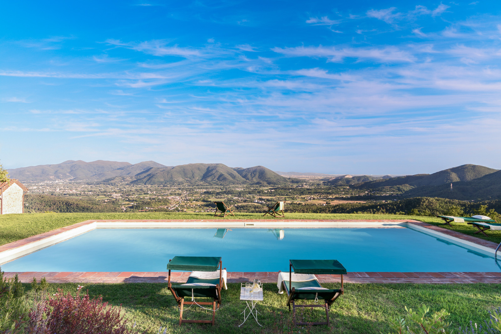 Situated in a dominant position on the hills above Lucca, the farmhouse guarantees maximum privacy and tranquility, whilst remaining a short distance from the main cultural and tourist centers of Tuscany. Lucca, with its rich historical heritage, is easily accessible, as are Pisa, Florence and the beaches of Versilia. A context of rare beauty and comfort.